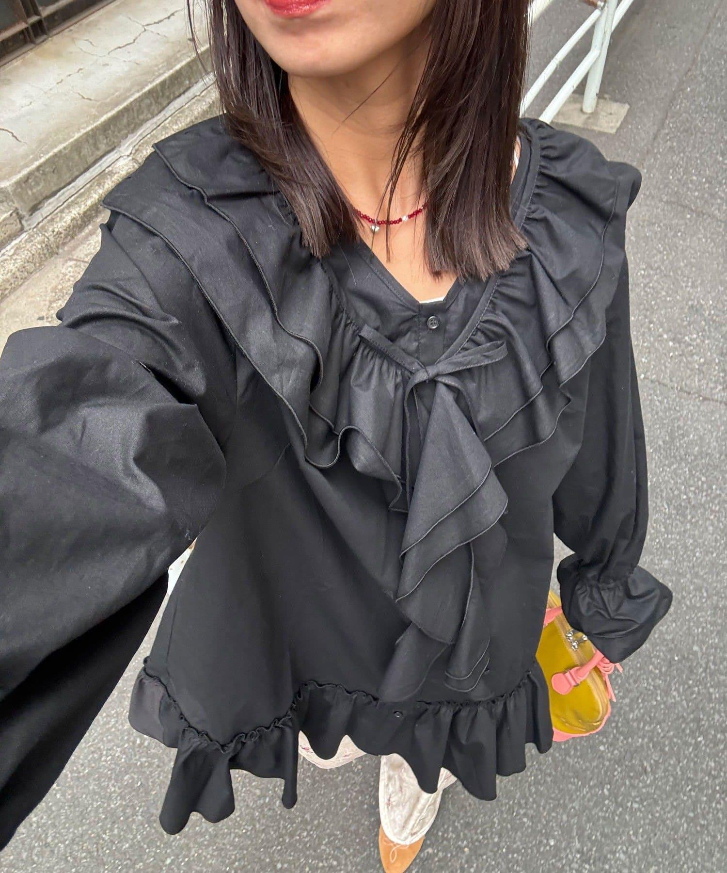 帶荷葉邊可拆卸領套裝長款襯衫