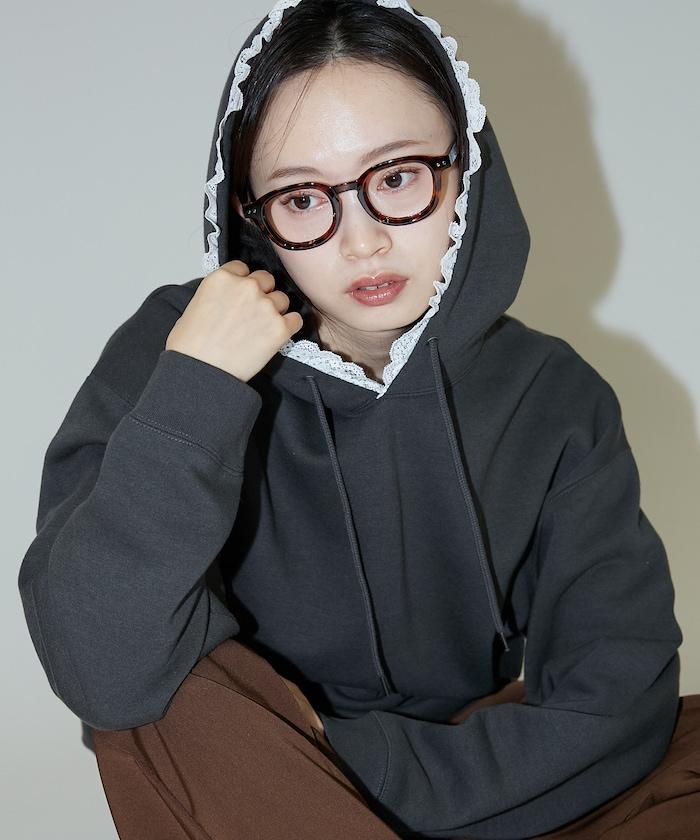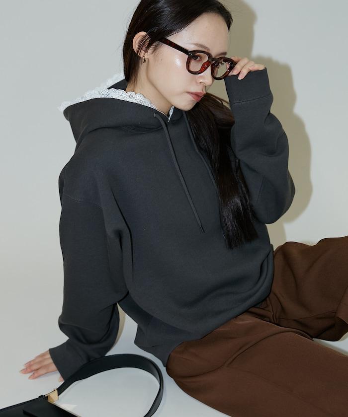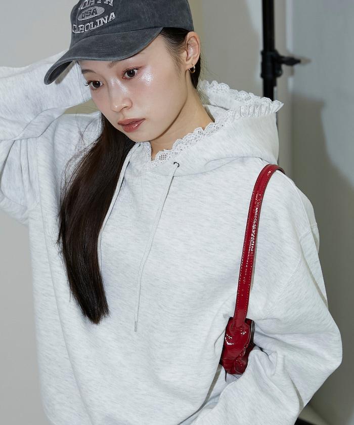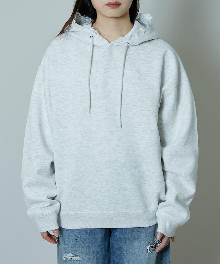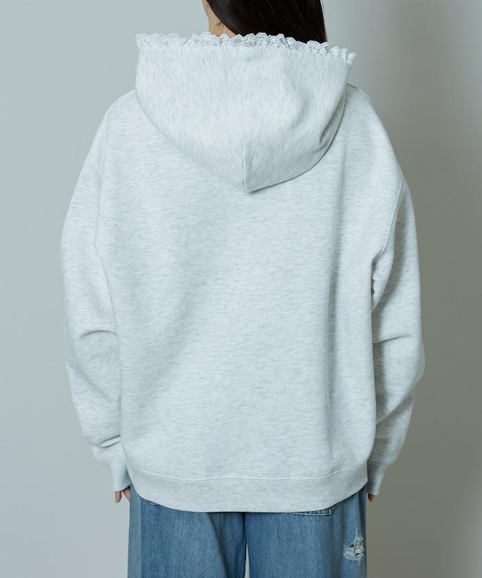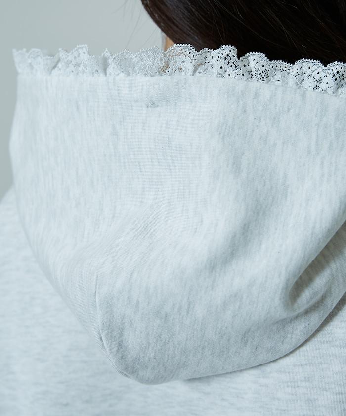 連帽邊緣的蕾絲花邊為這款休閒連帽衫增添了女性氣息。