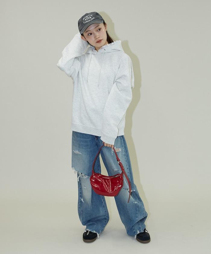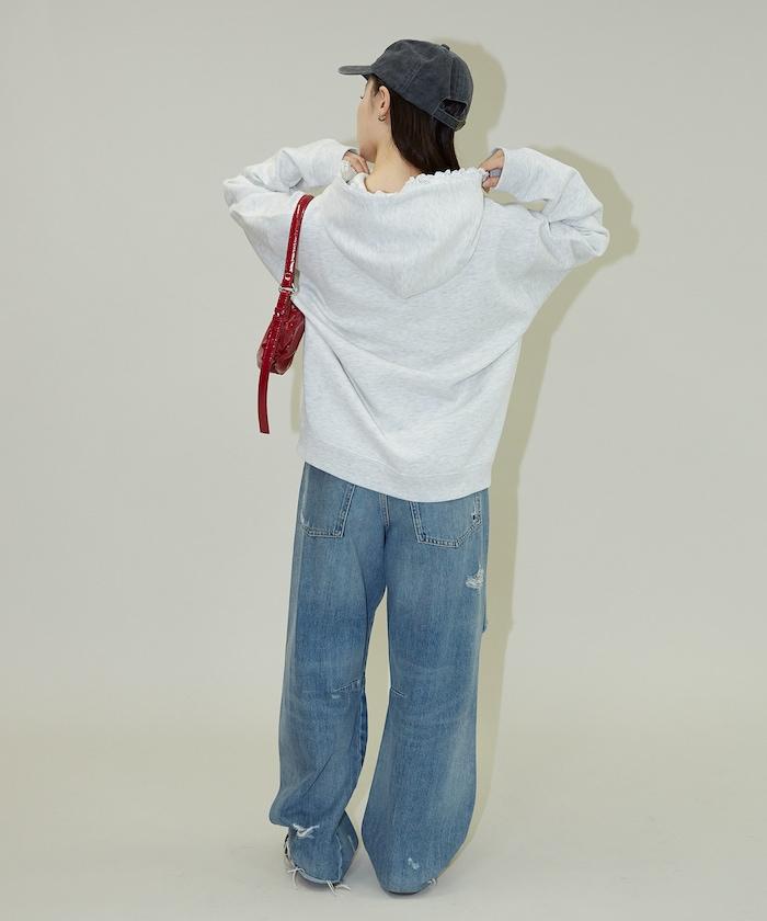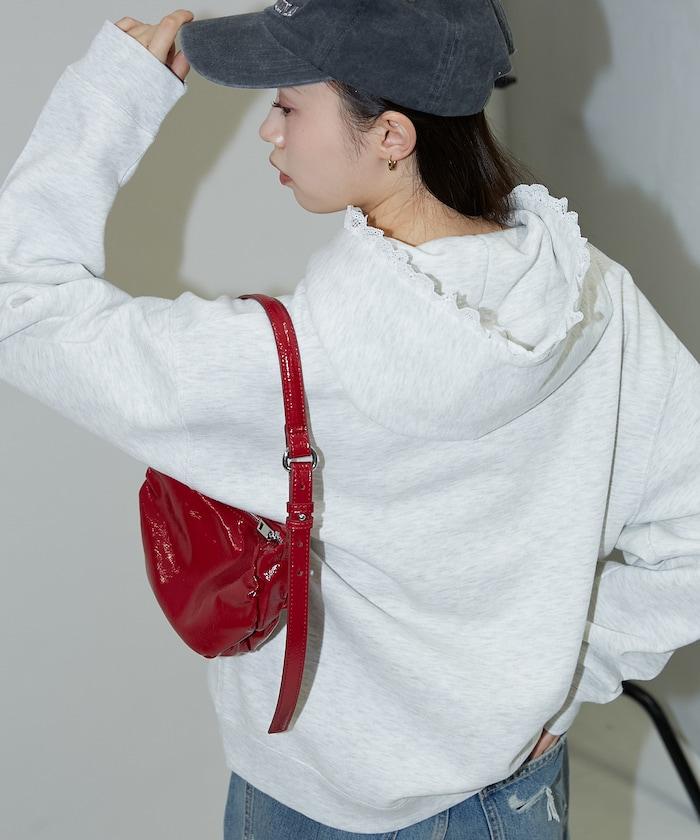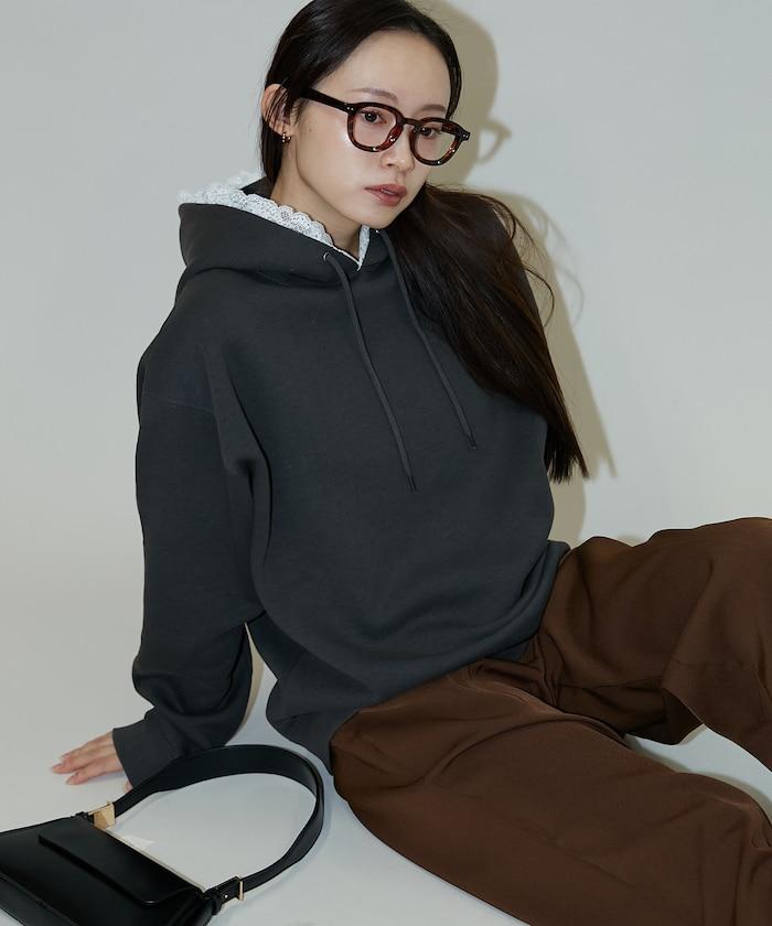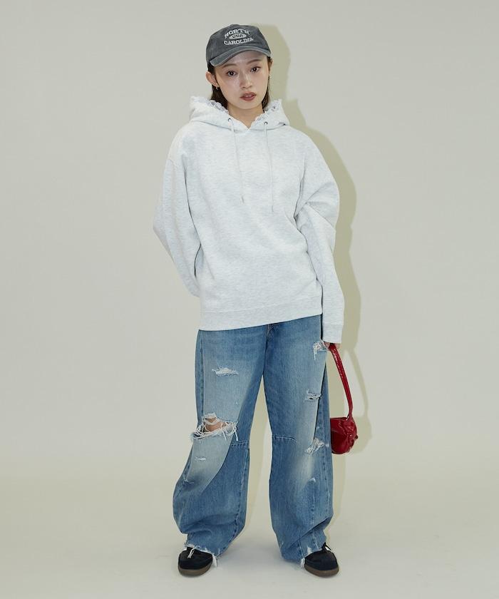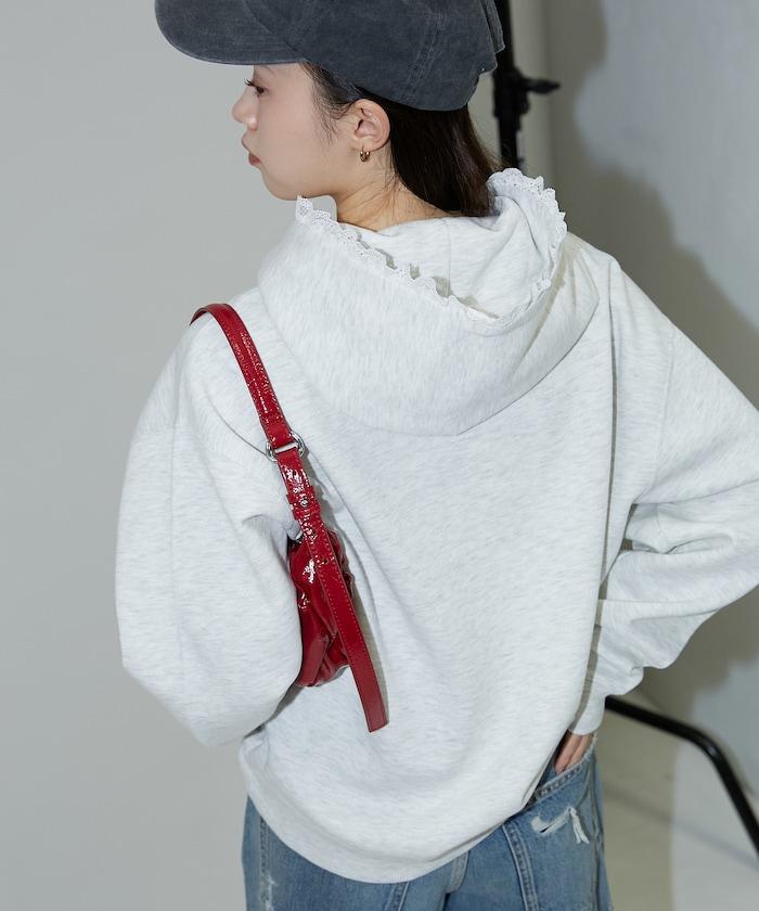 連帽邊緣的蕾絲花邊為這款休閒連帽衫增添了女性氣息。