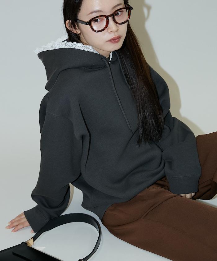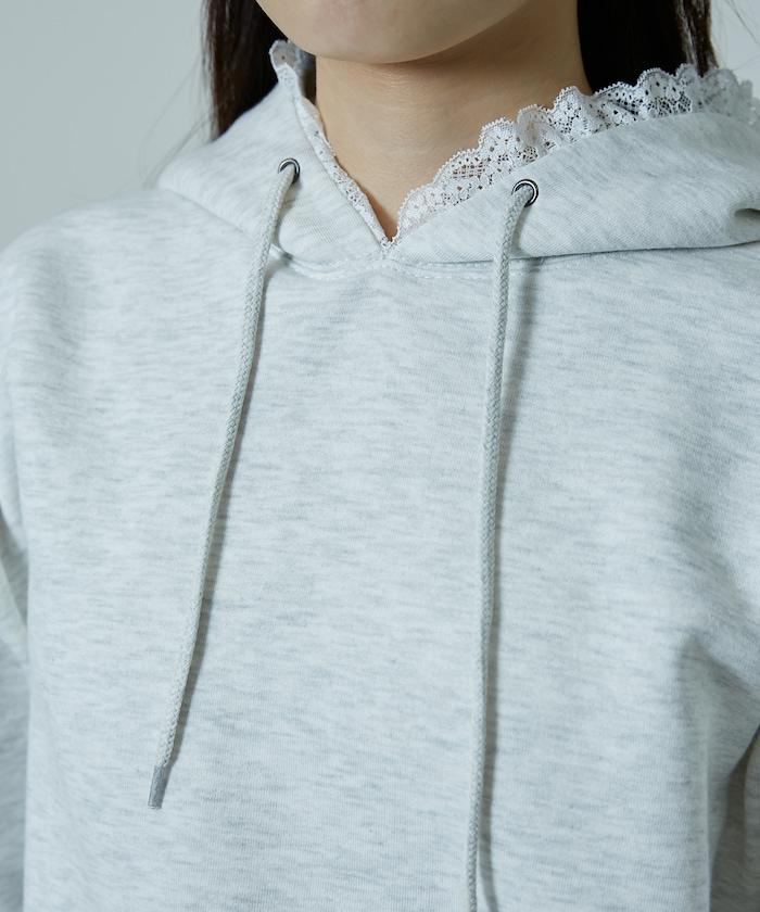 蕾絲連帽襯裡運動衫套頭衫,充滿女性情調。