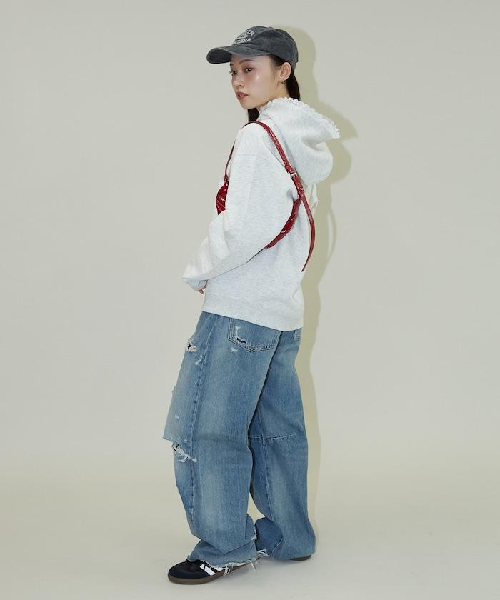 由於背面採用拉絨面料,絨毛可能會粘在內襯和搭配的單品上。請事先諒解。