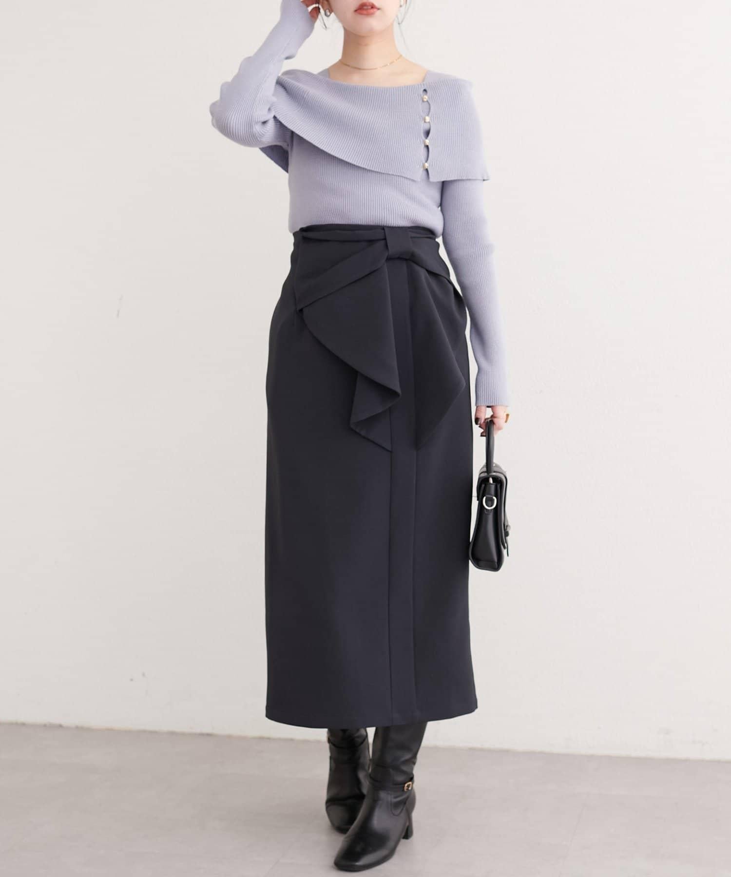 具有存在感的絲帶將視線向上吸引,具有提升時尚感的效果。