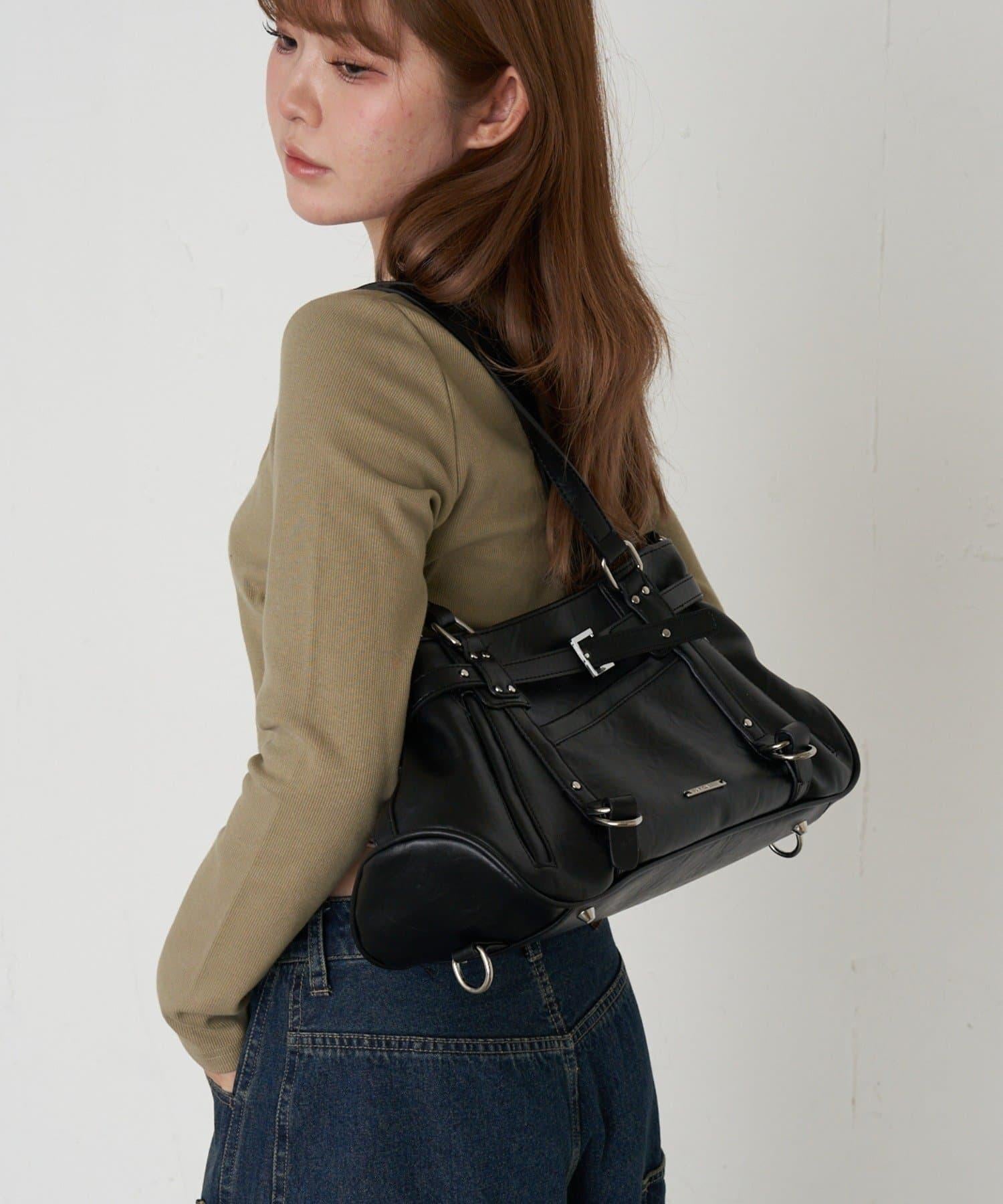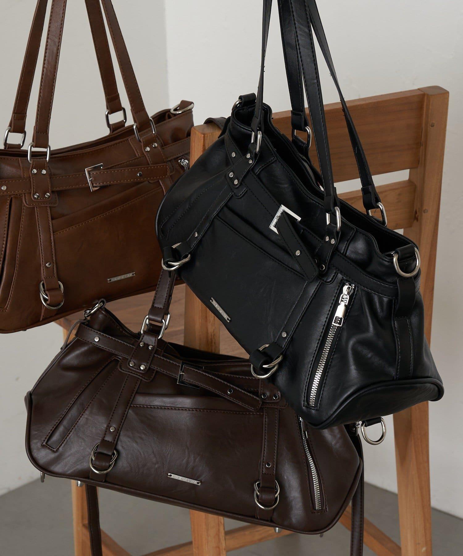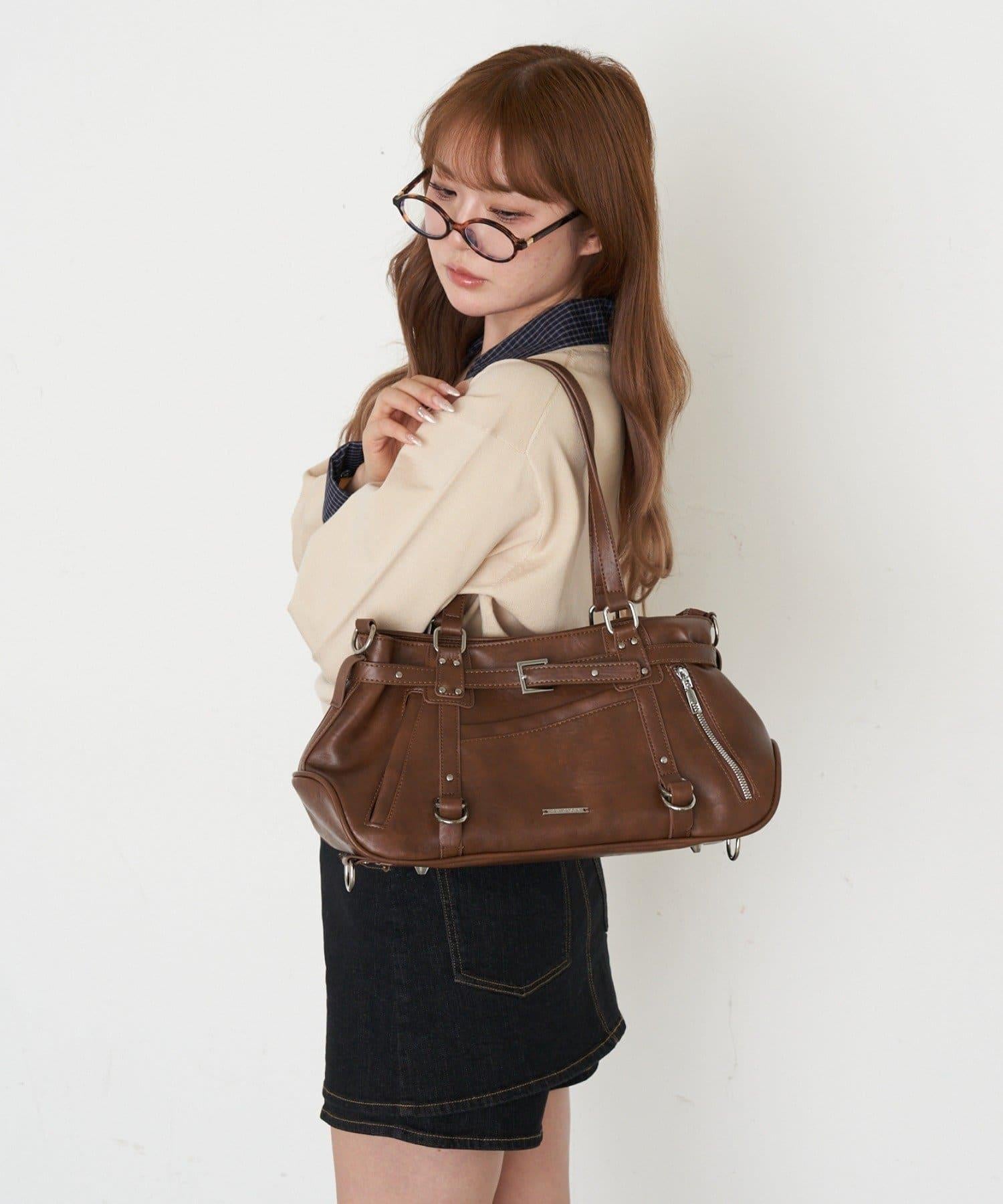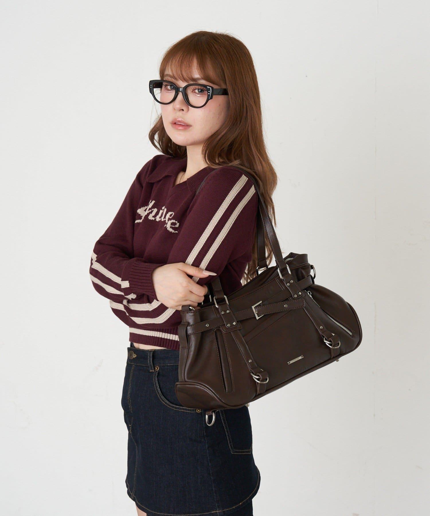 帶裝飾帶拉鍊口袋單肩包