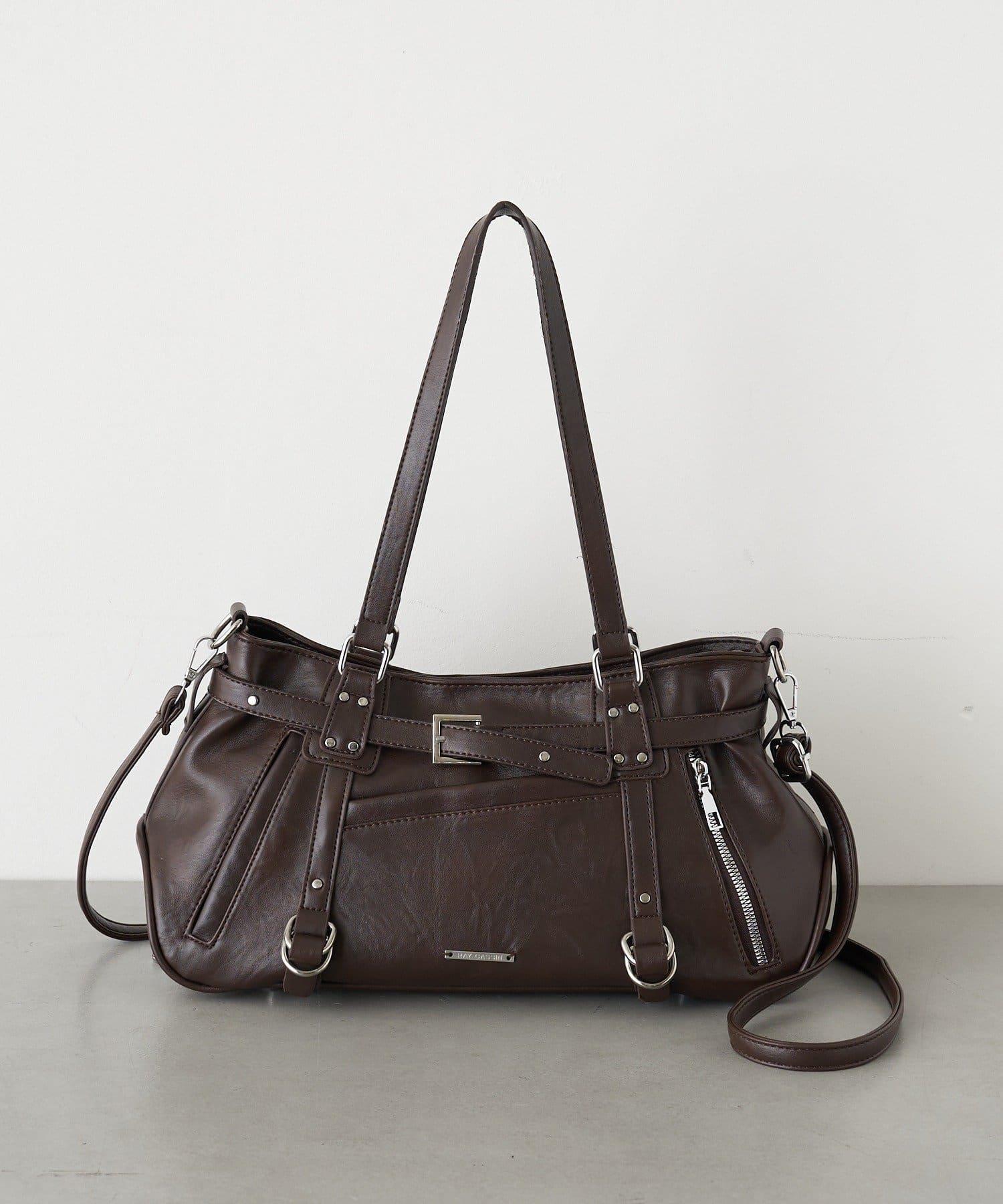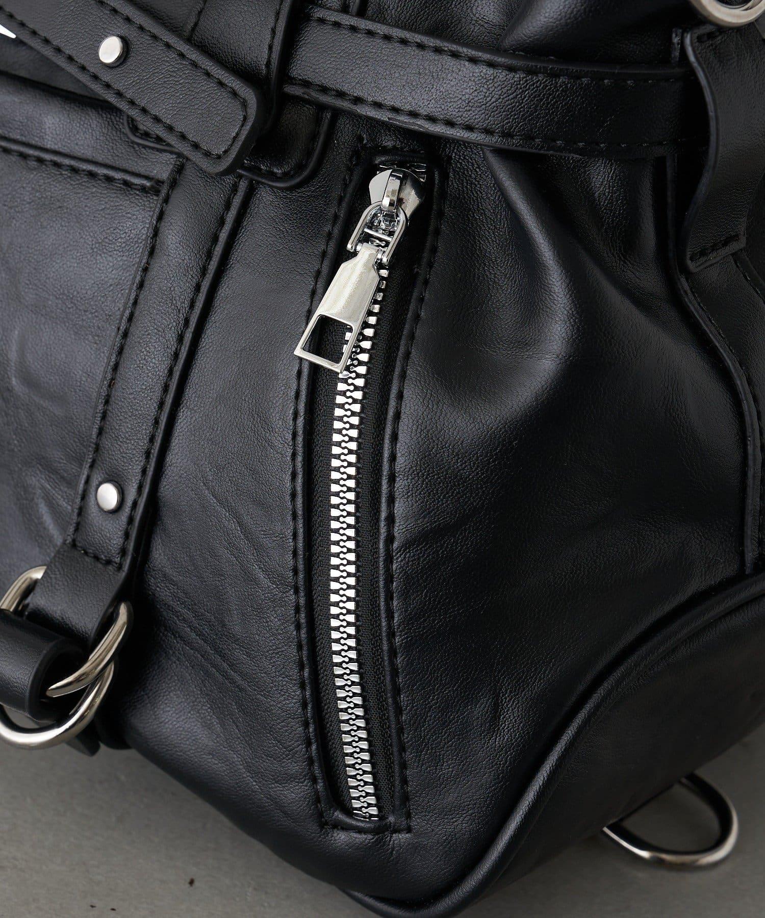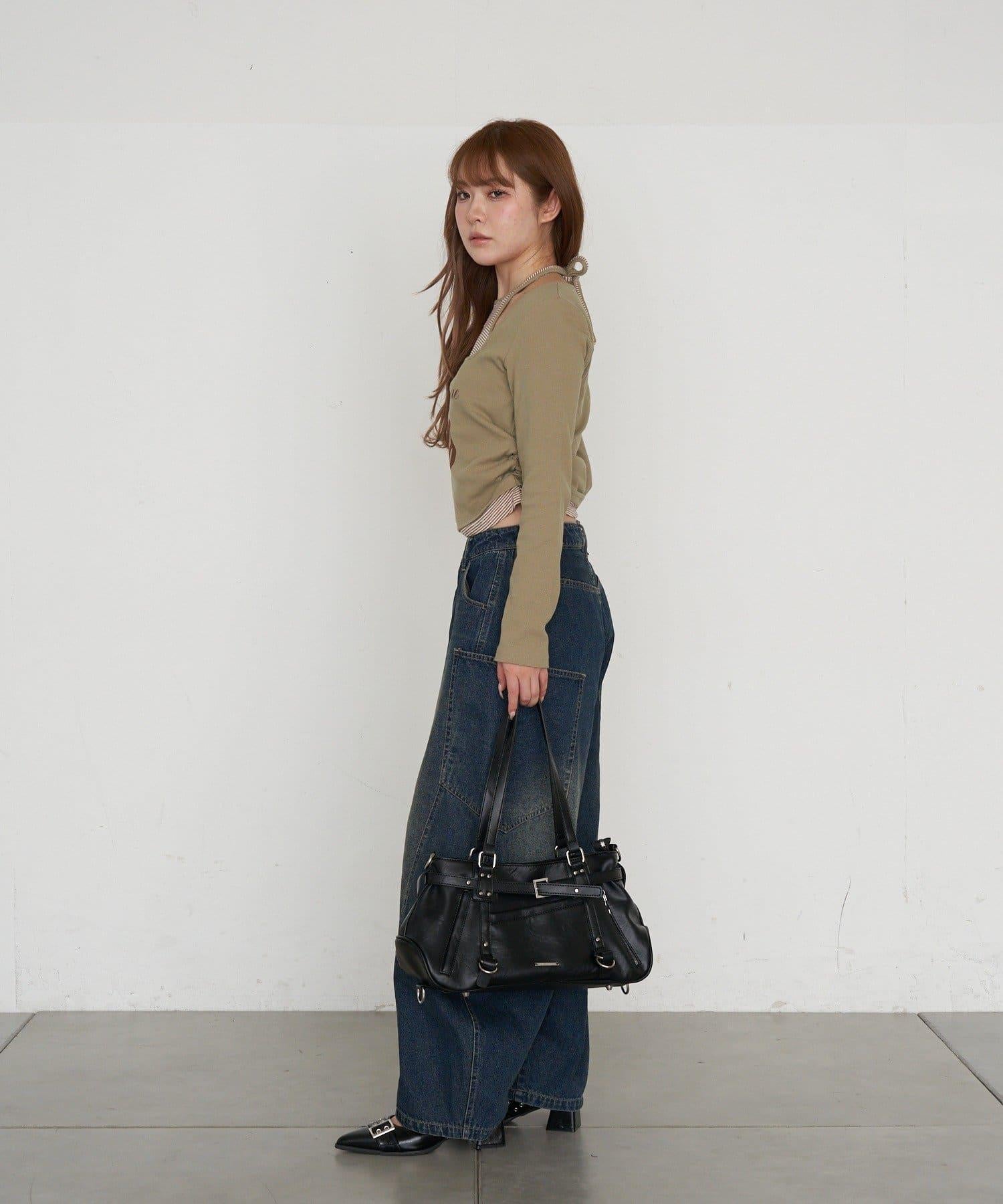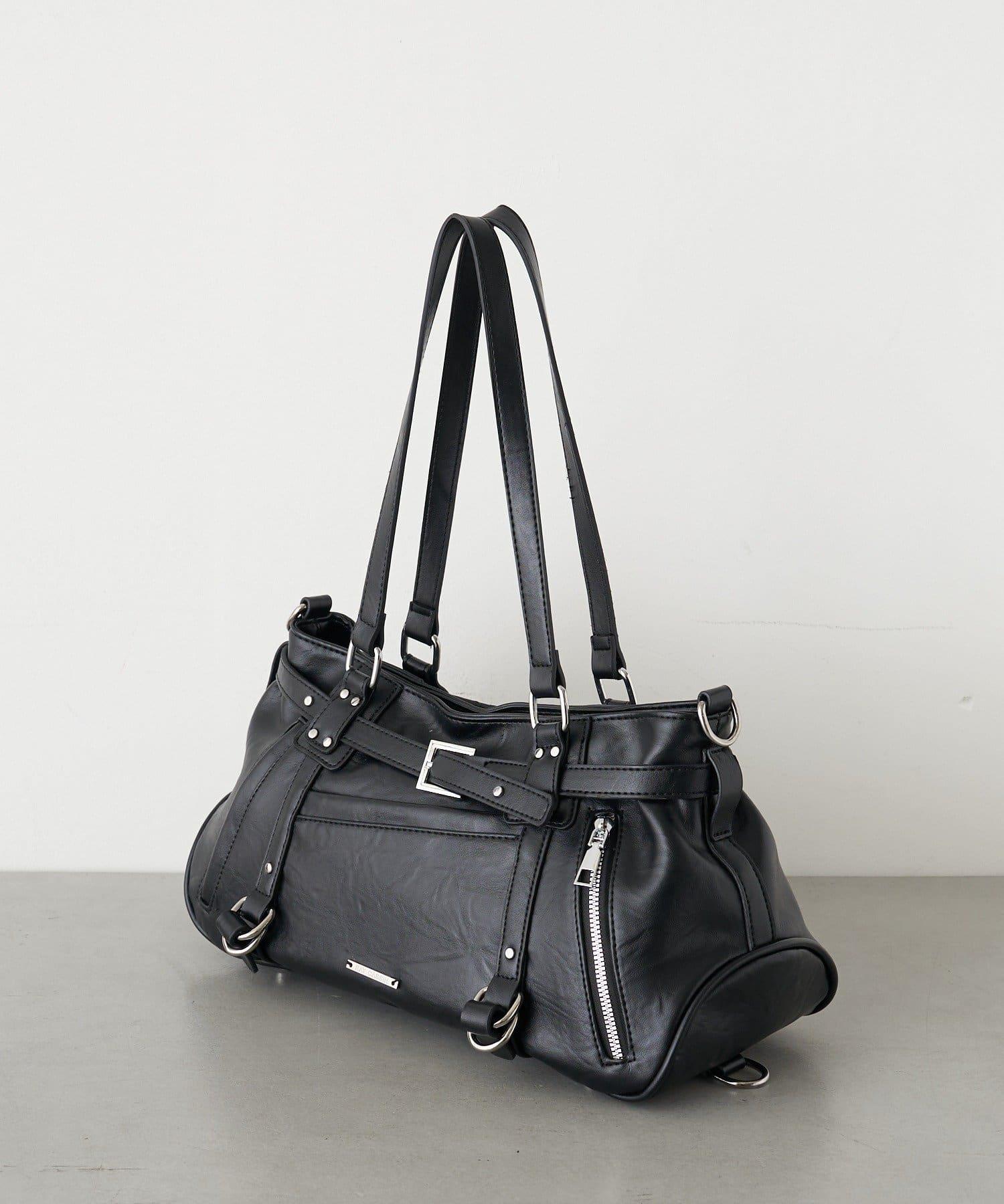 帶裝飾帶拉鍊口袋單肩包