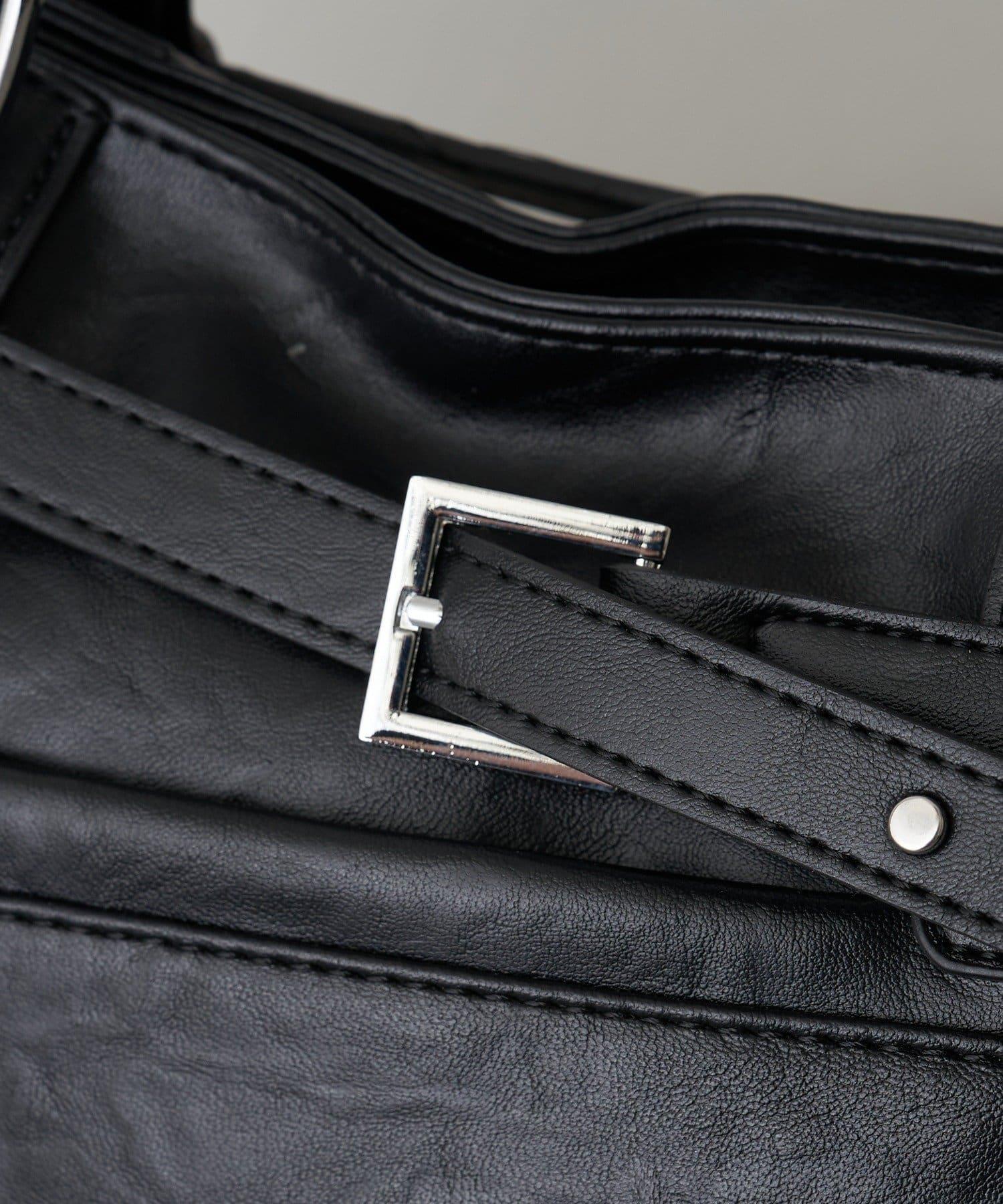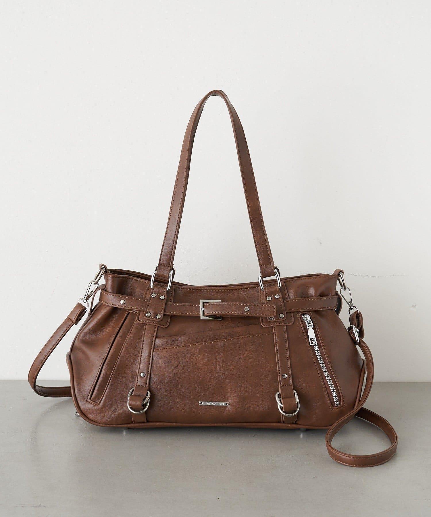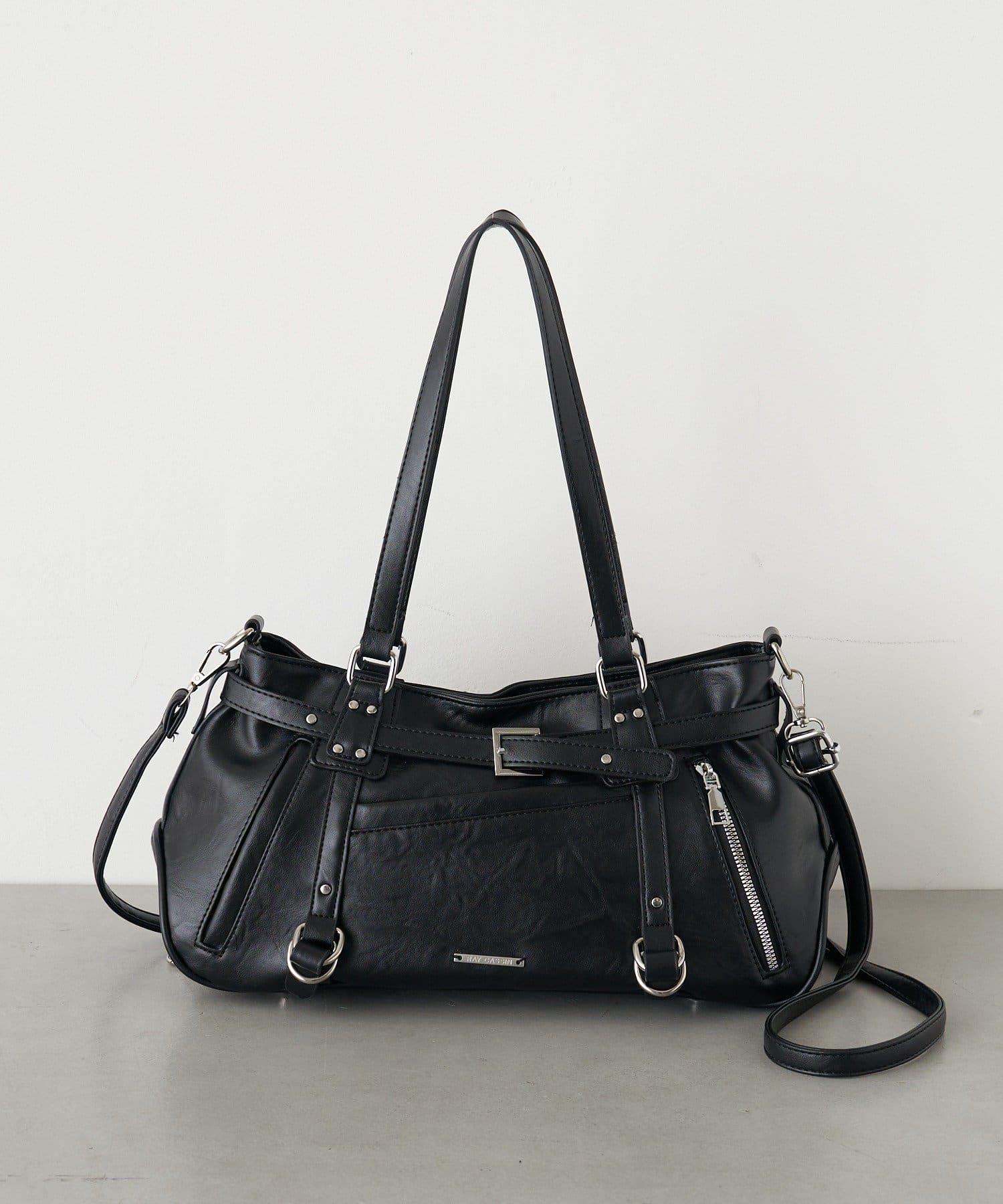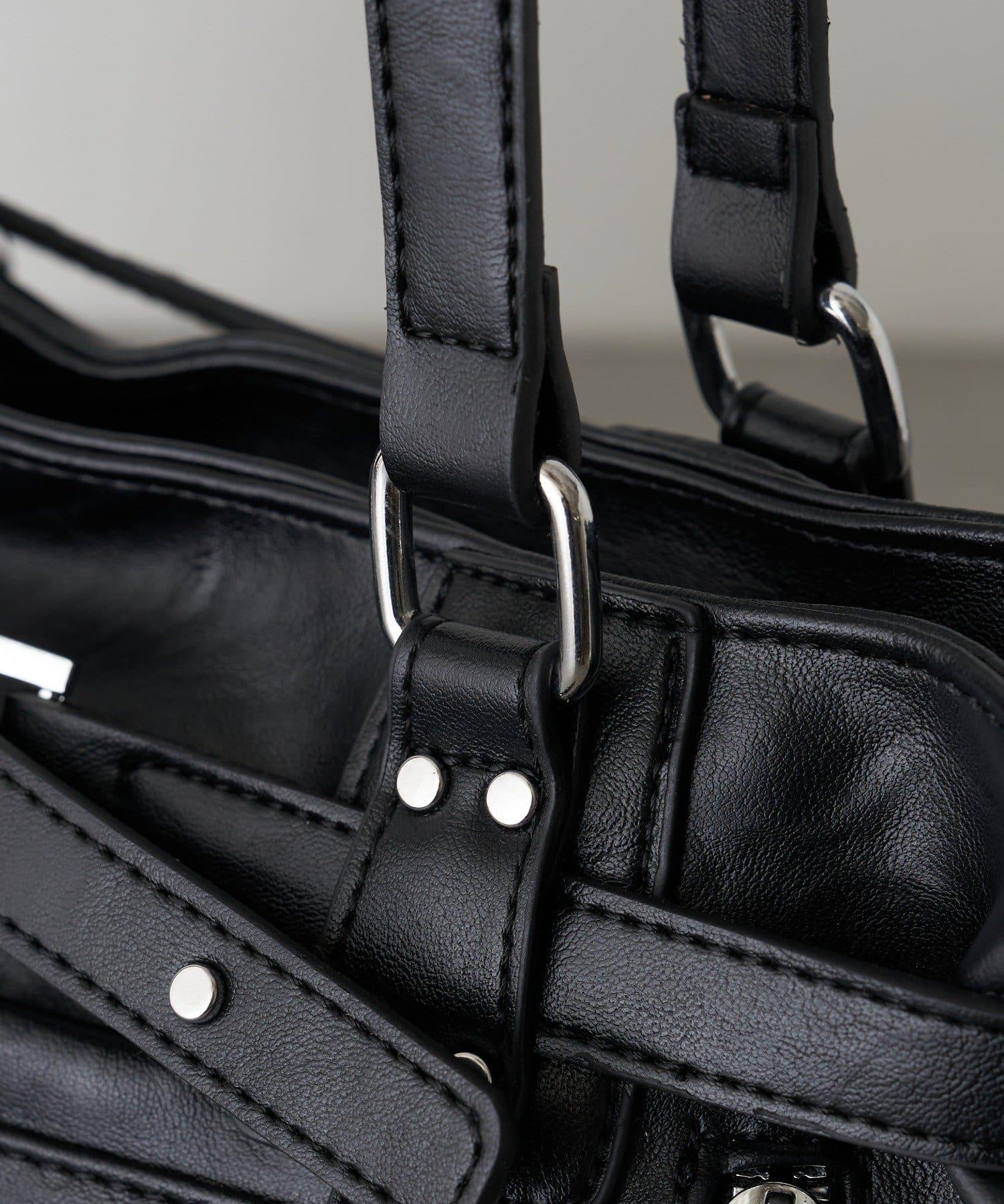 帶裝飾帶拉鍊口袋單肩包