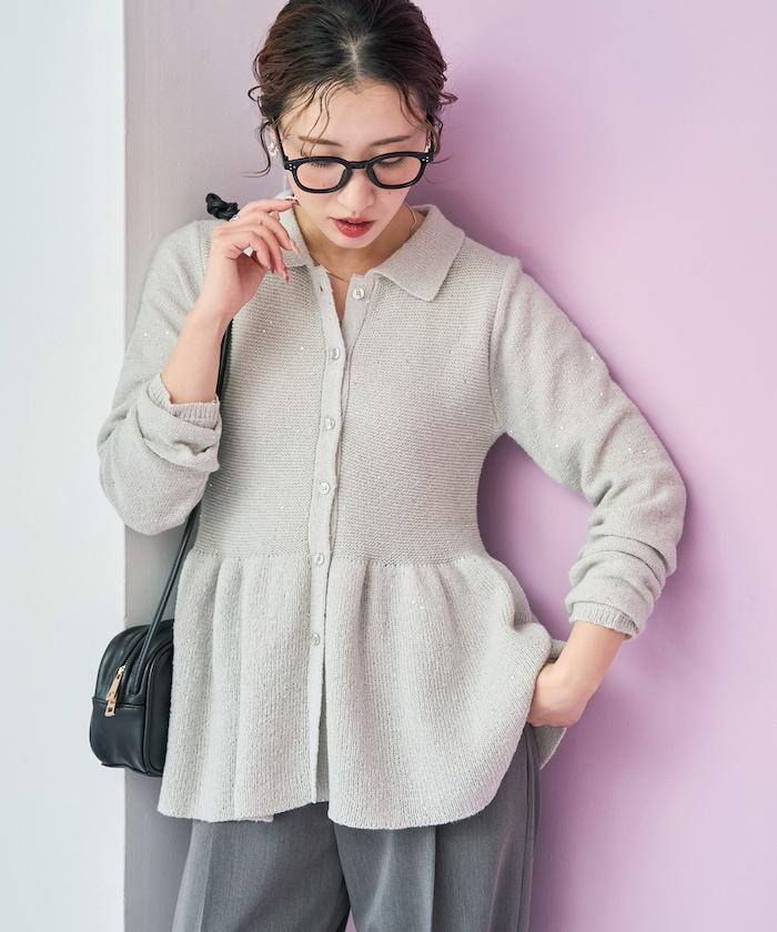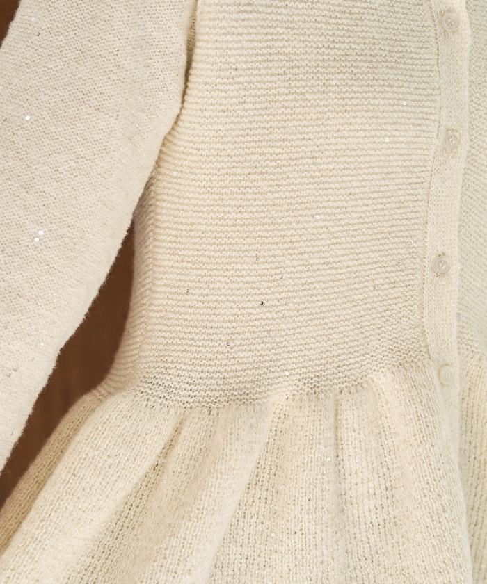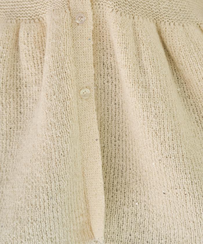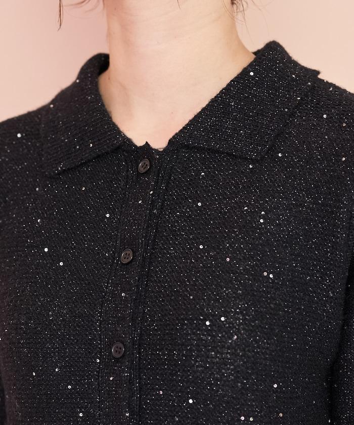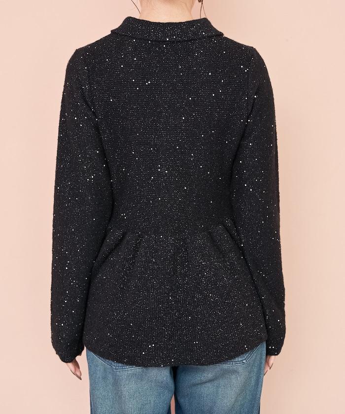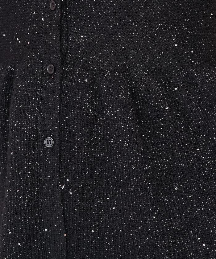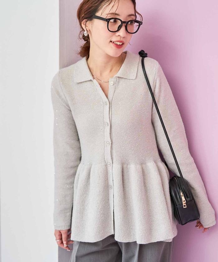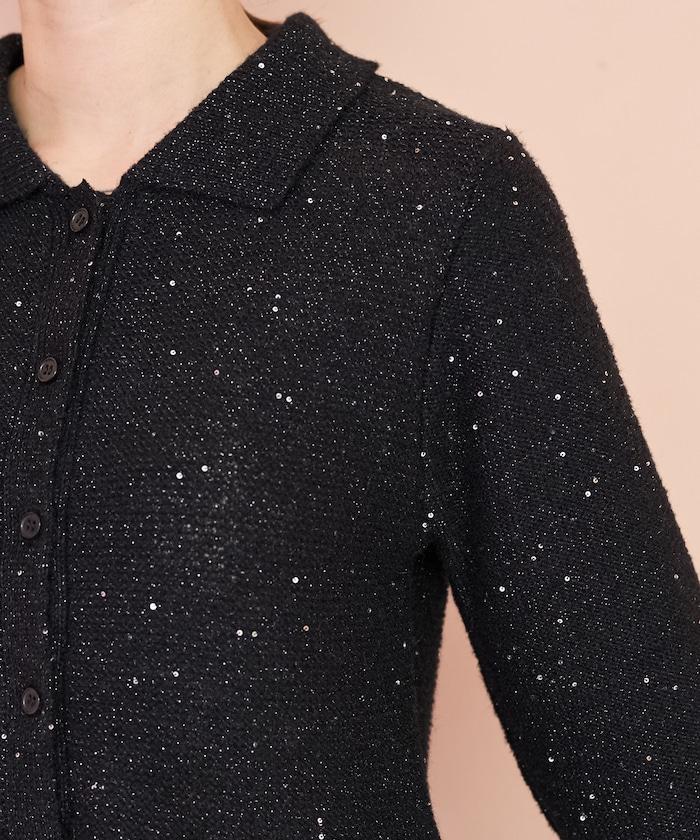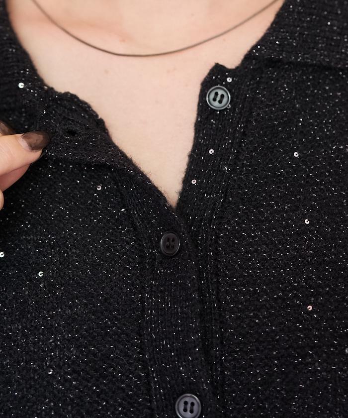 開襟羊毛衫,領口設計,飾有微妙的亮片。
