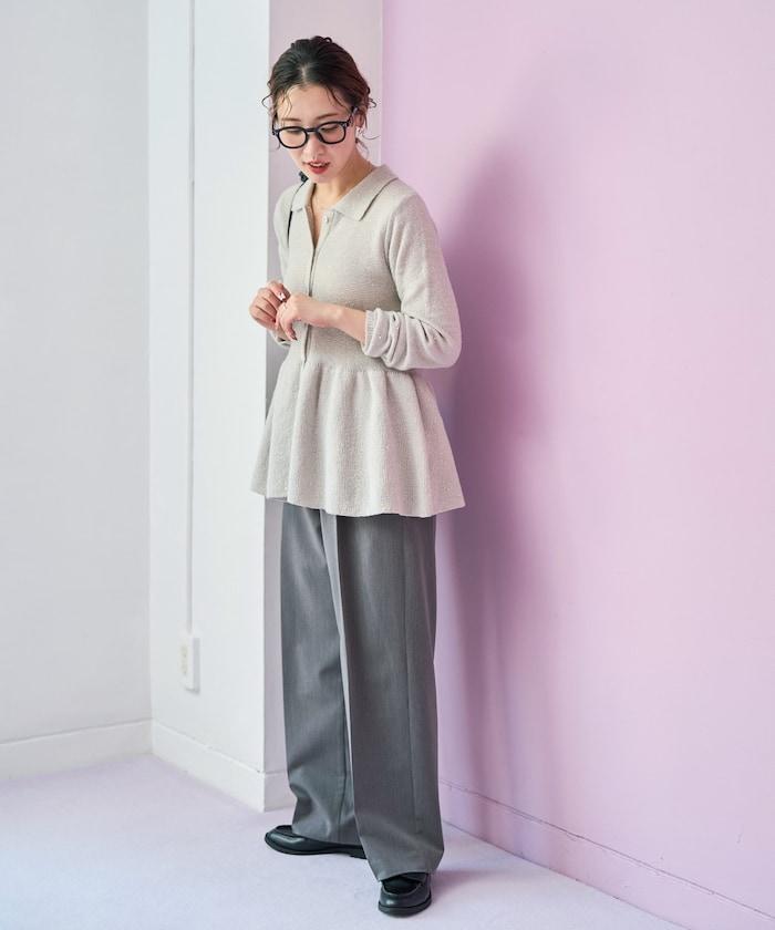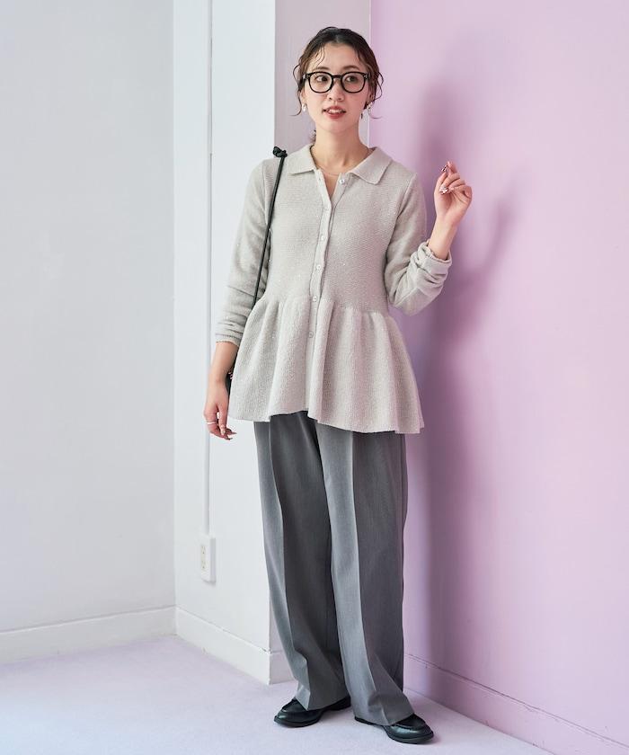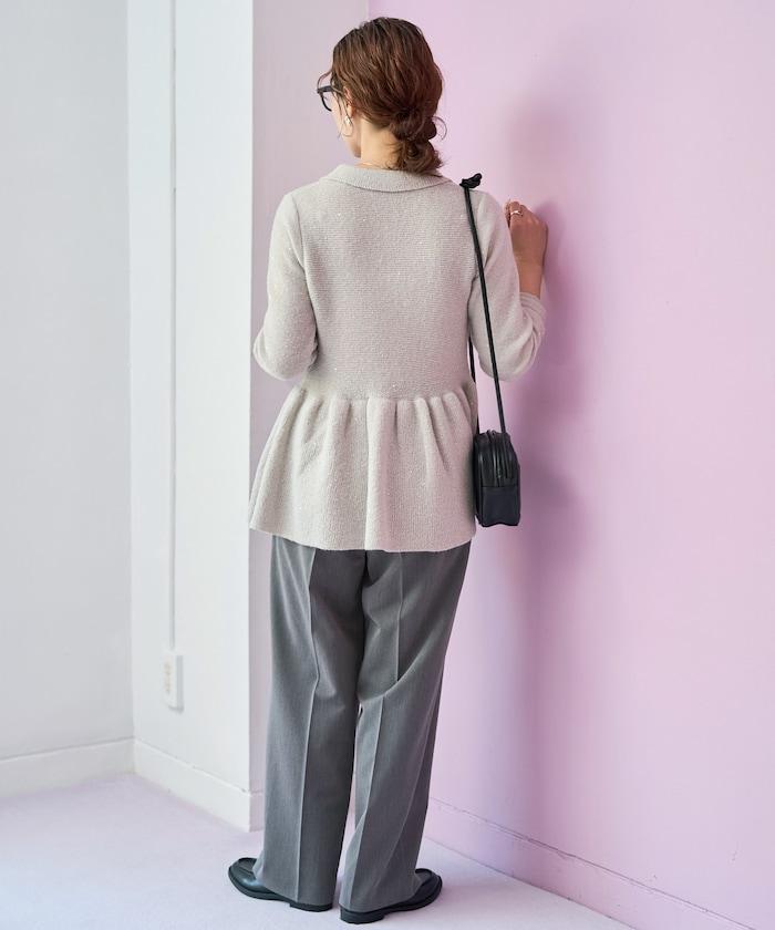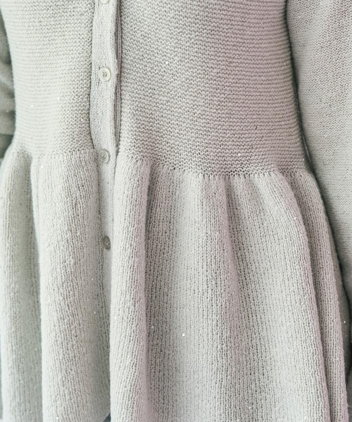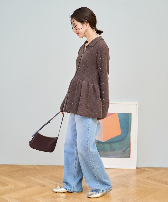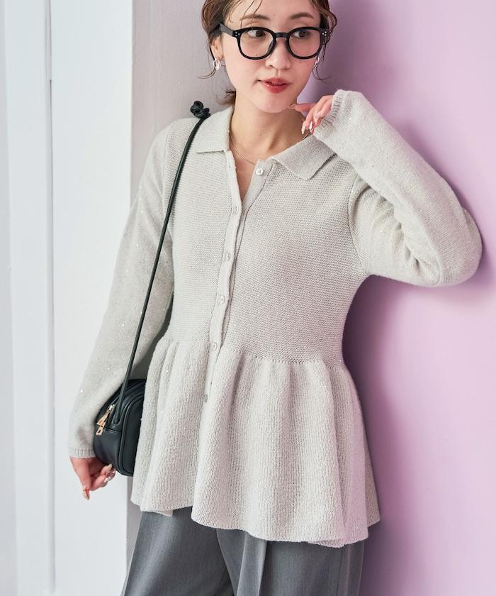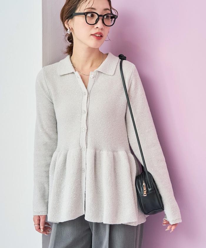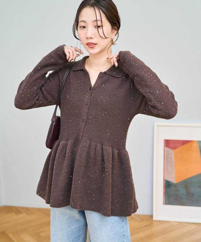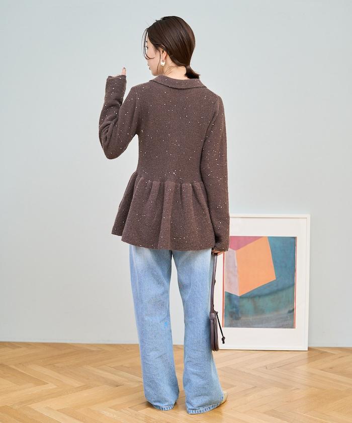開襟羊毛衫,領口設計,飾有微妙的亮片。
