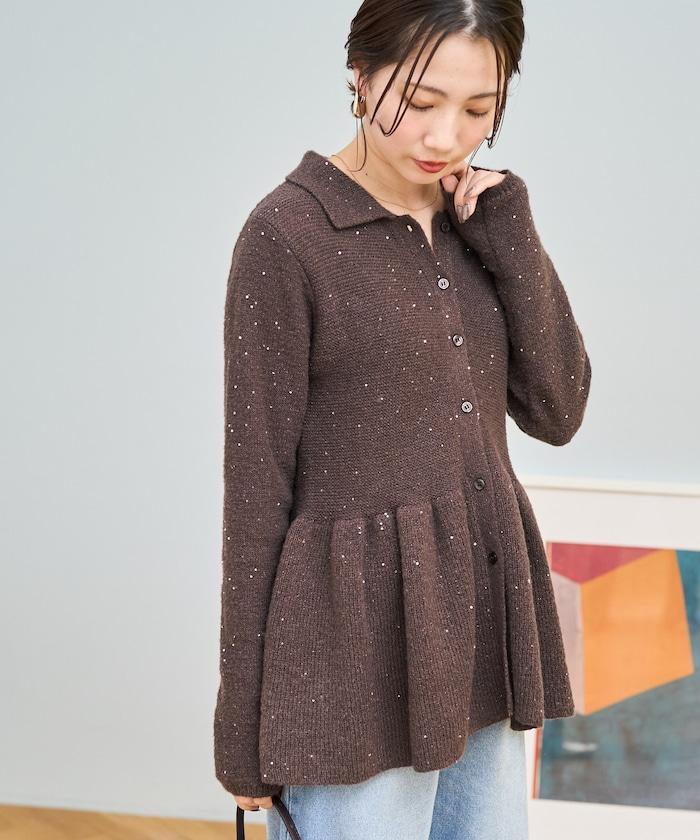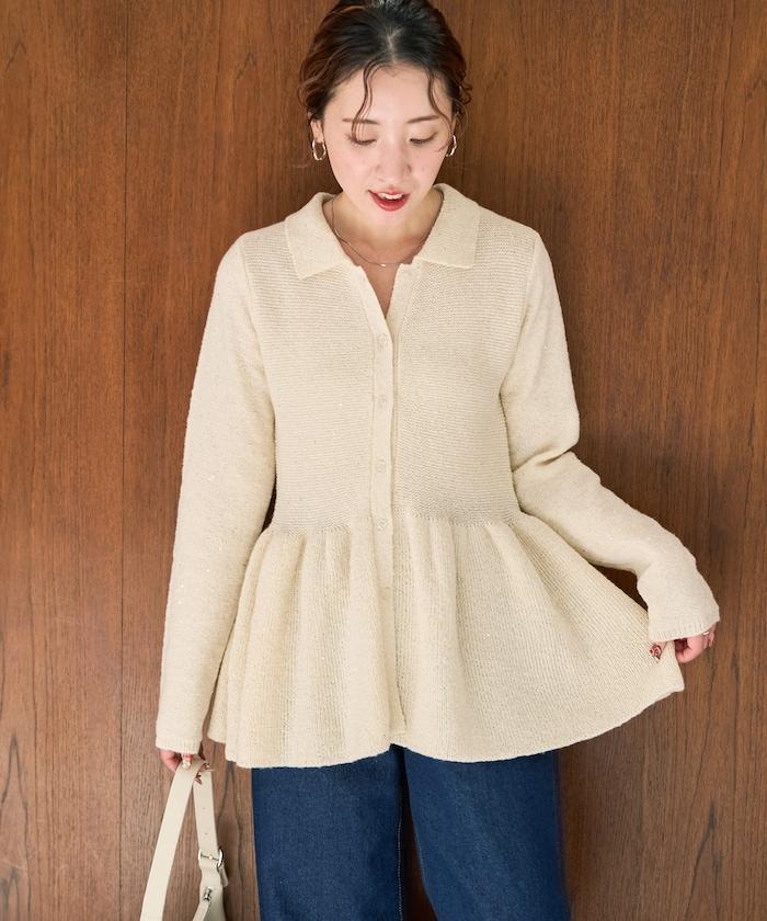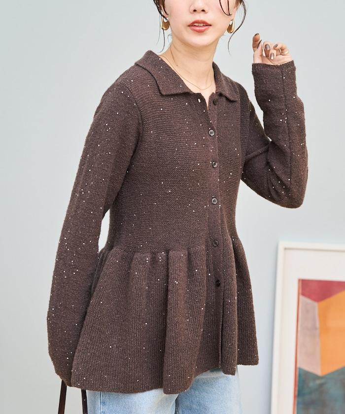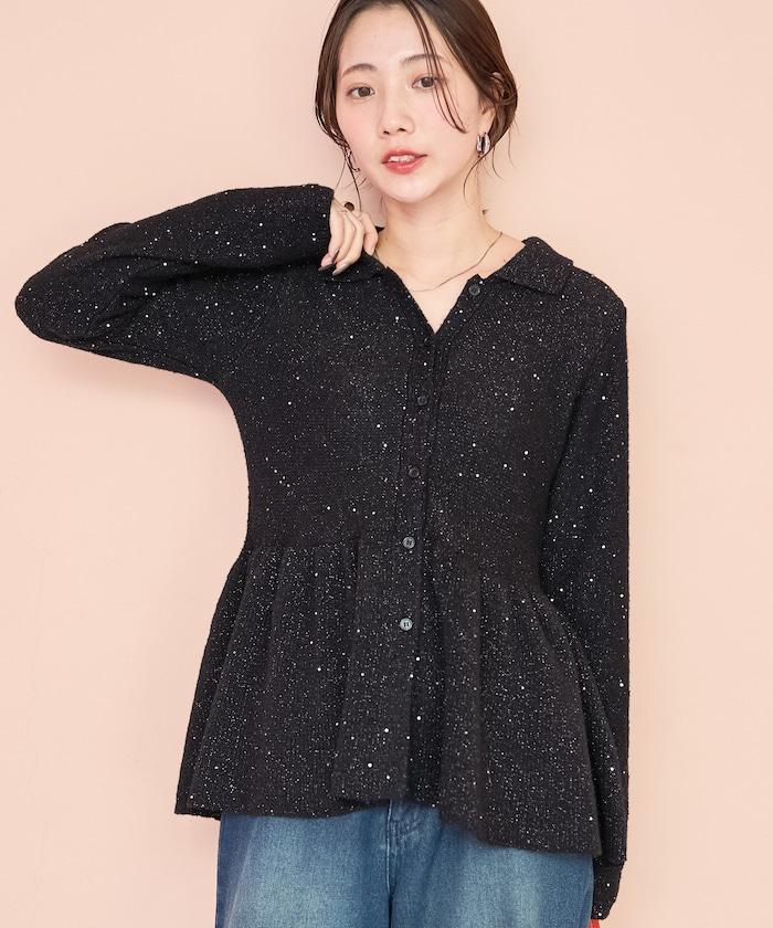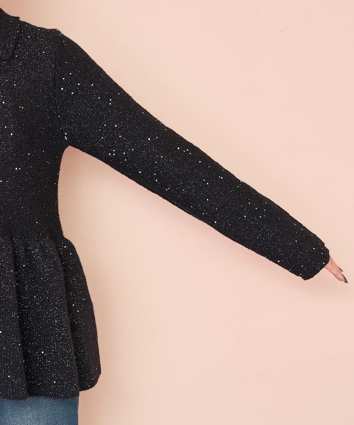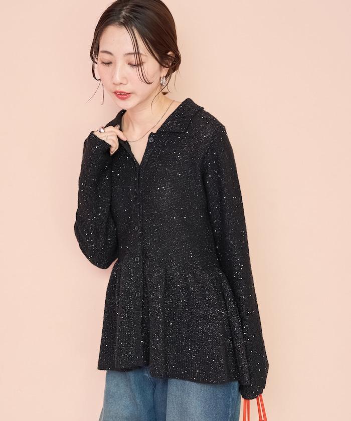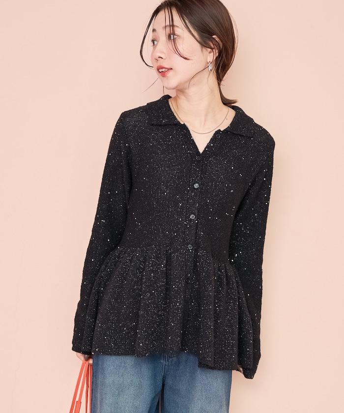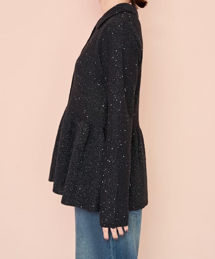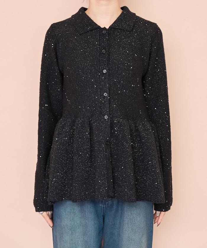 帶領亮片荷葉邊開衫