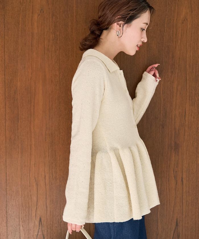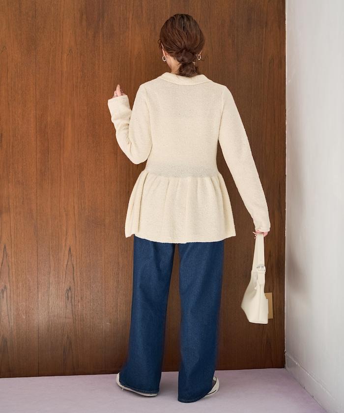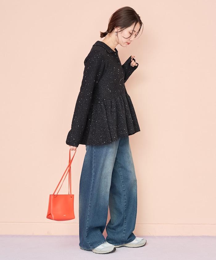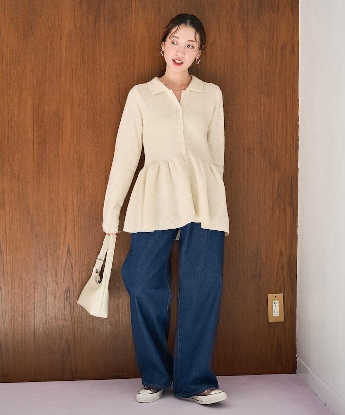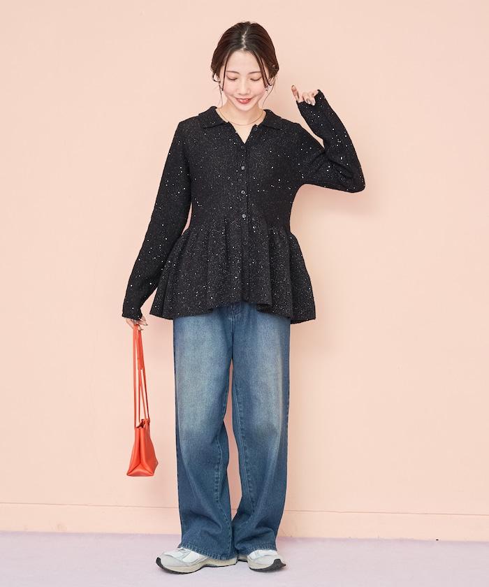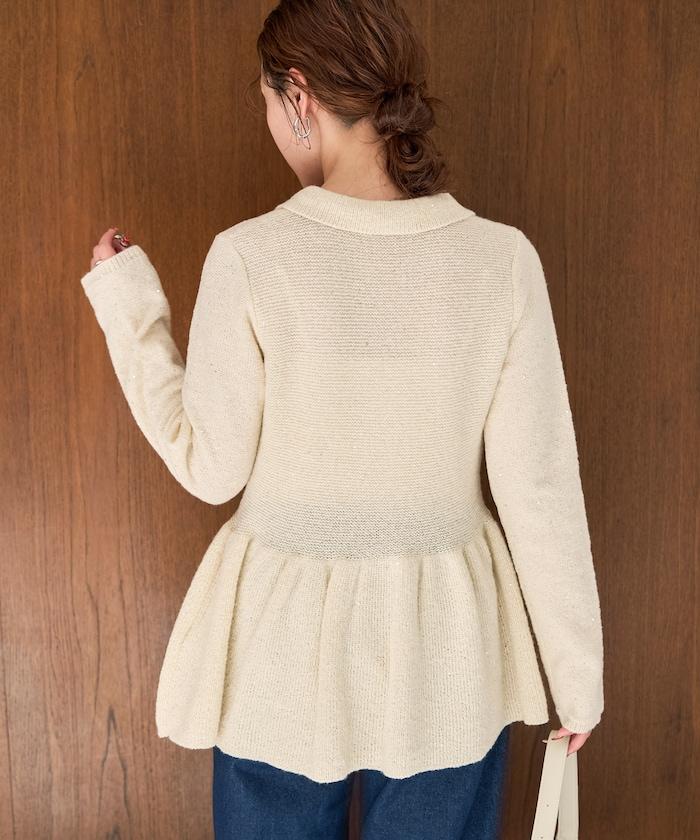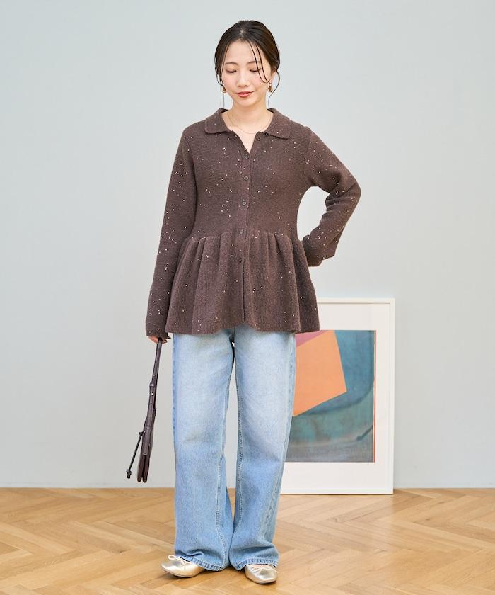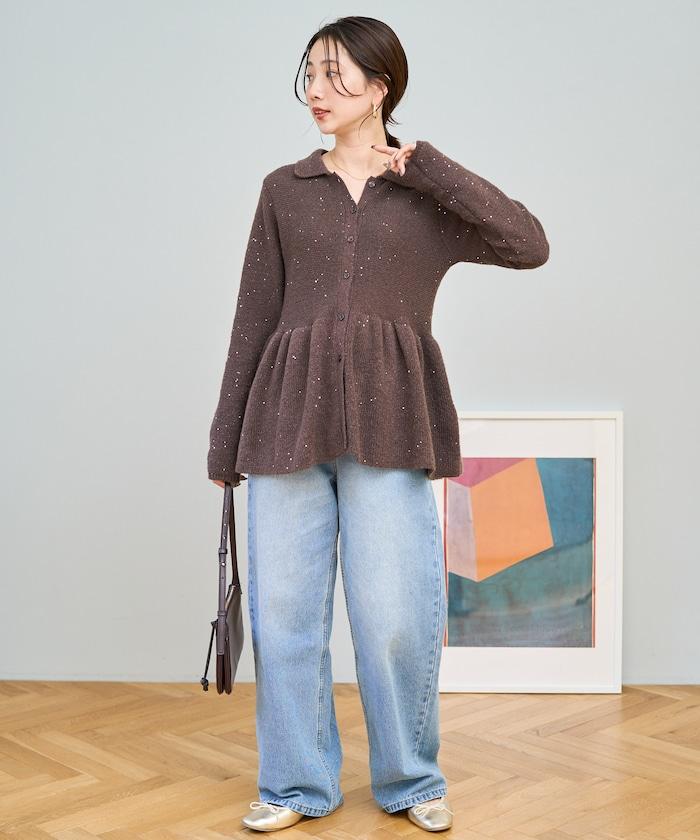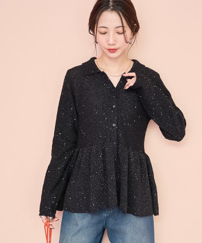 帶領亮片荷葉邊開衫
