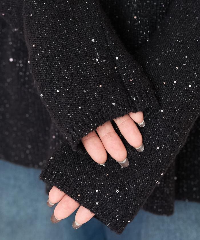 為了增強亮片的閃耀感,可搭配黑色或緞面長褲,打造特別的成熟造型,非常適合節日季節!