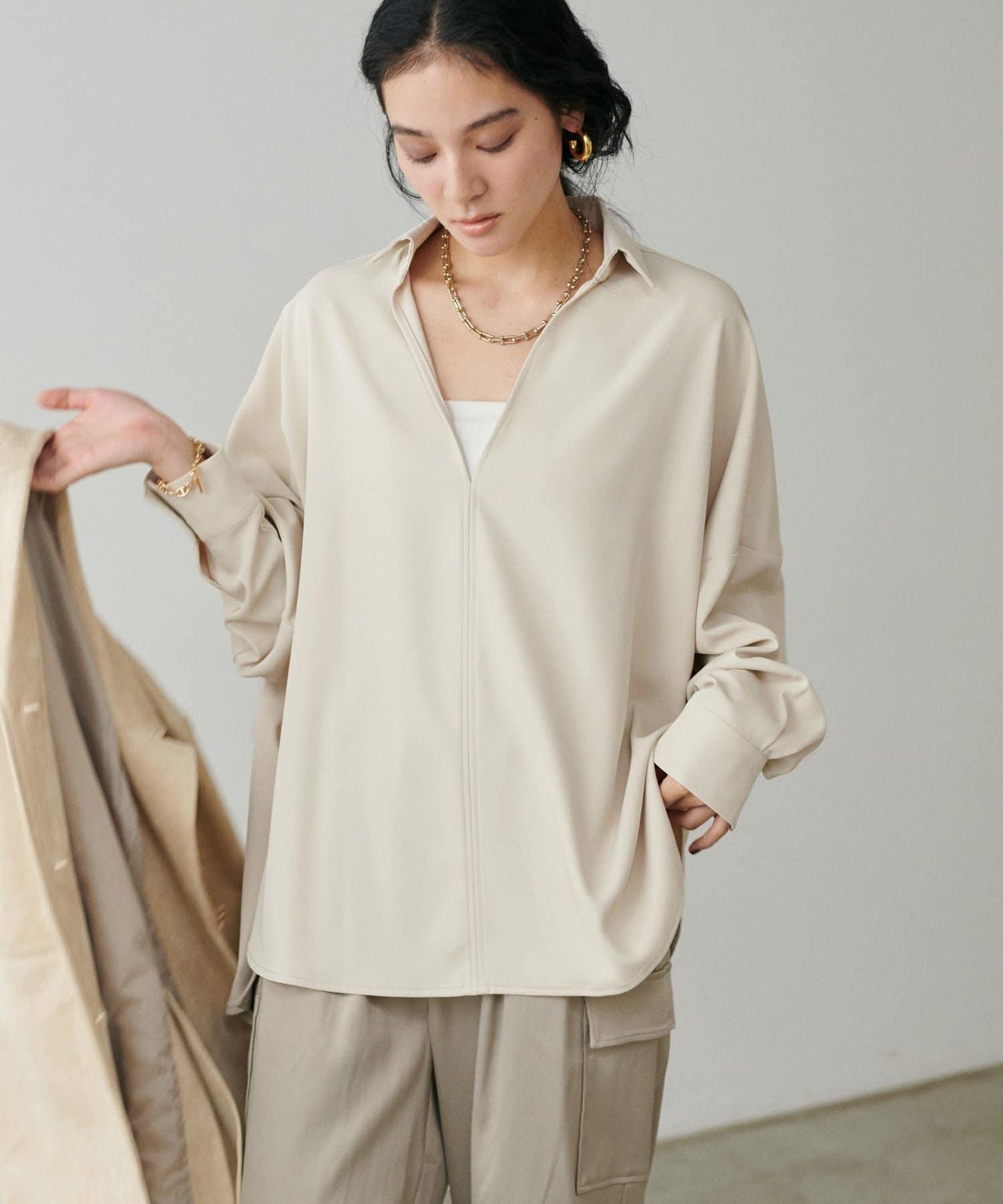 適度開襟的領口設計使臉部看起來更加乾淨利落。