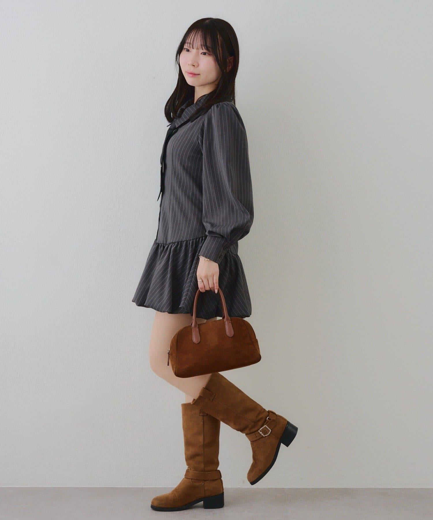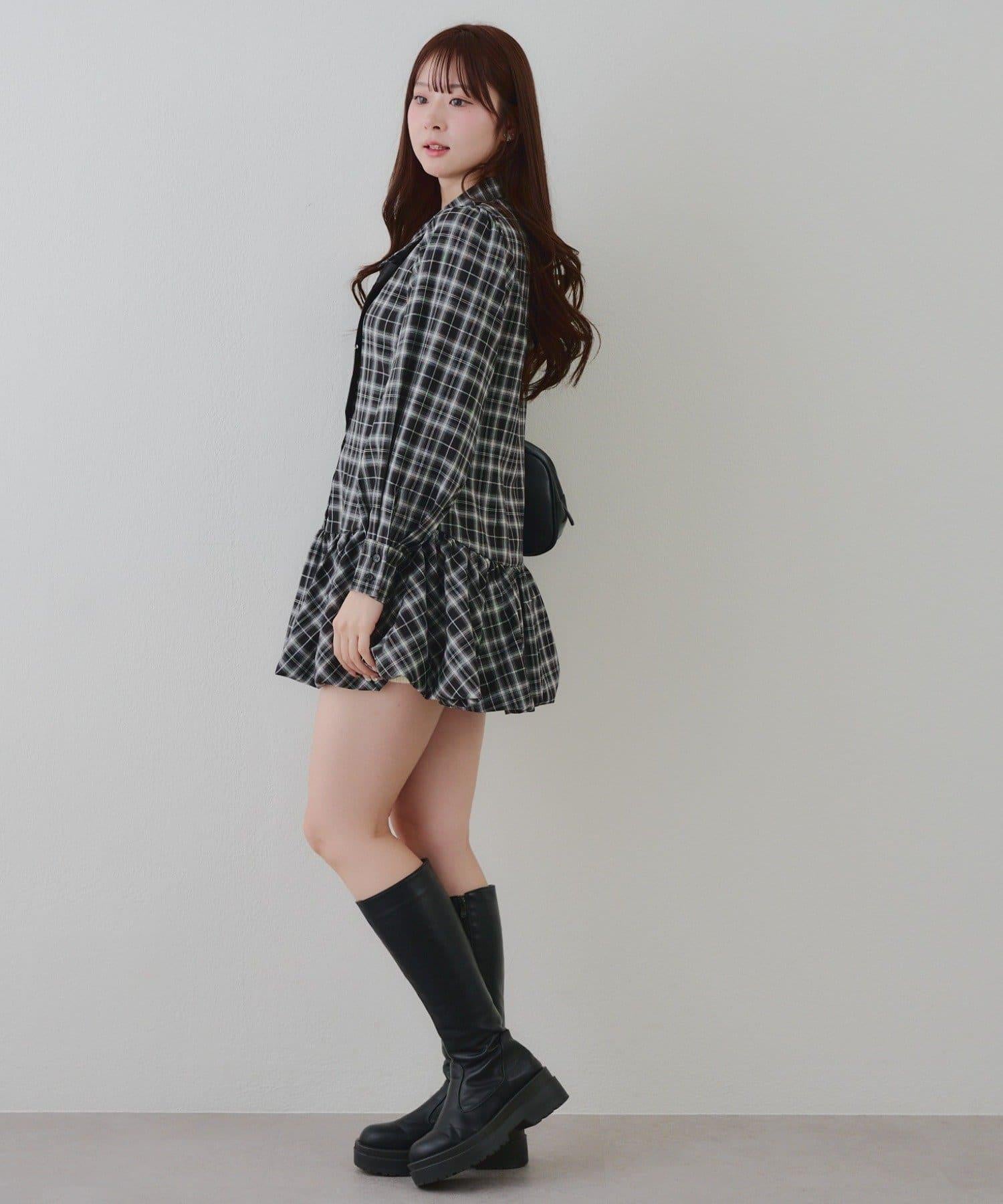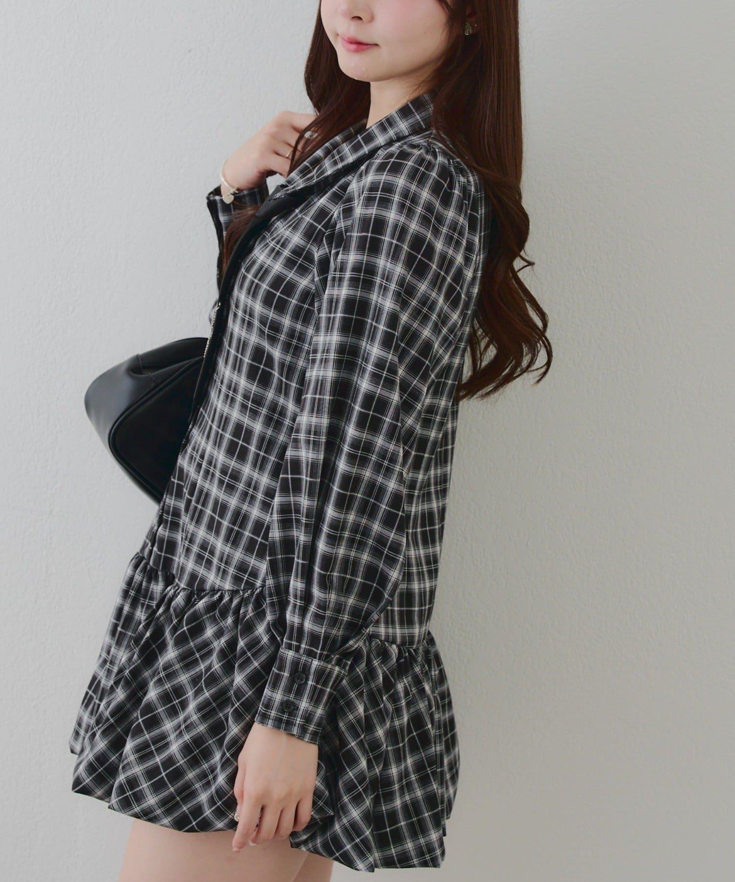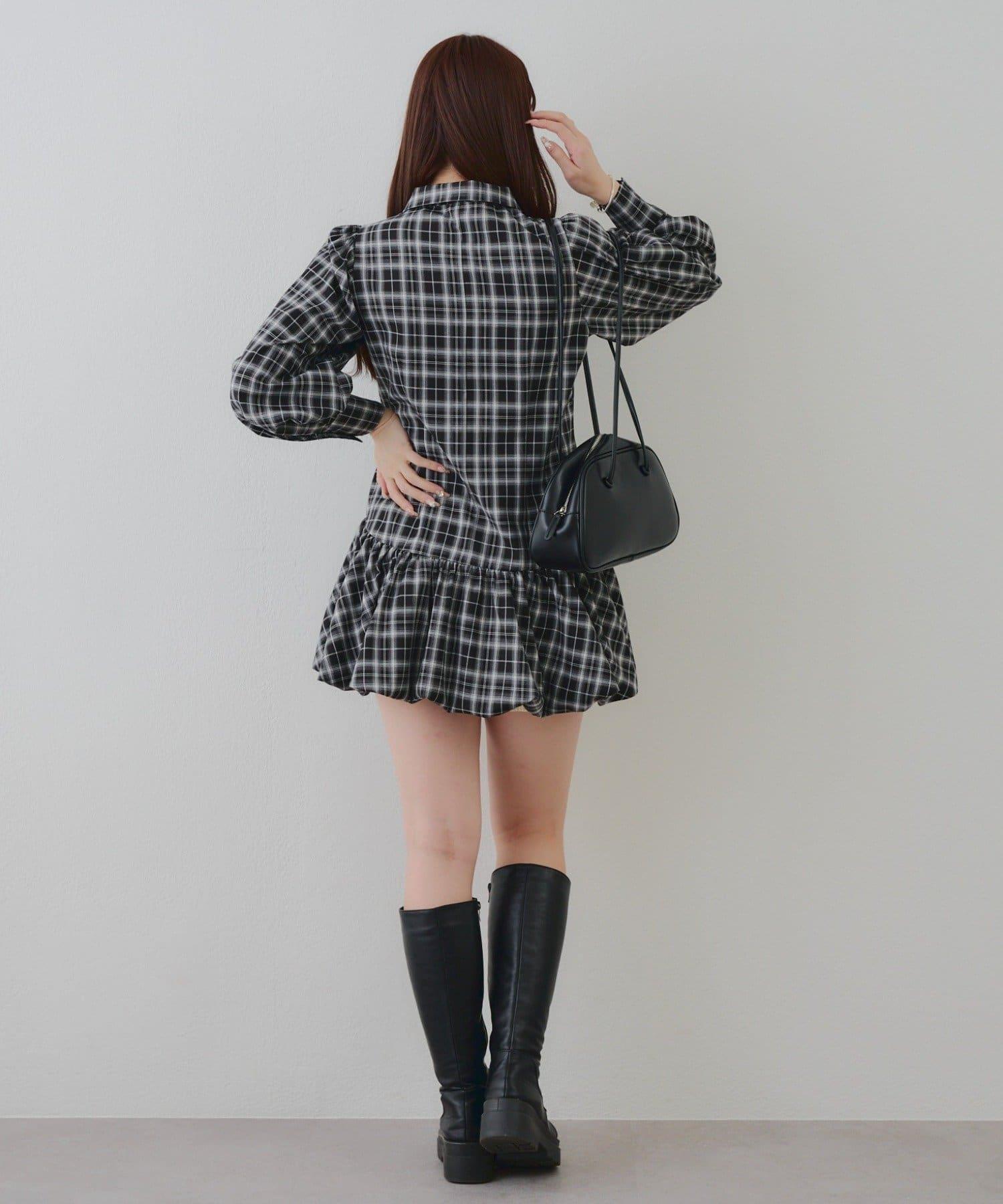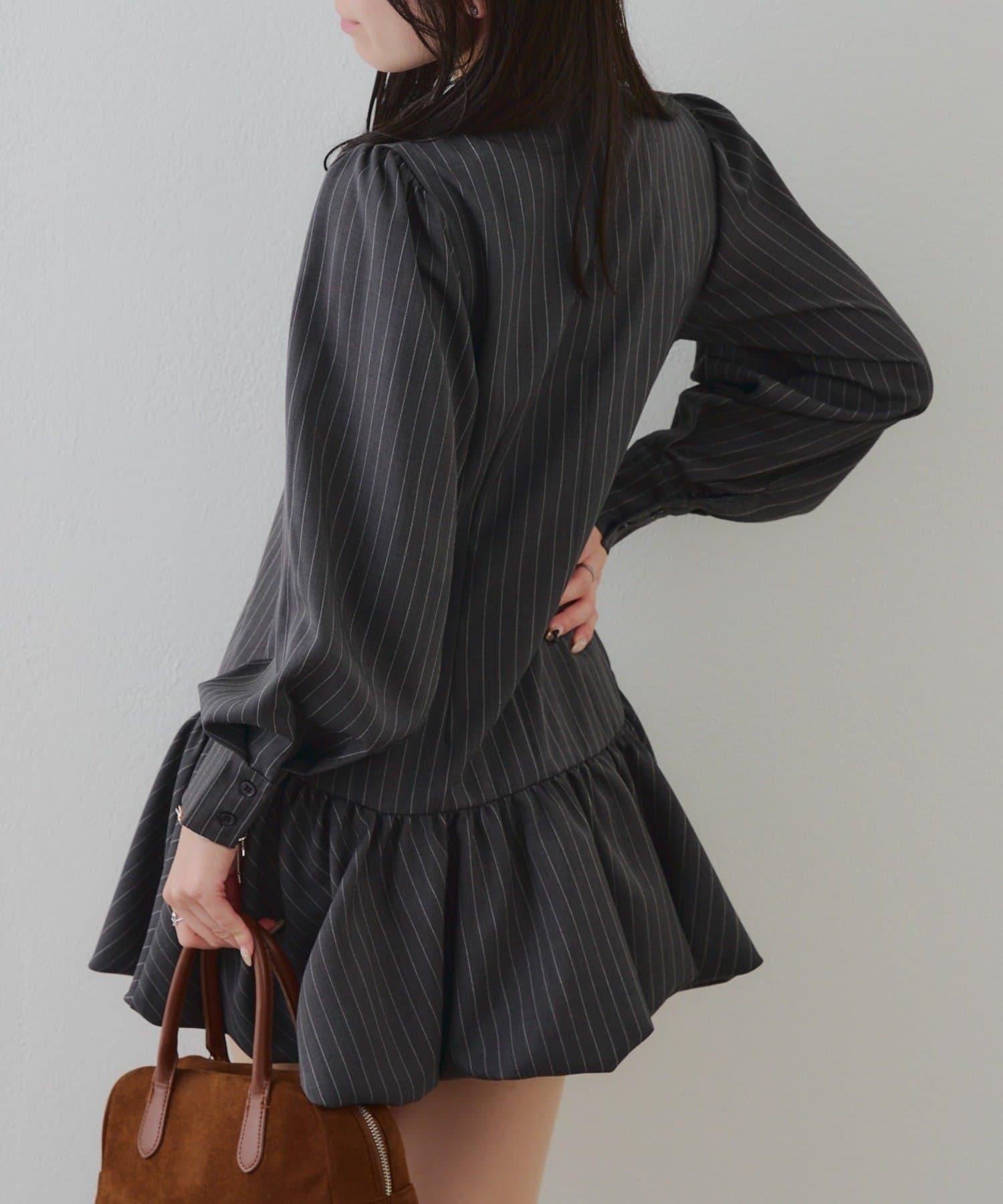 帶領帶下襬泡泡袖迷你連衣裙