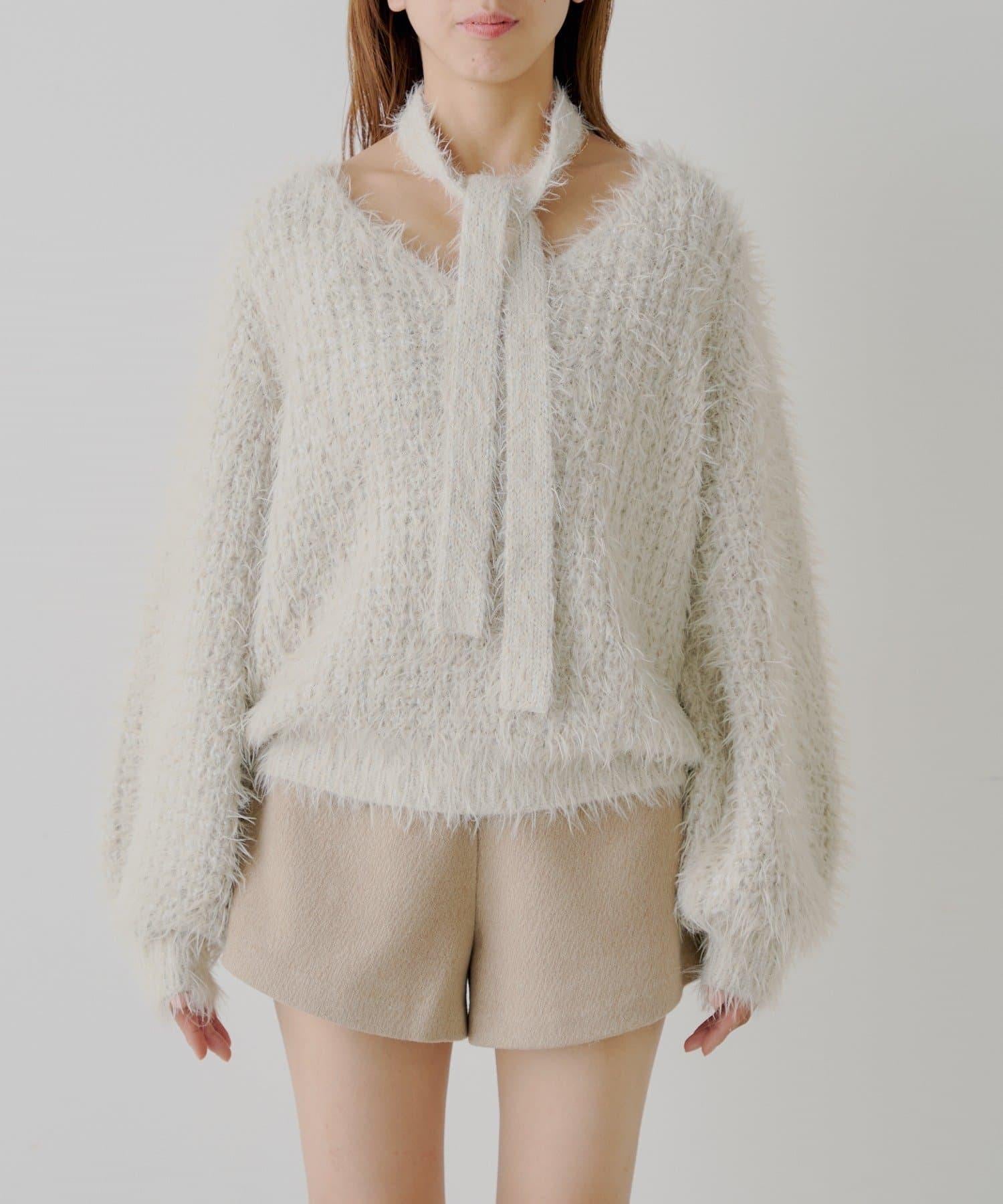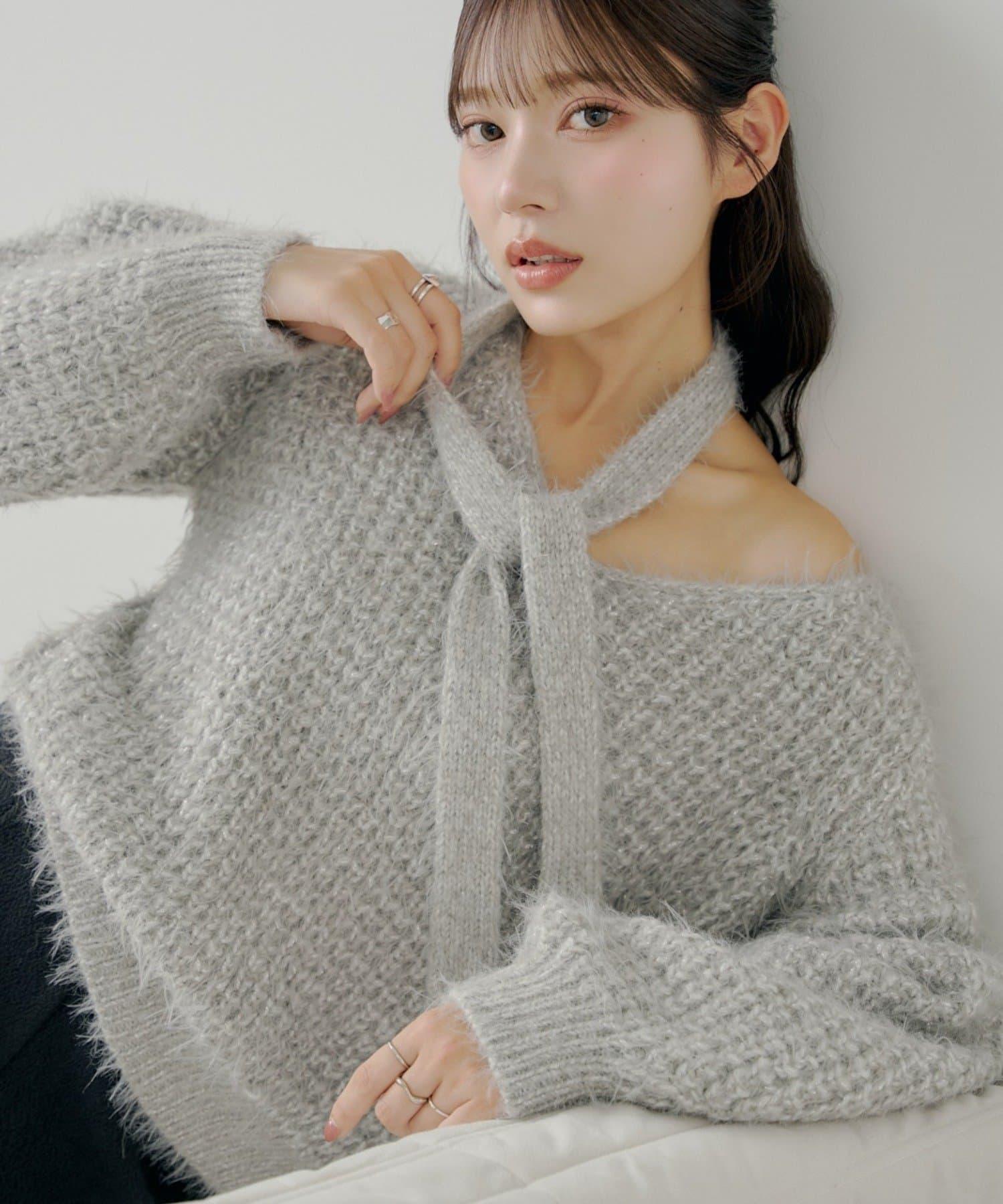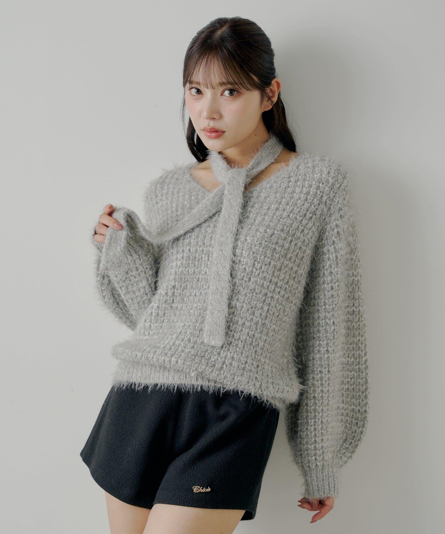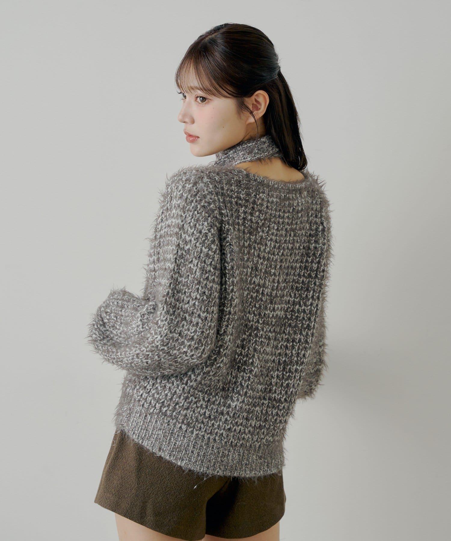 柔軟蓬鬆的質感混色寬鬆針織衫,配以領帶!