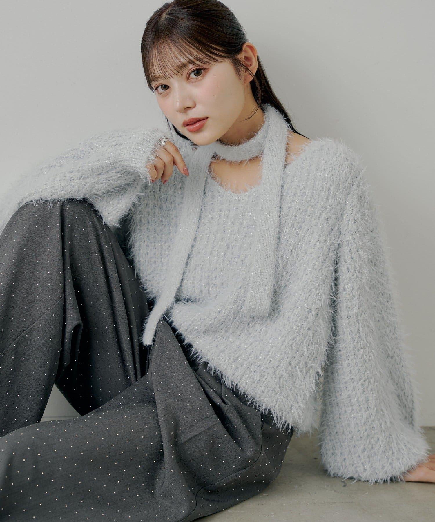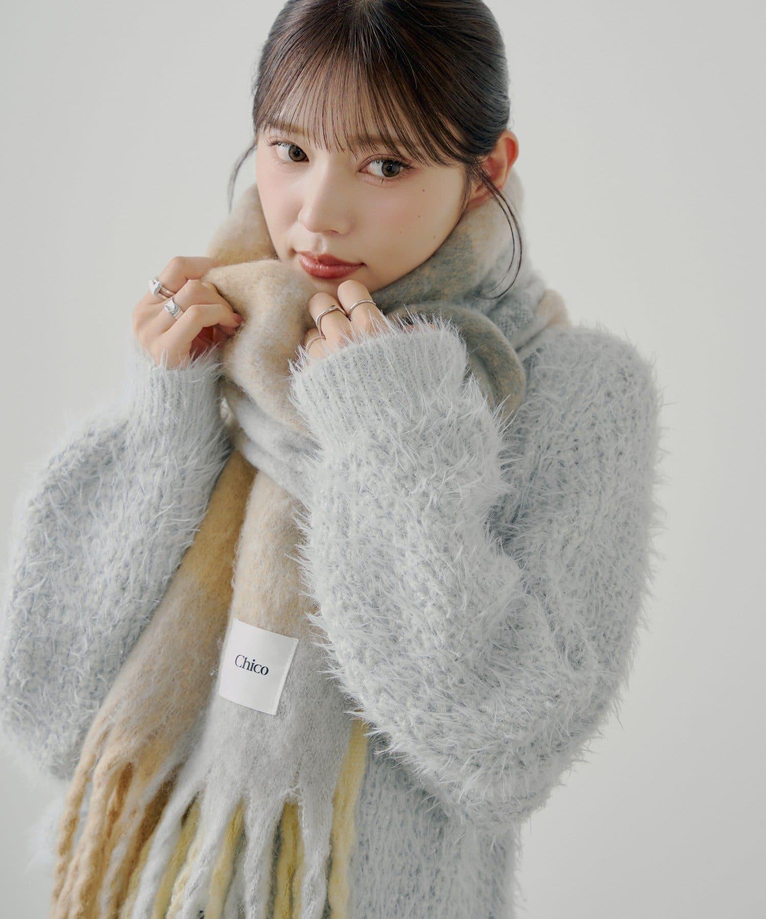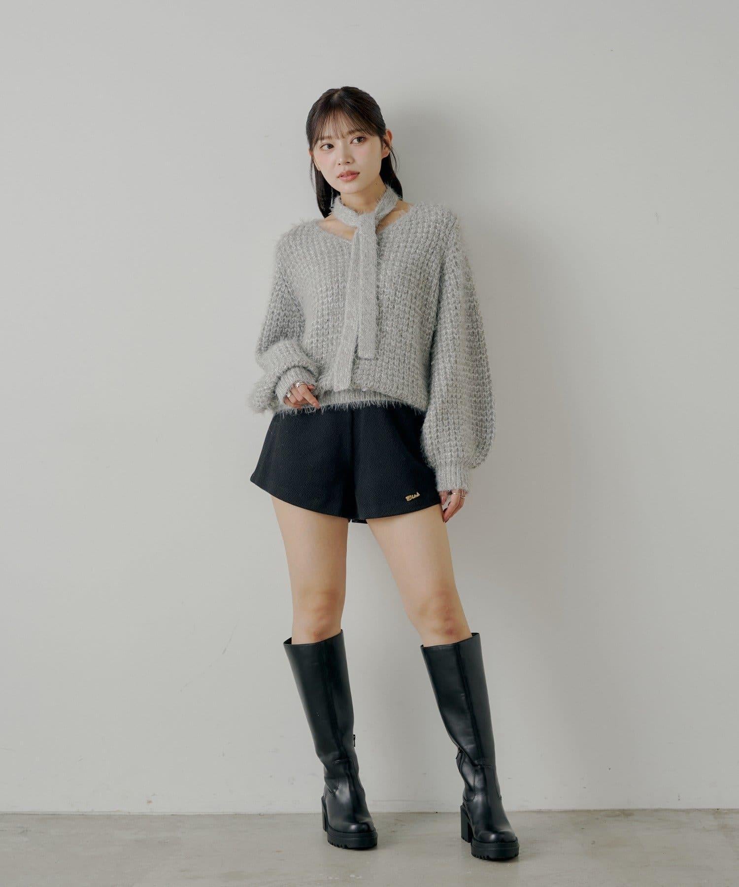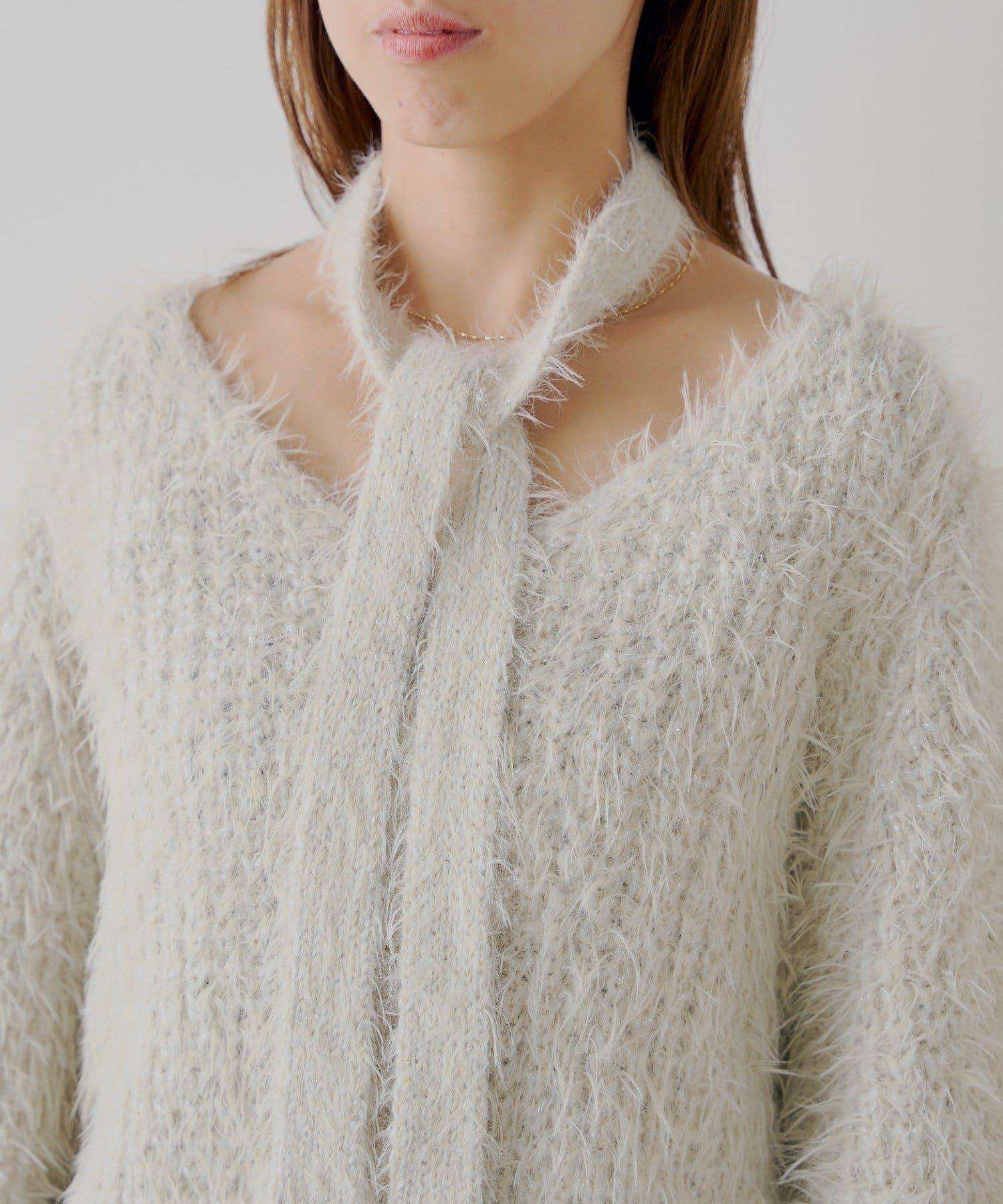 柔軟蓬鬆的質感混色寬鬆針織衫,配以領帶!