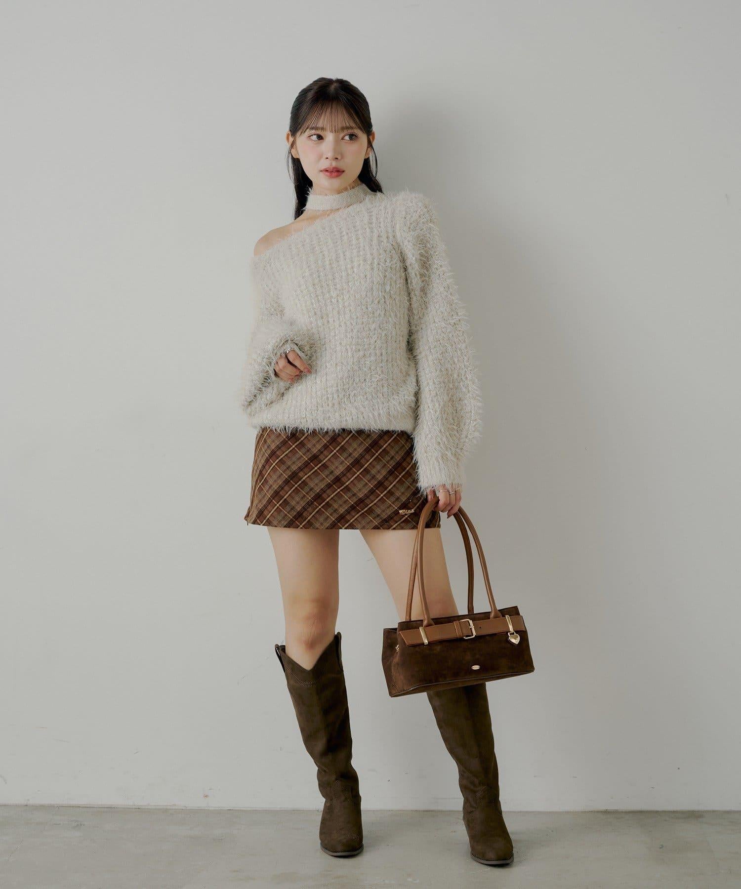 針織衫採用柔軟蓬鬆的色織面料,為您的造型增添層次感。