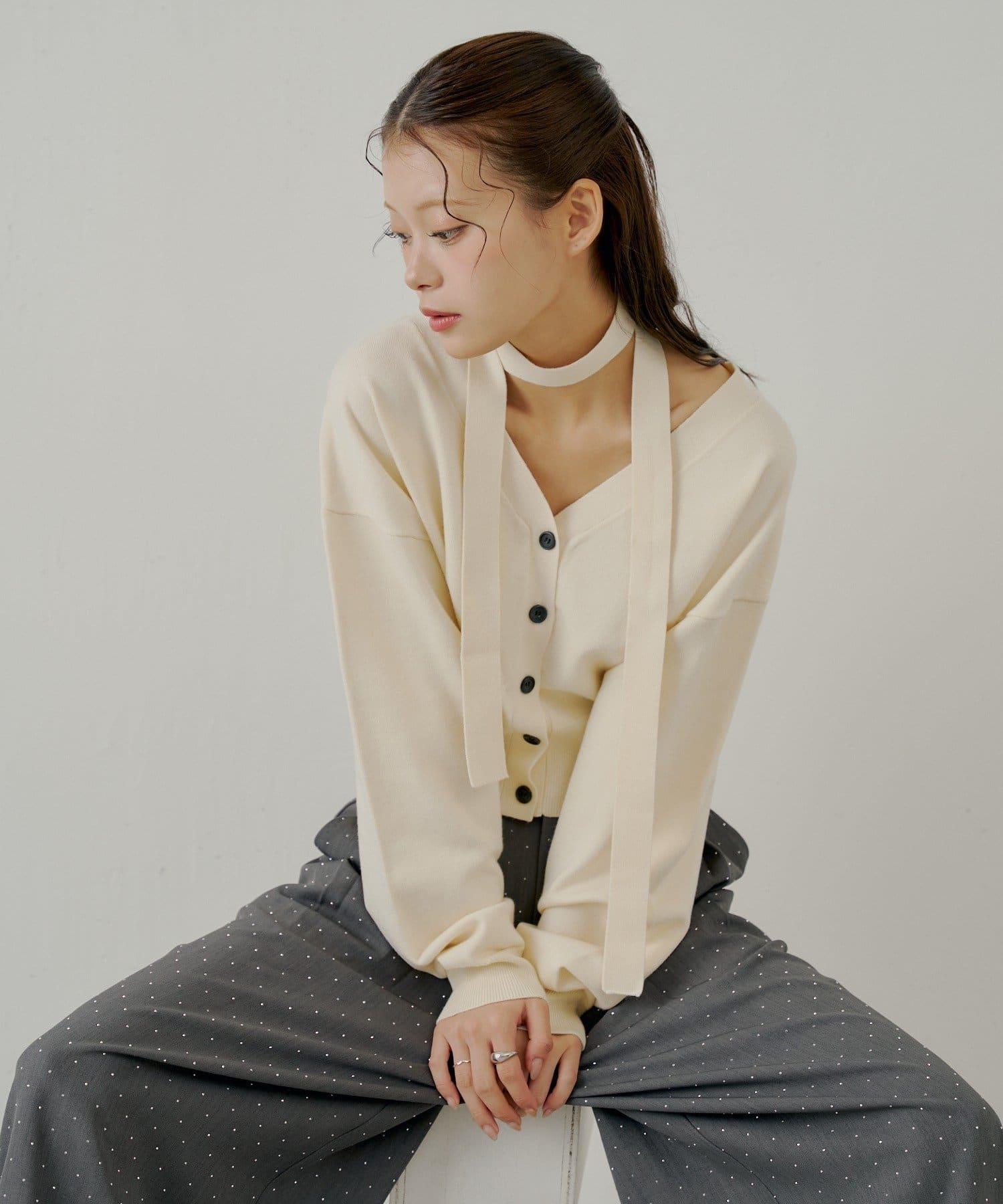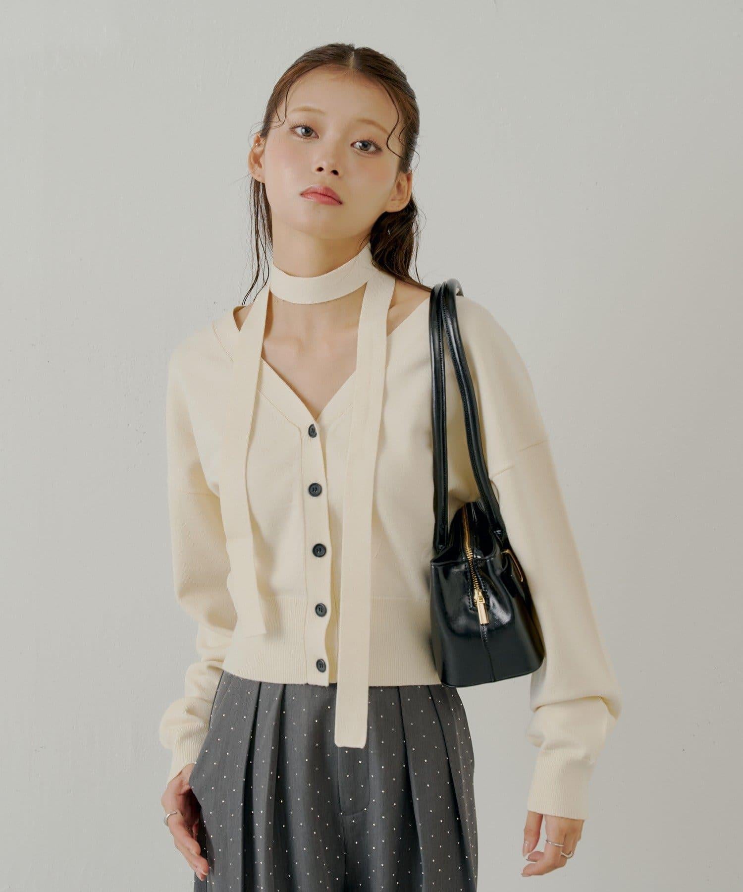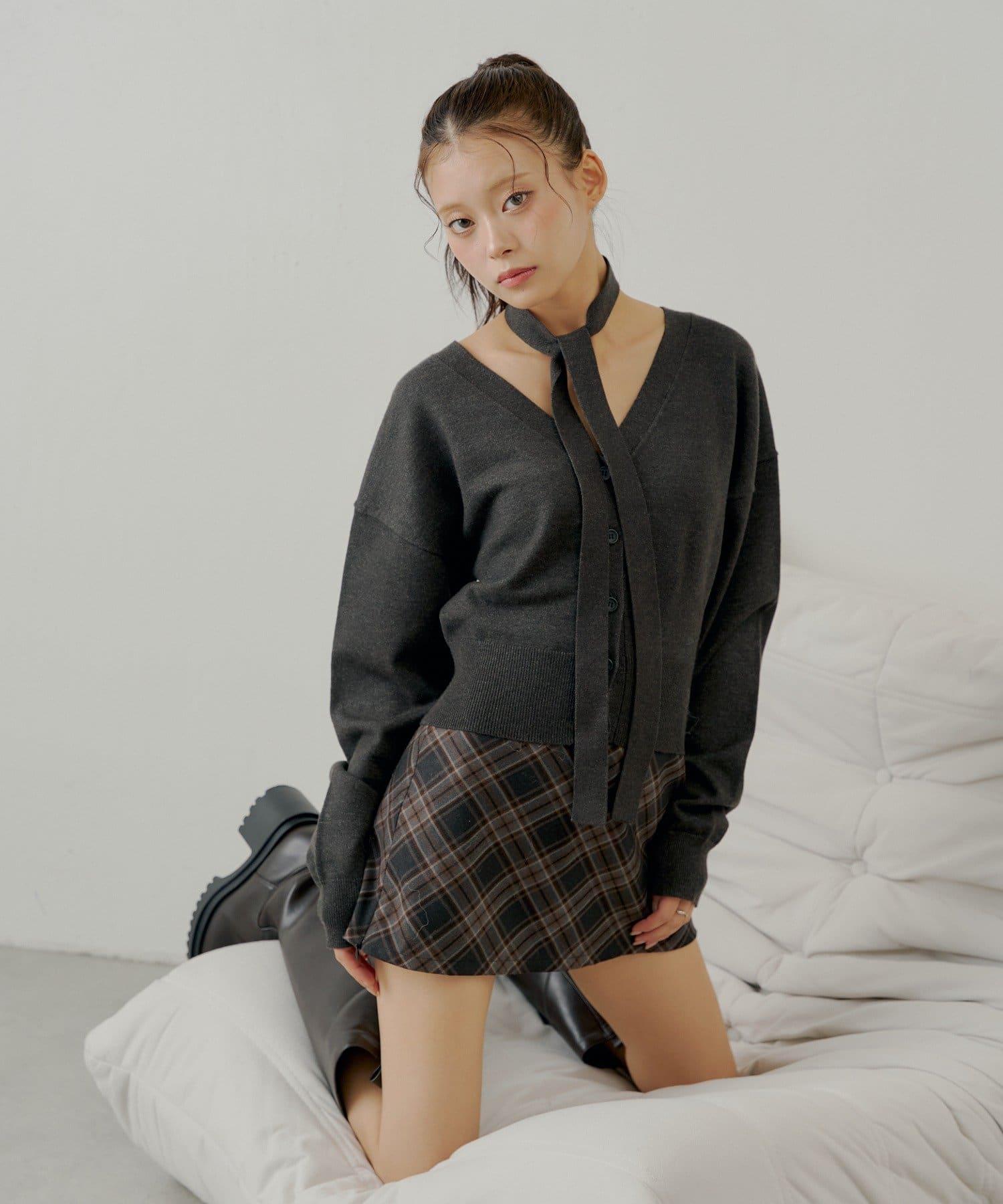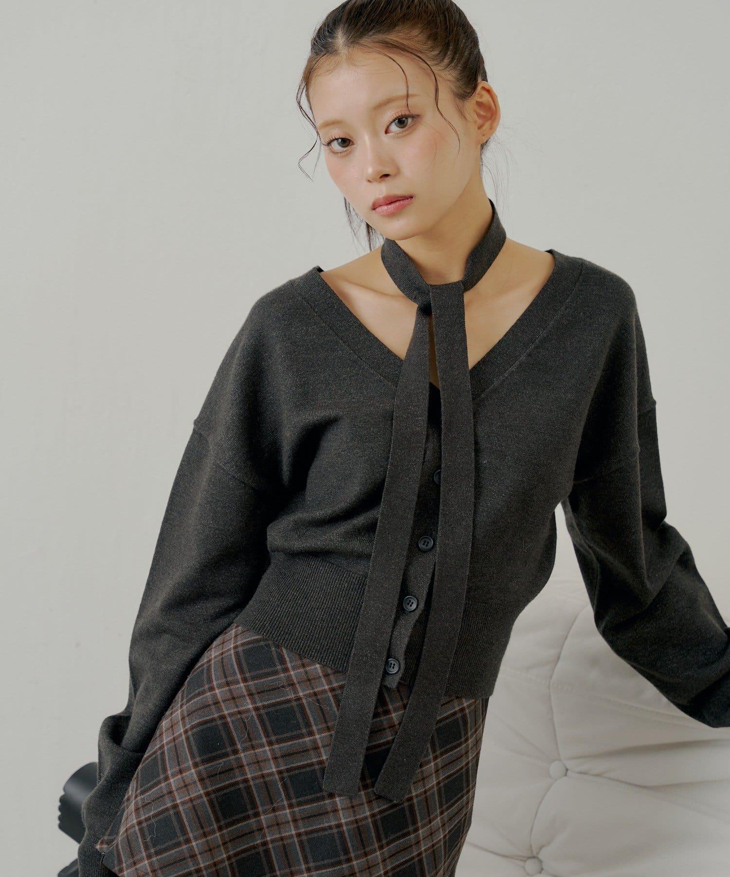 小巧的 V 形針織衫配以領帶,彰顯優雅成人的可愛氣質!