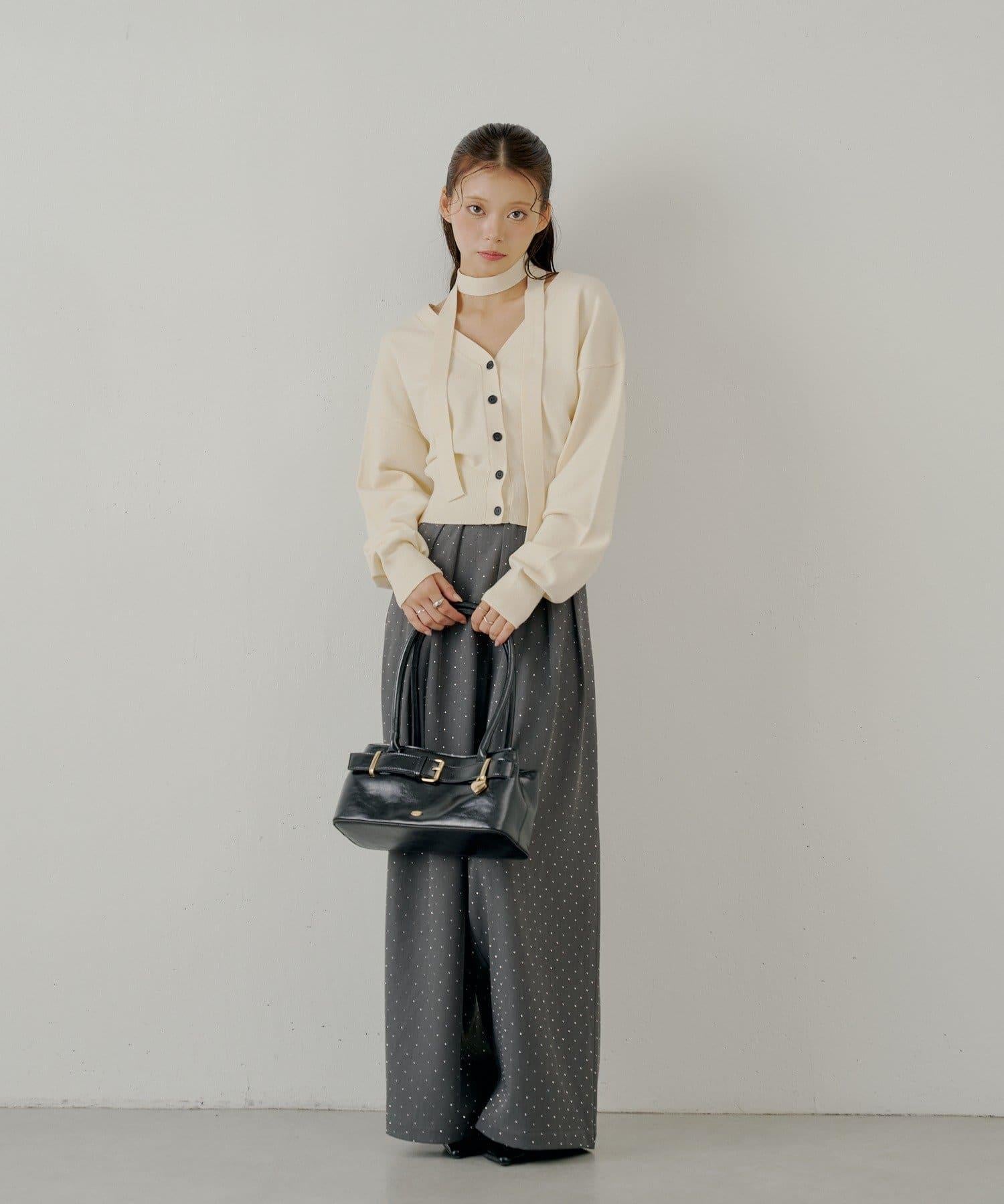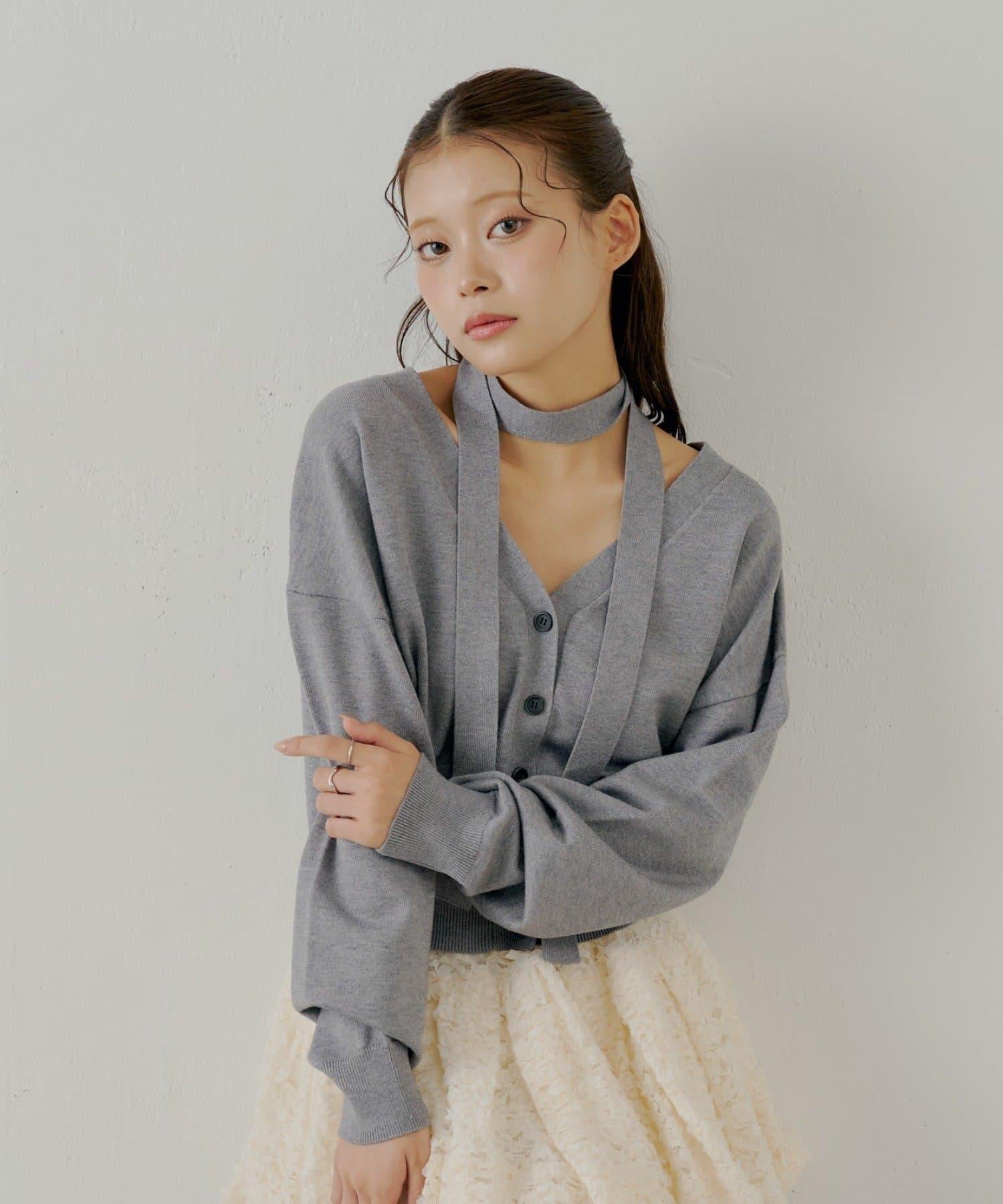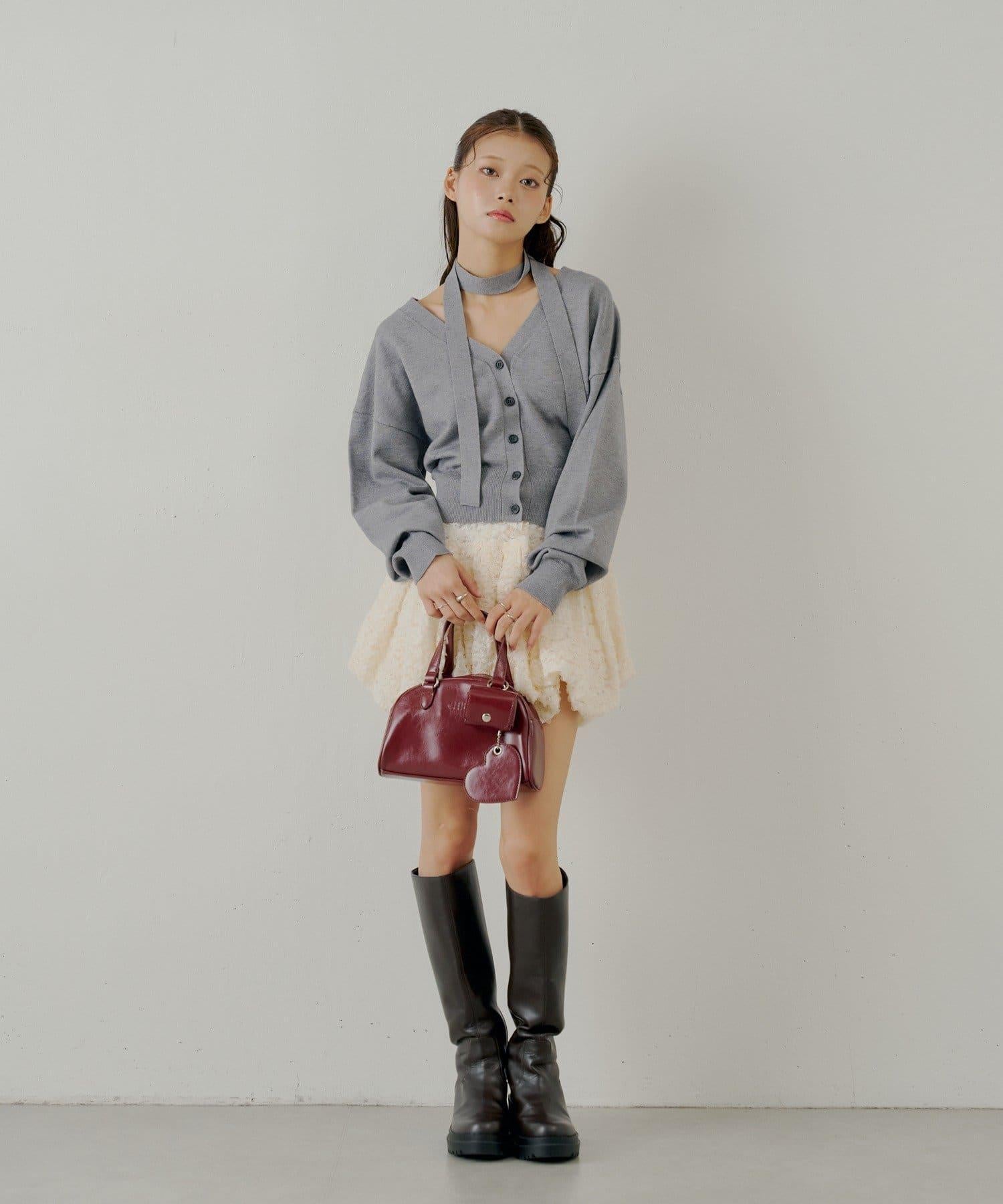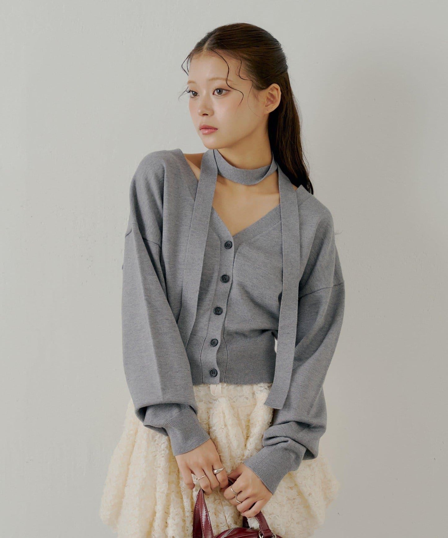 小巧的 V 形針織衫配以領帶,彰顯優雅成人的可愛氣質!