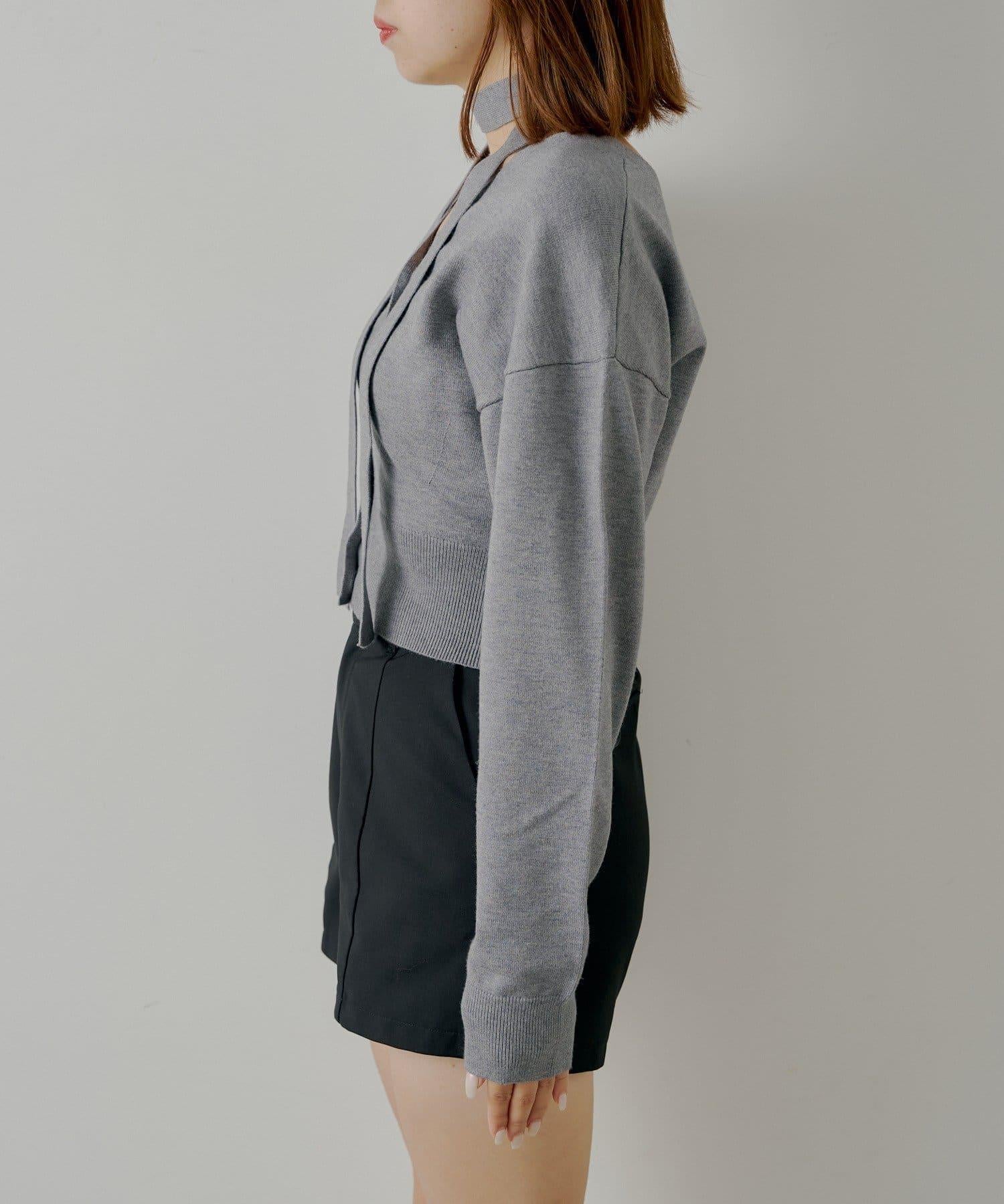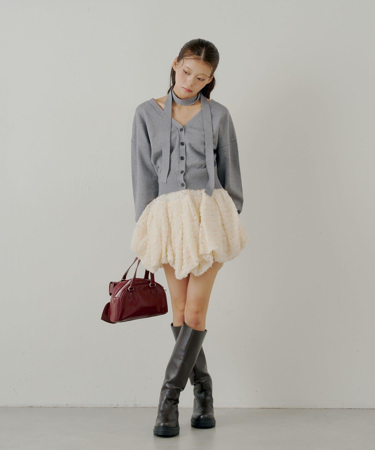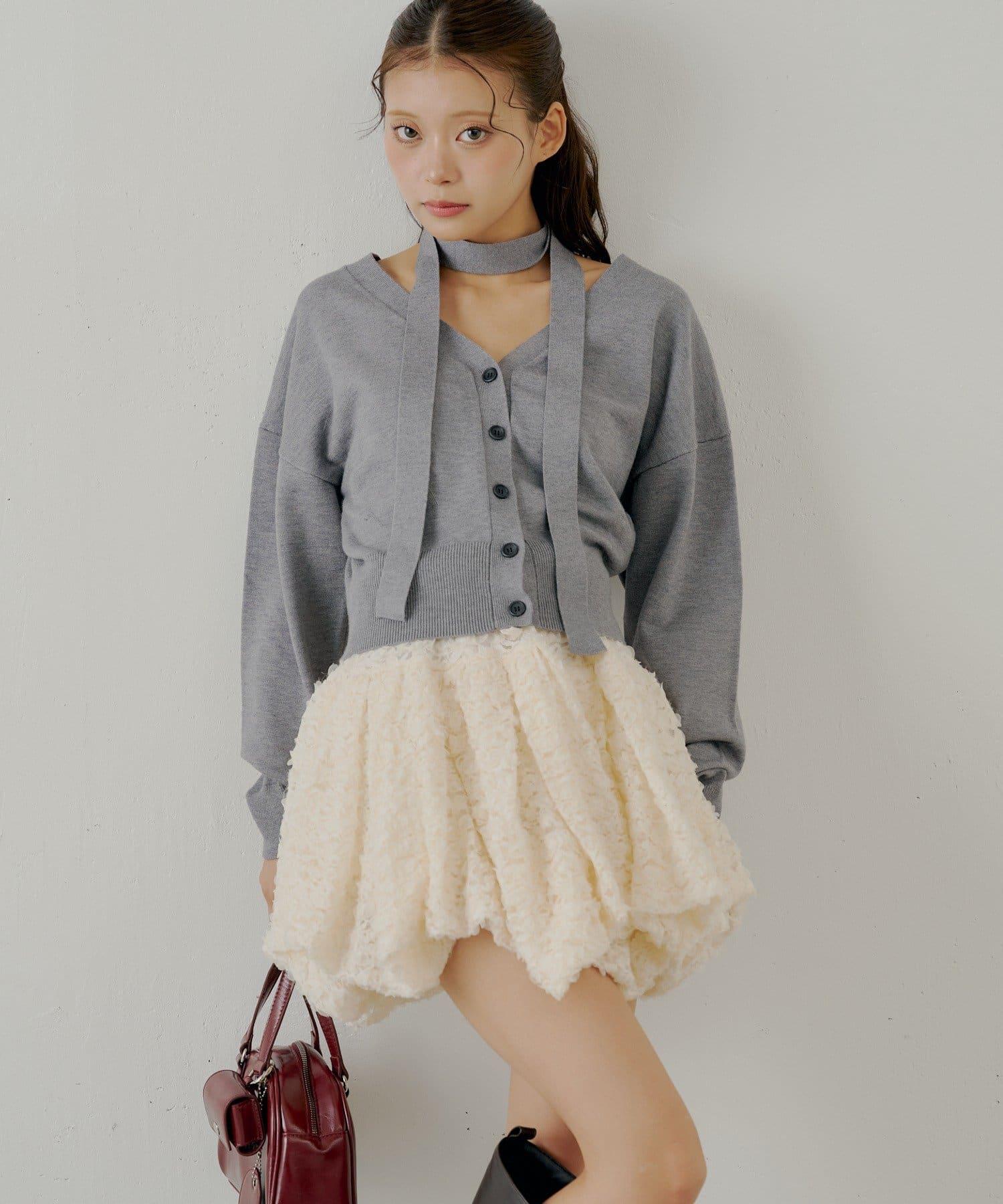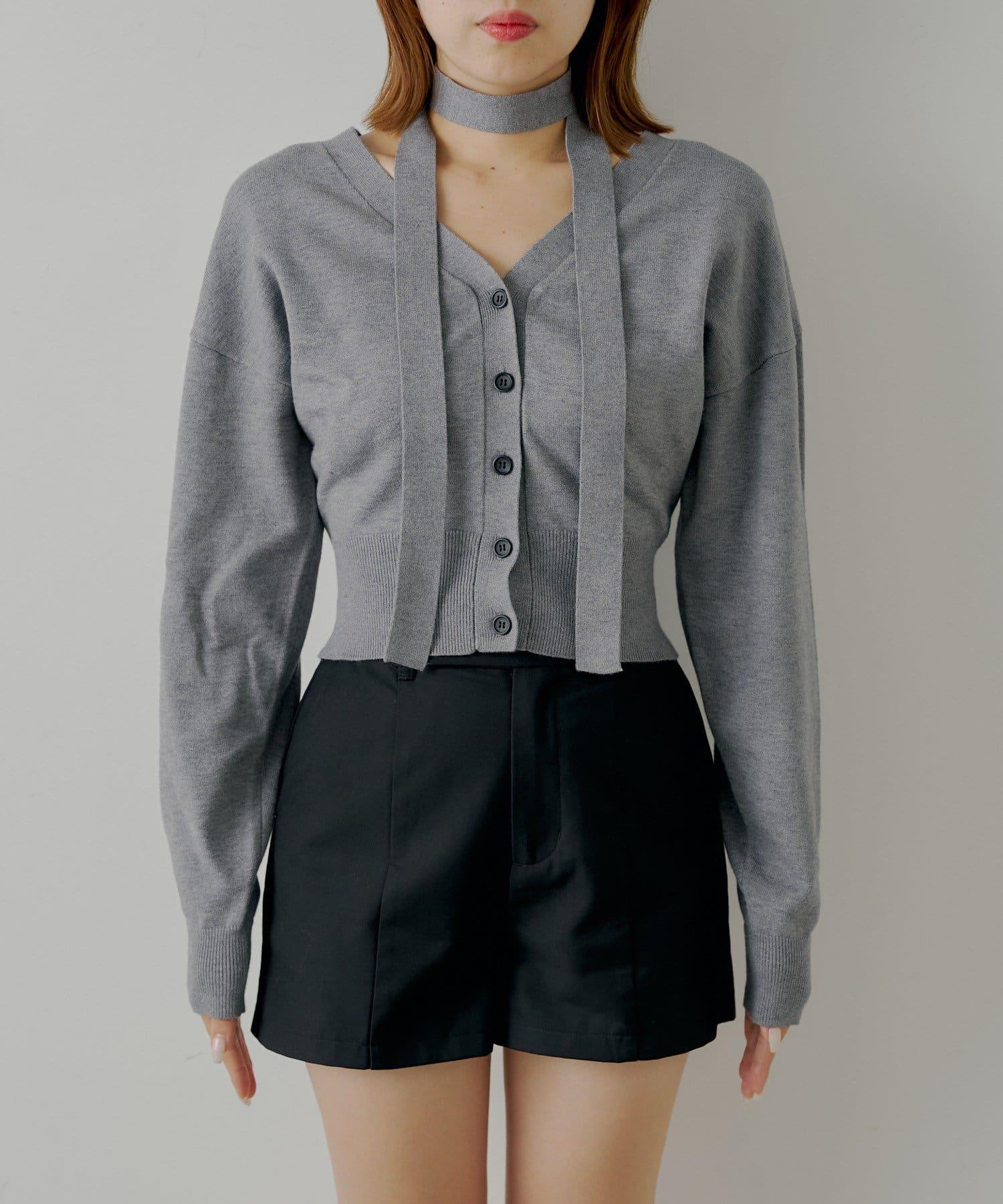 小巧的 V 形針織衫配以領帶,彰顯優雅成人的可愛氣質!