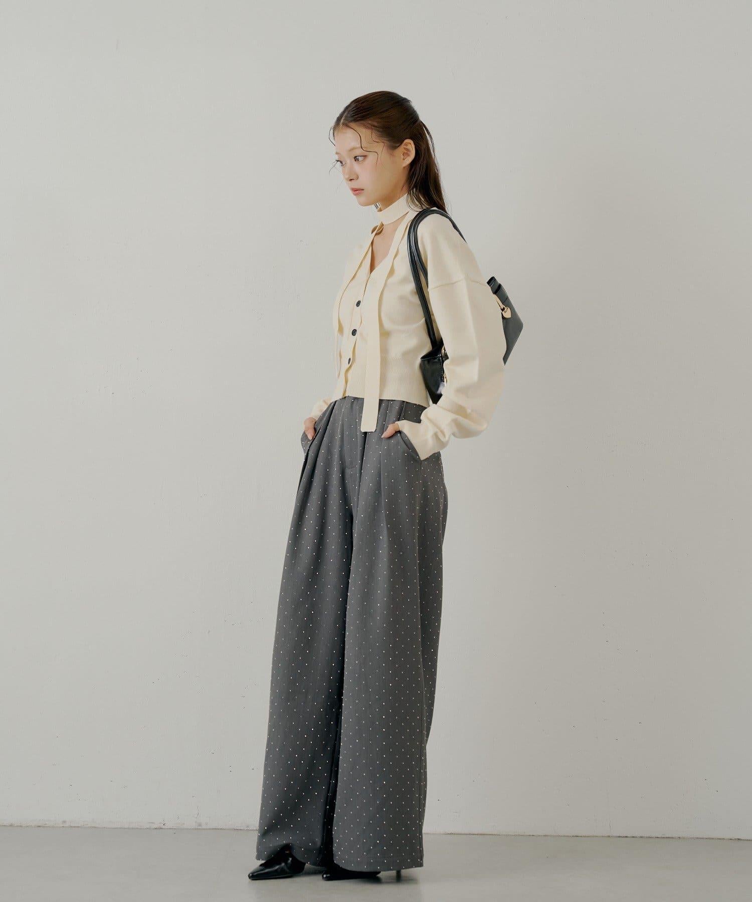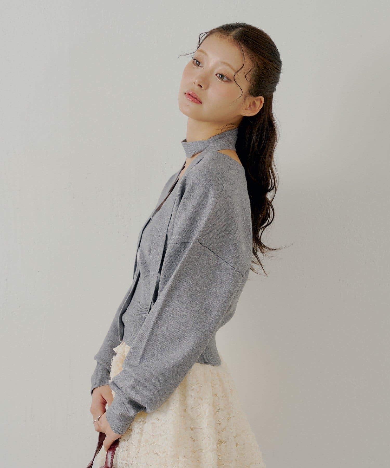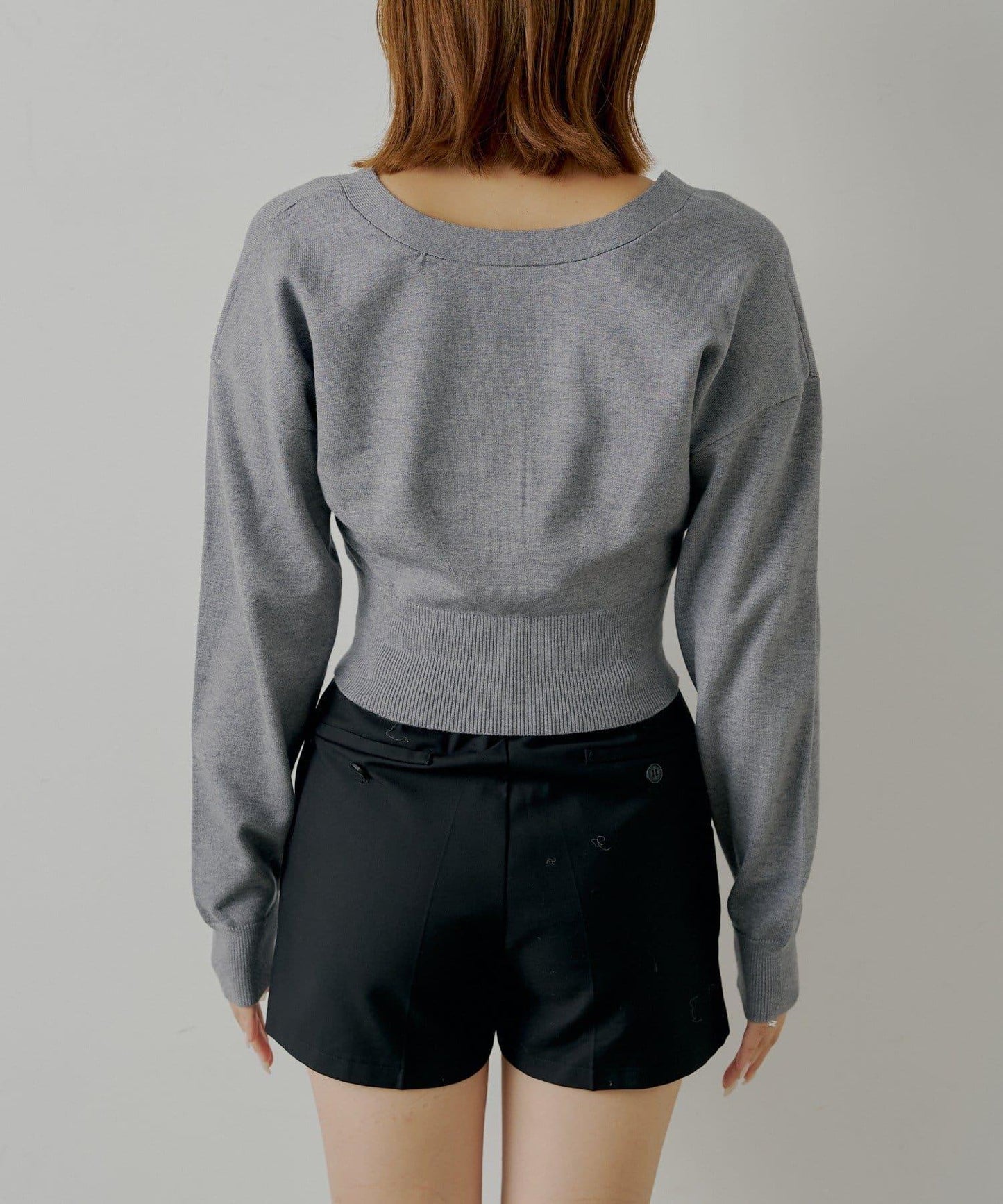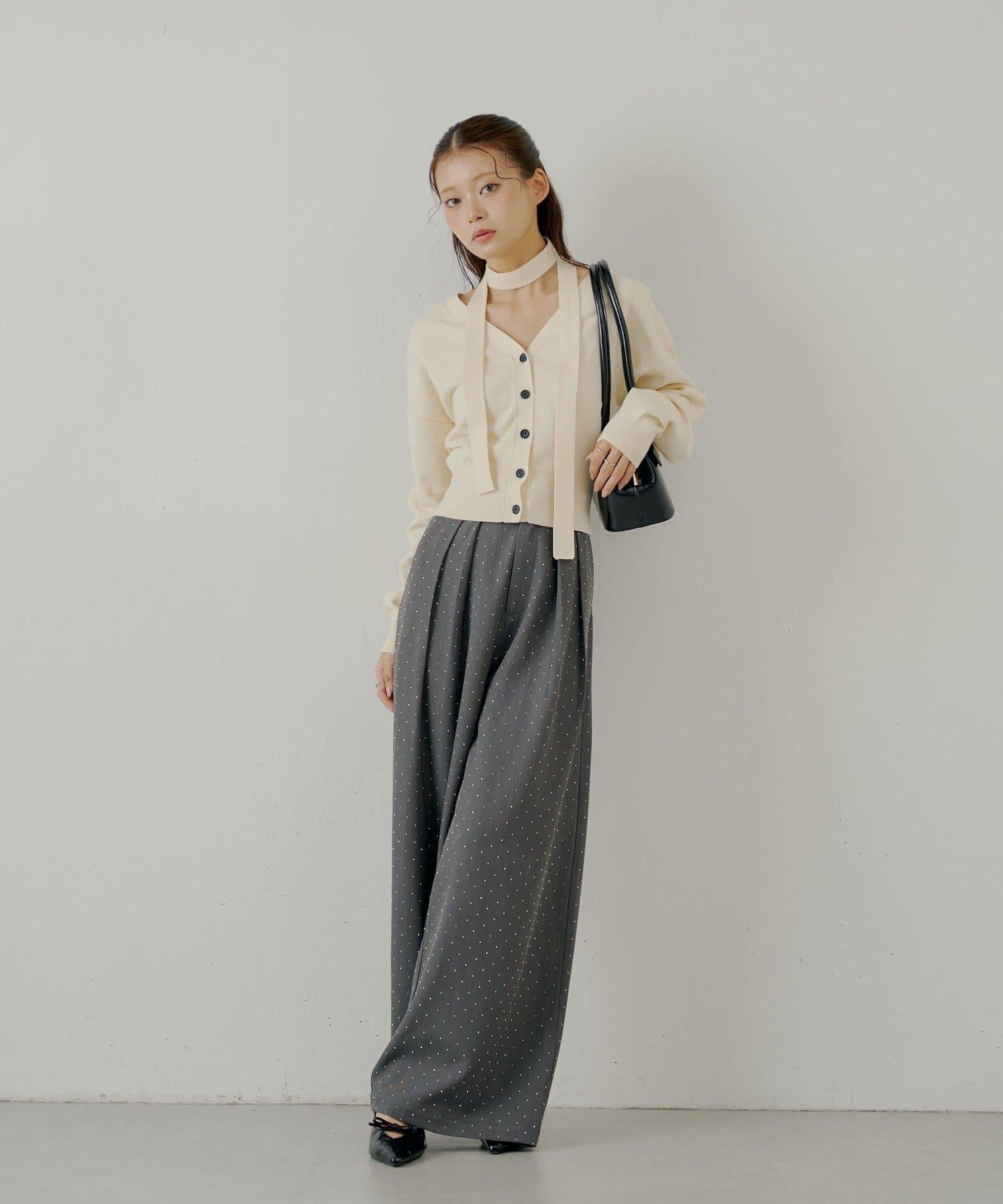 小巧的 V 形針織衫配以領帶,彰顯優雅成人的可愛氣質!