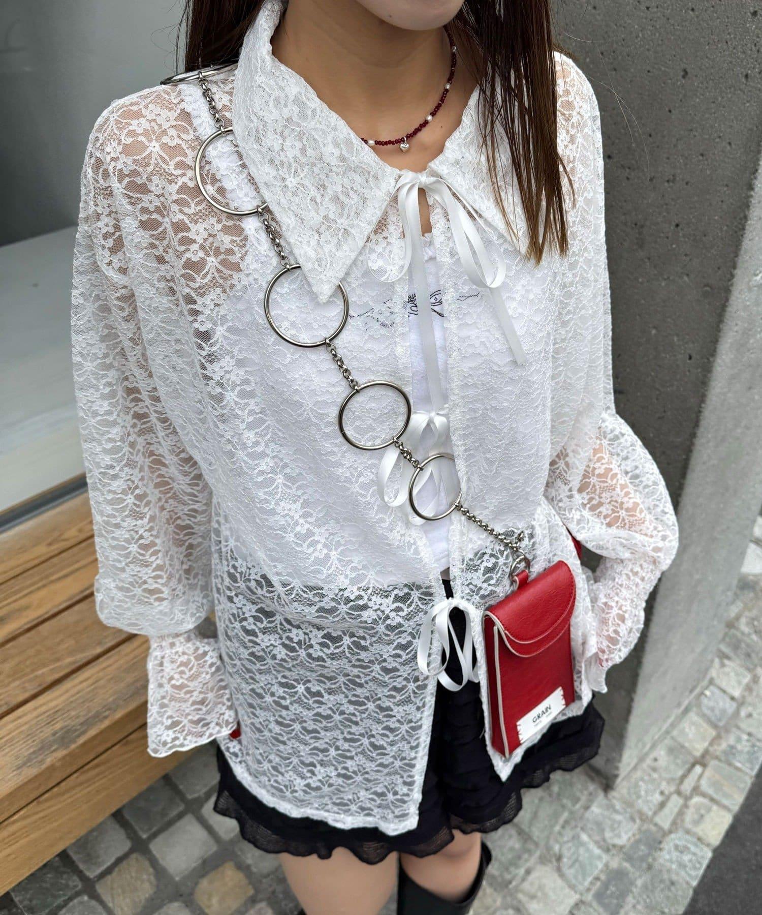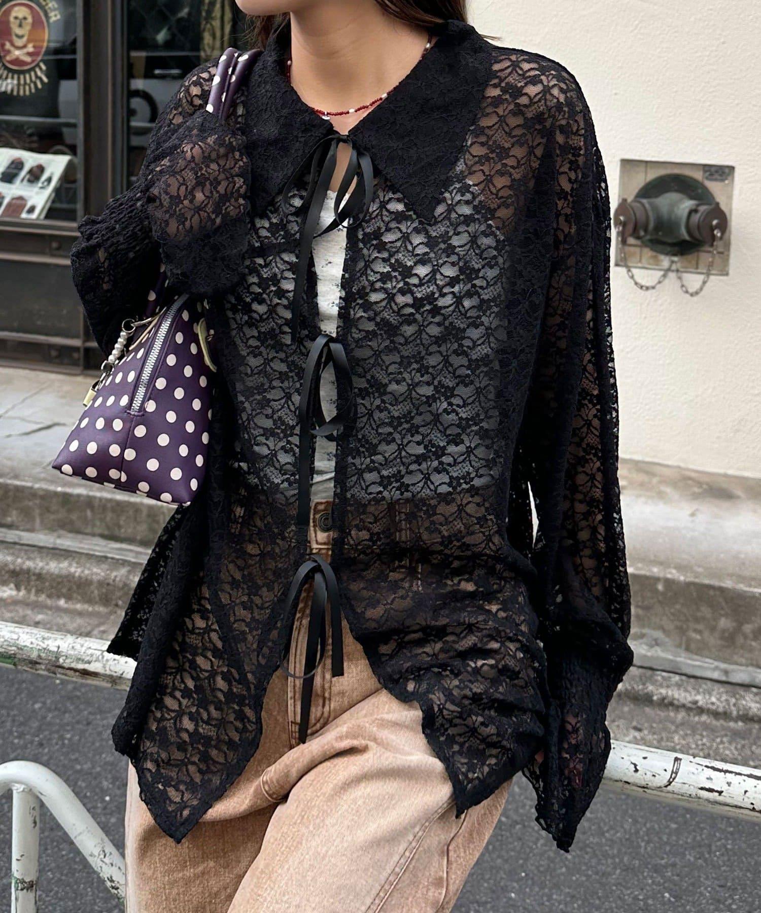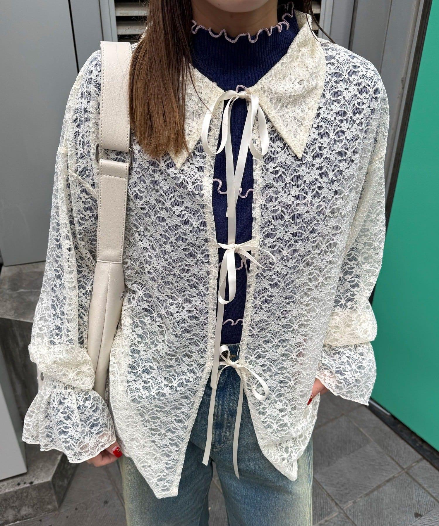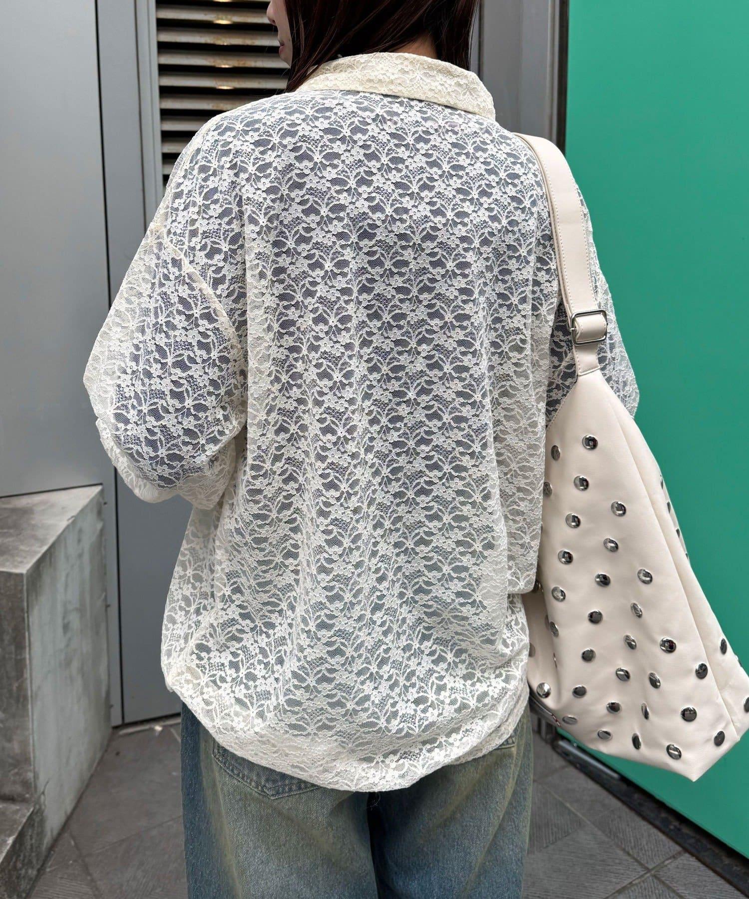 精緻蕾絲剪裁的蕾絲襯衫氣場十足。