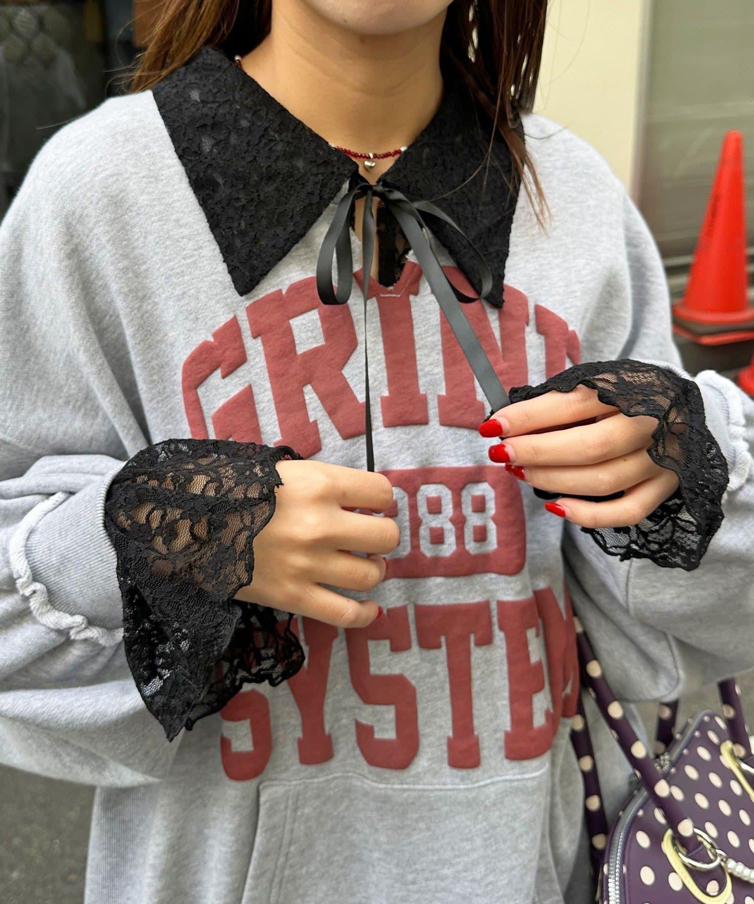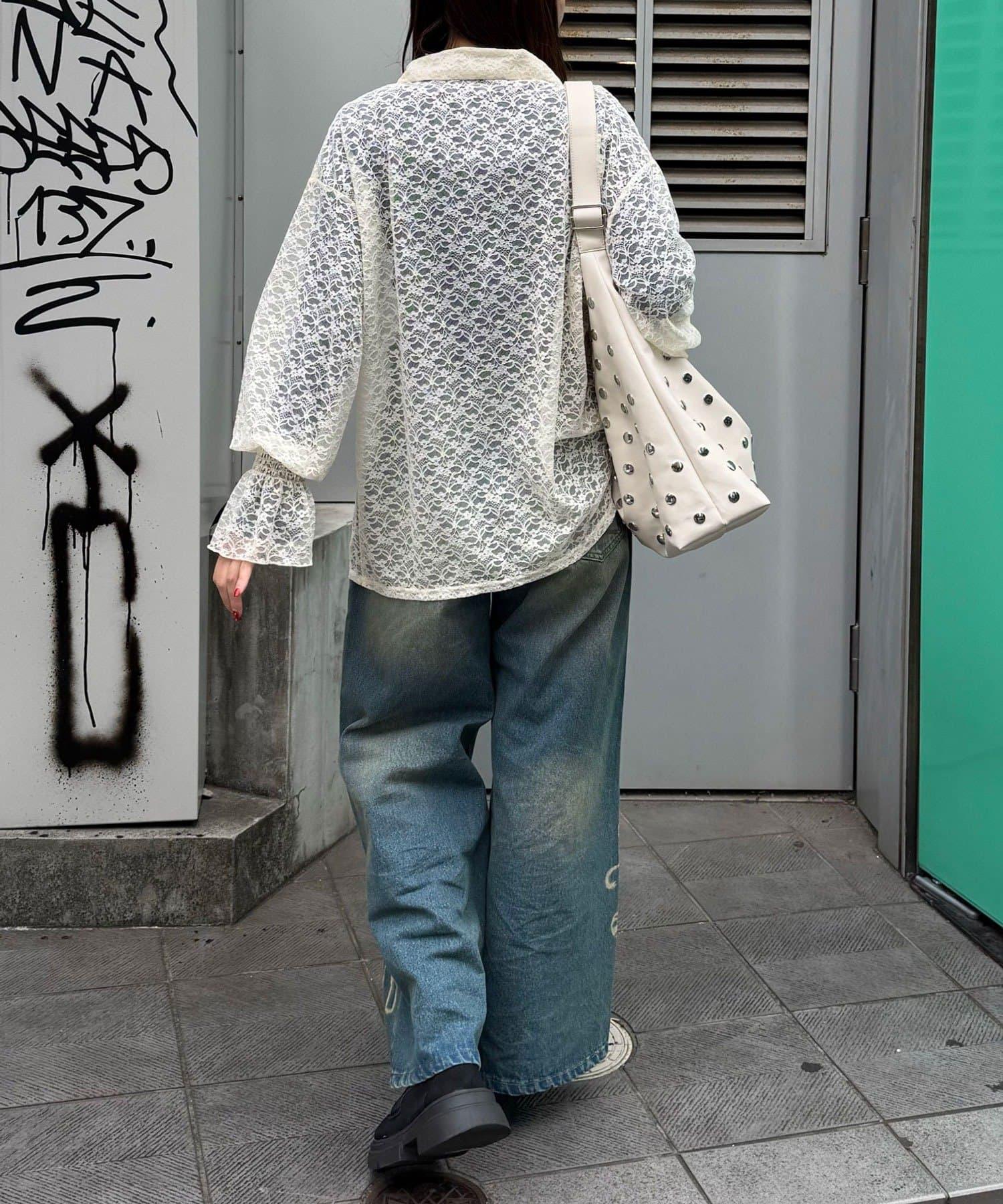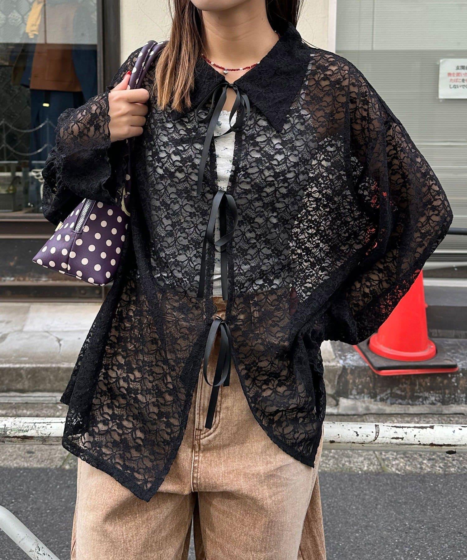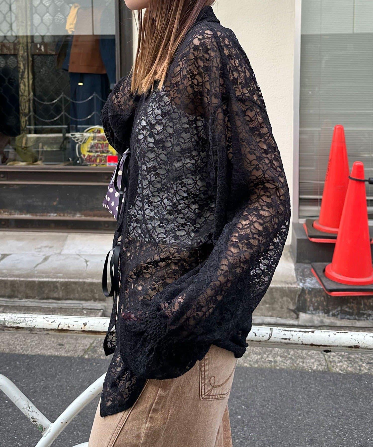 精緻蕾絲剪裁的蕾絲襯衫氣場十足。