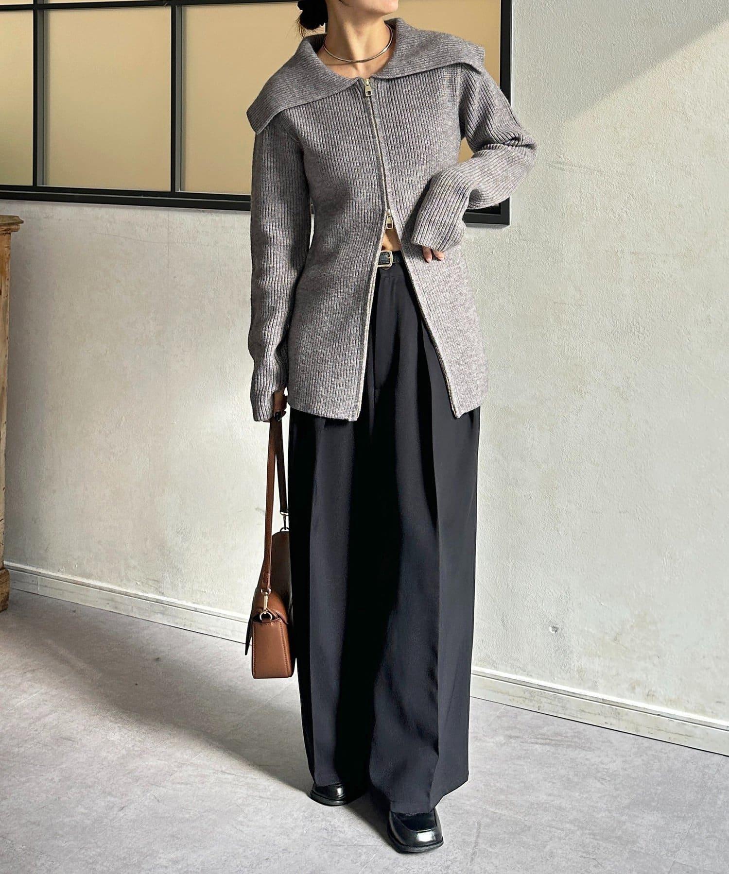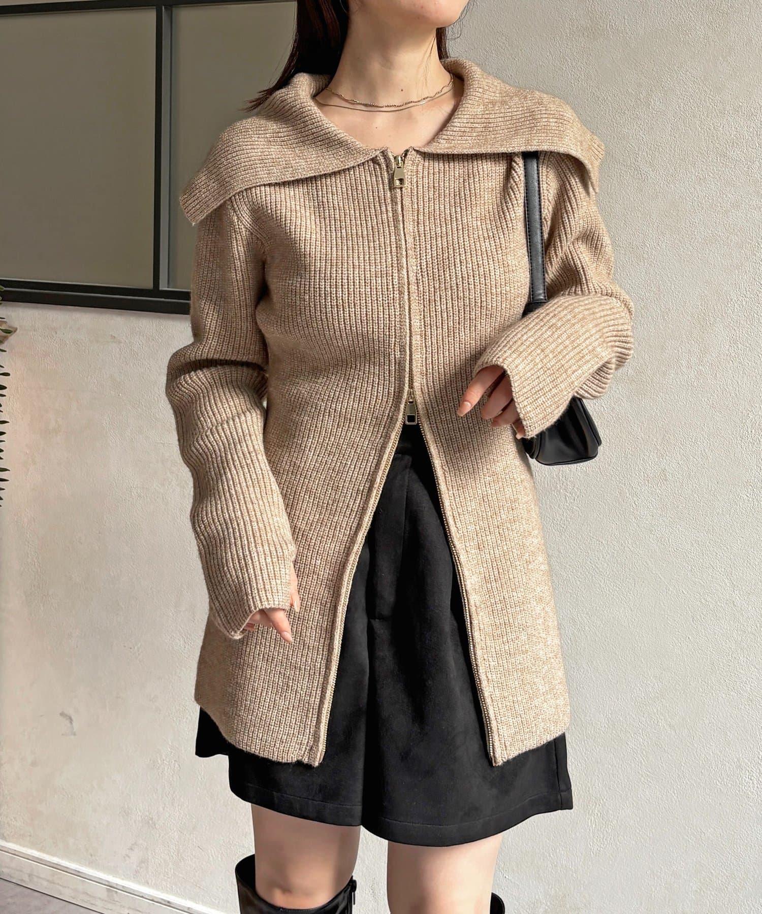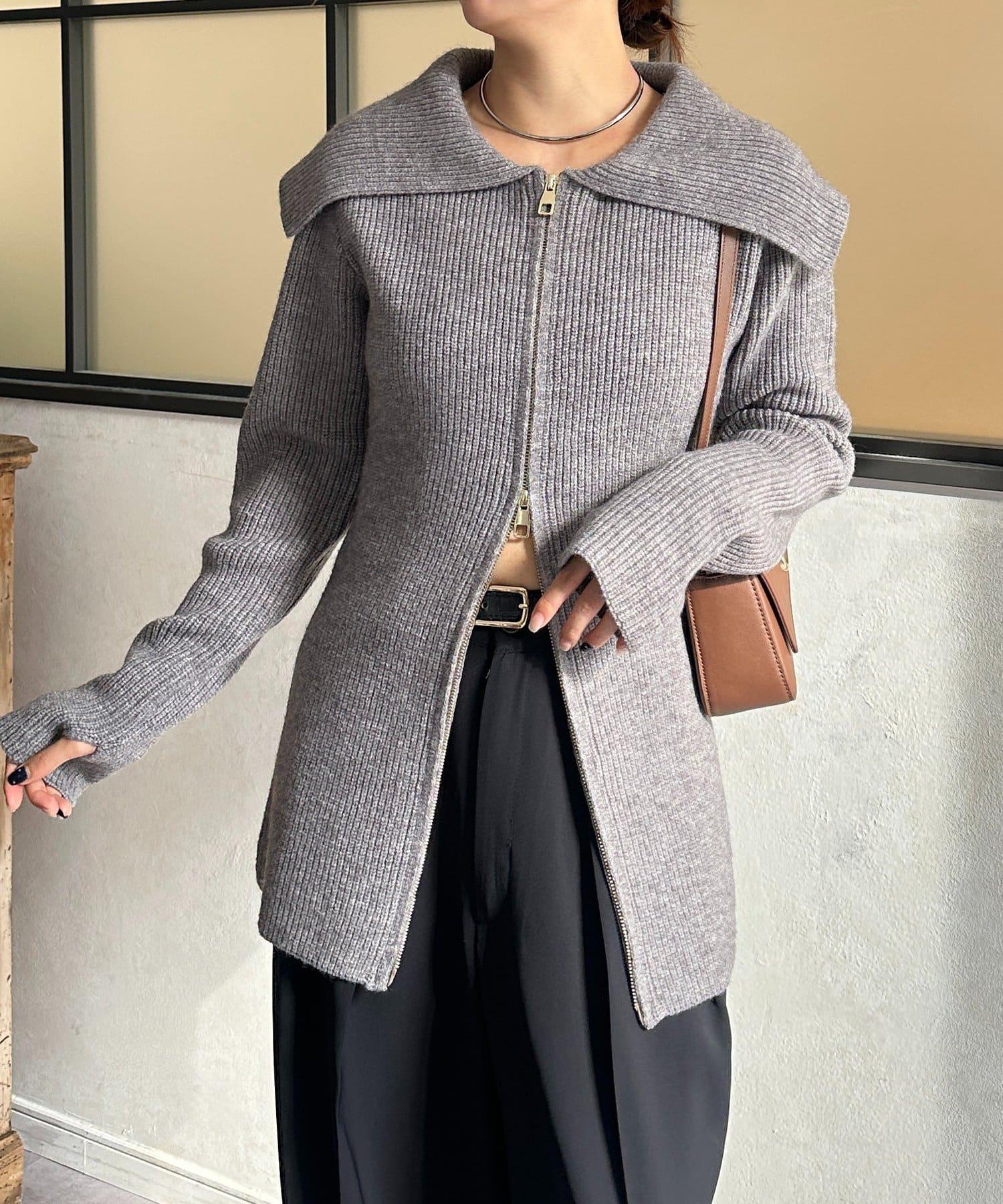 將它疊穿在高領上衣上,稍微拉開 W 形拉鍊,就能營造出寬鬆的造型、