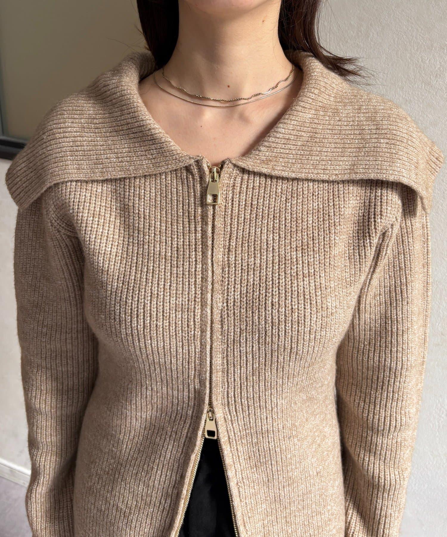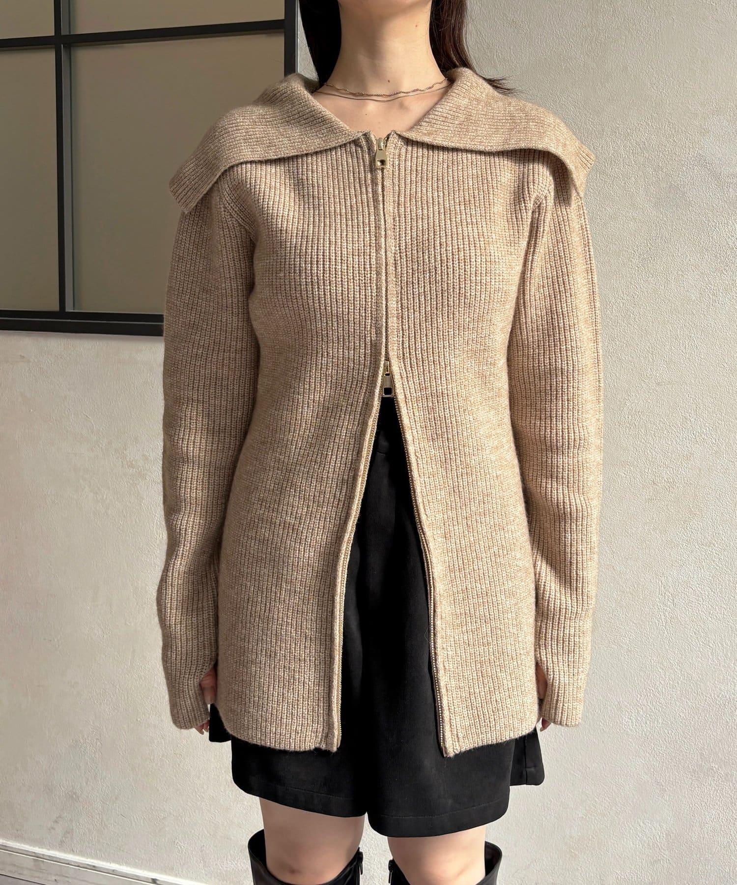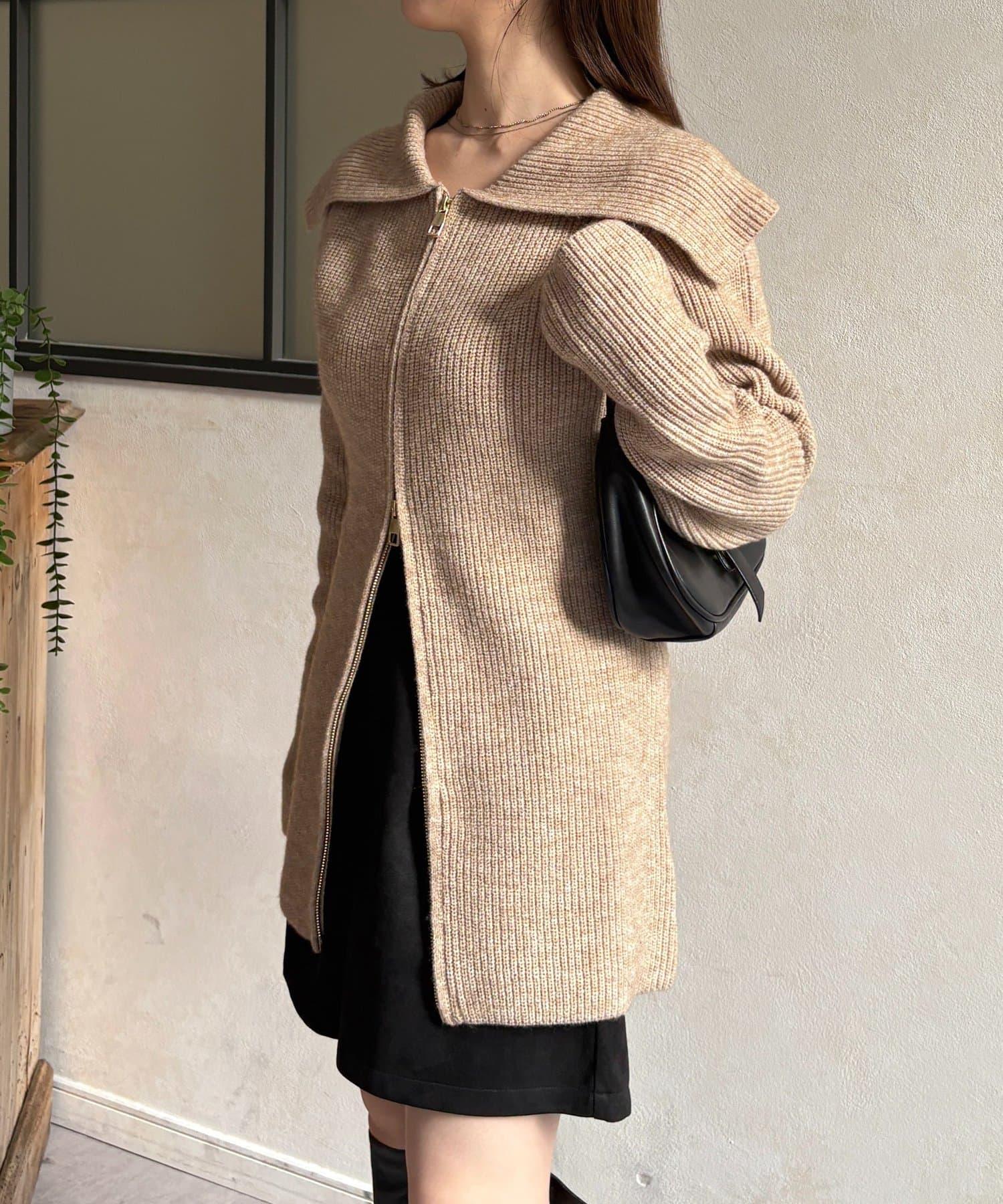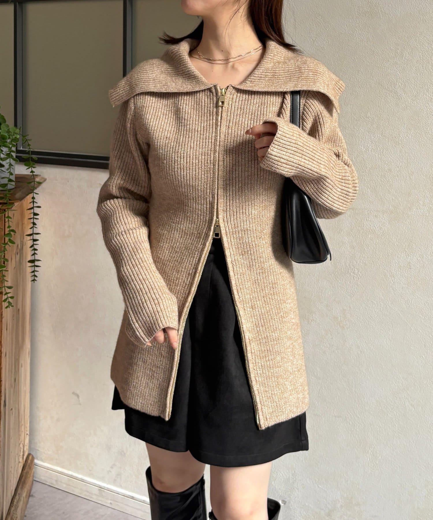 將它疊穿在高領上衣上,稍微拉開 W 形拉鍊,就能營造出寬鬆的造型、