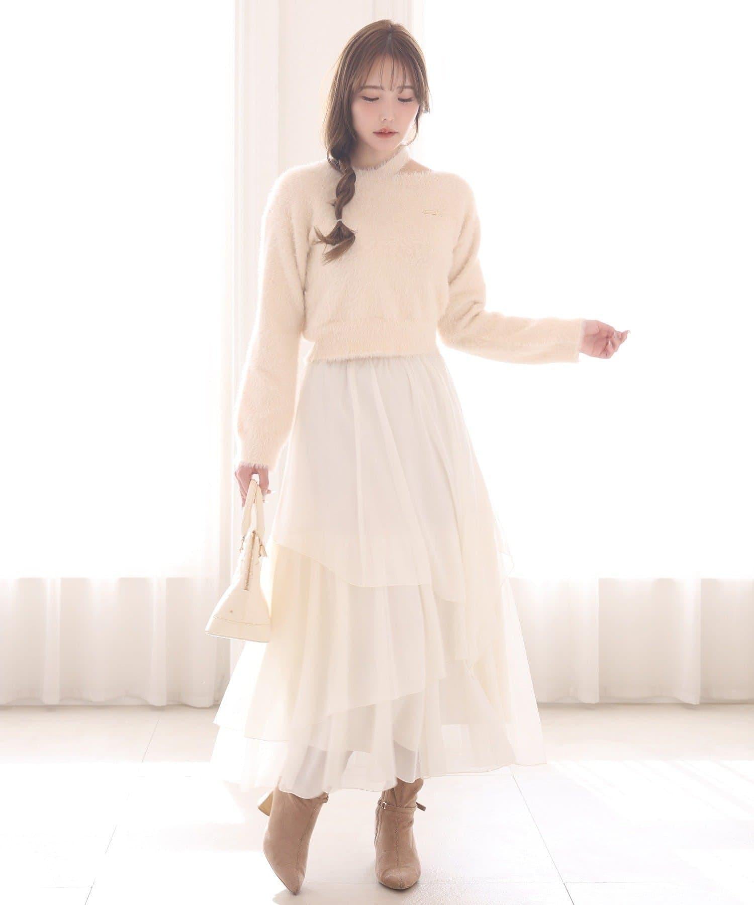 針織衫的肩部採用微妙的剪裁設計,恰到好處地展現出肌膚的光澤。