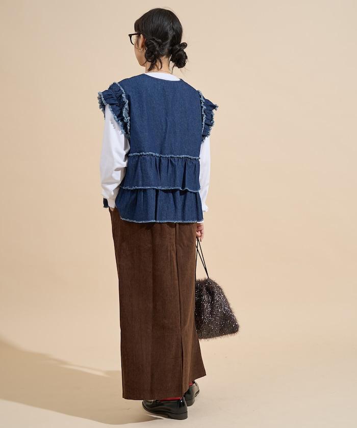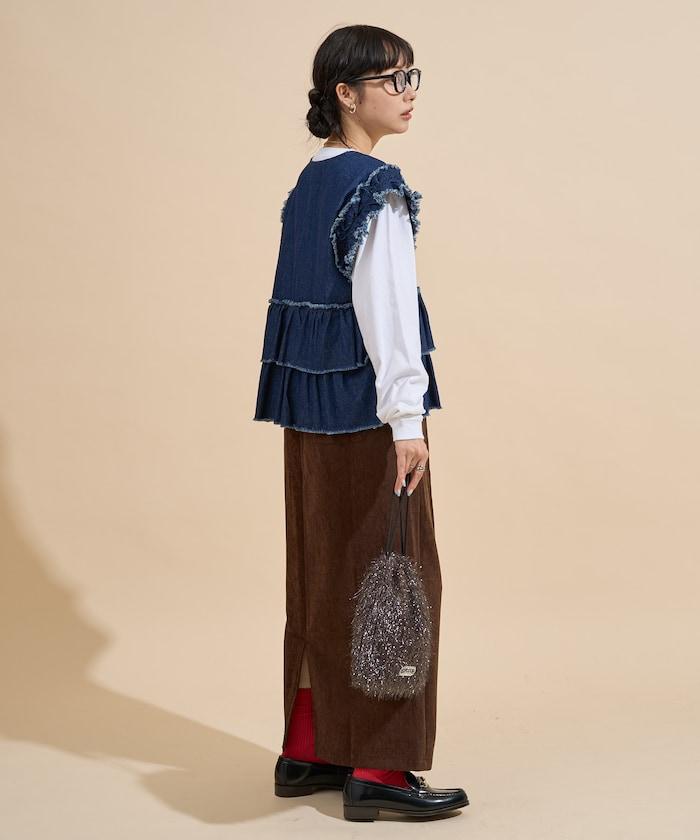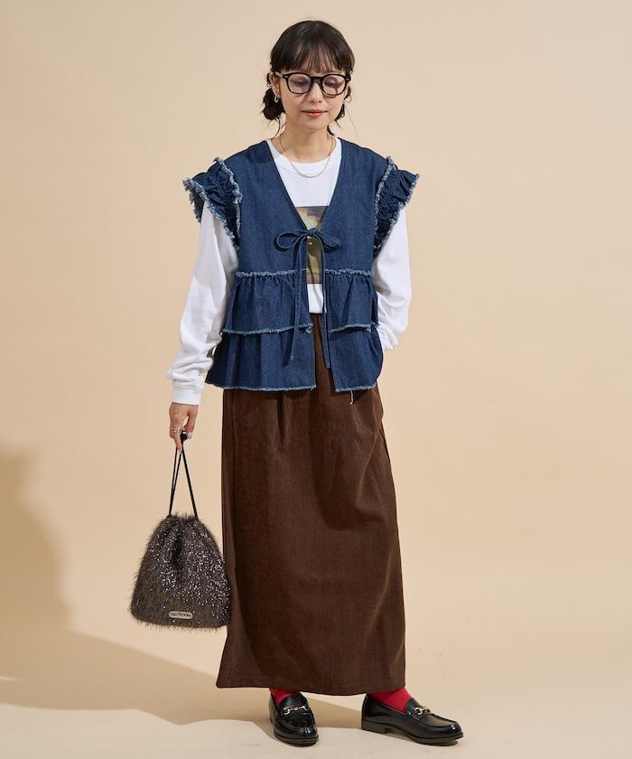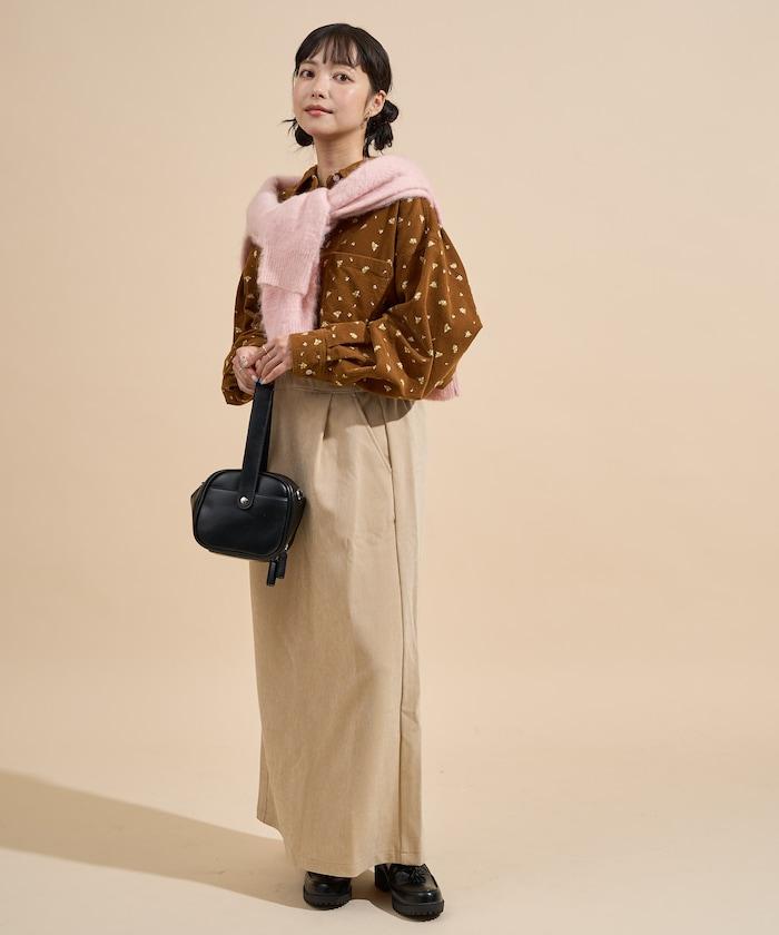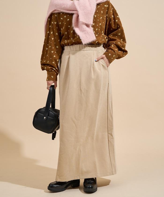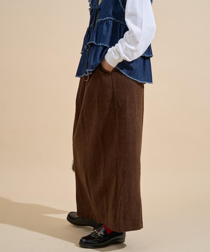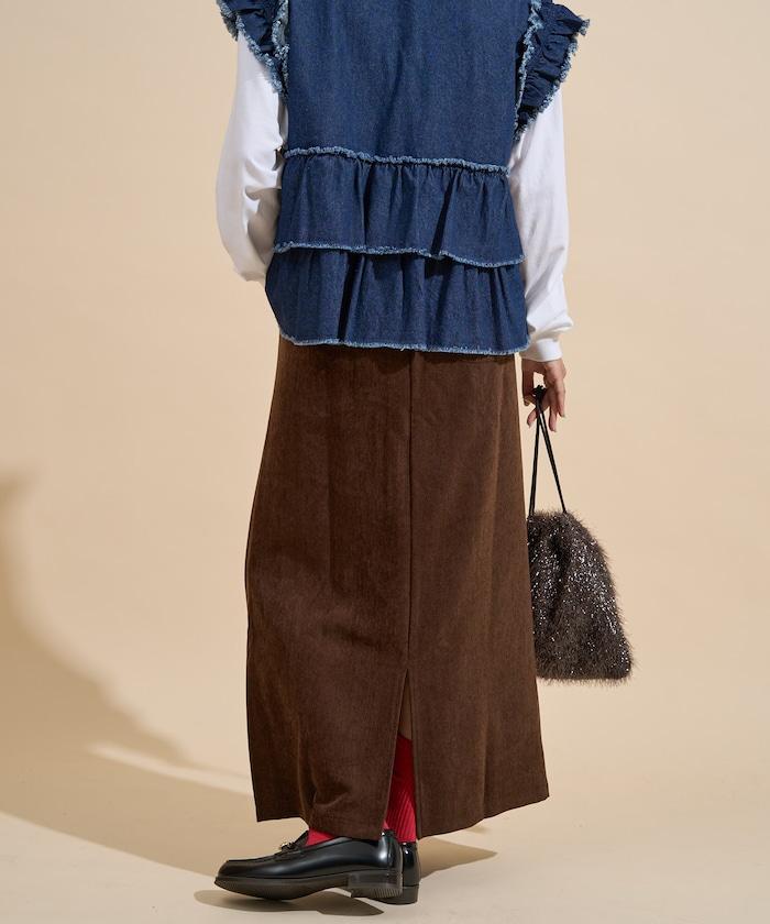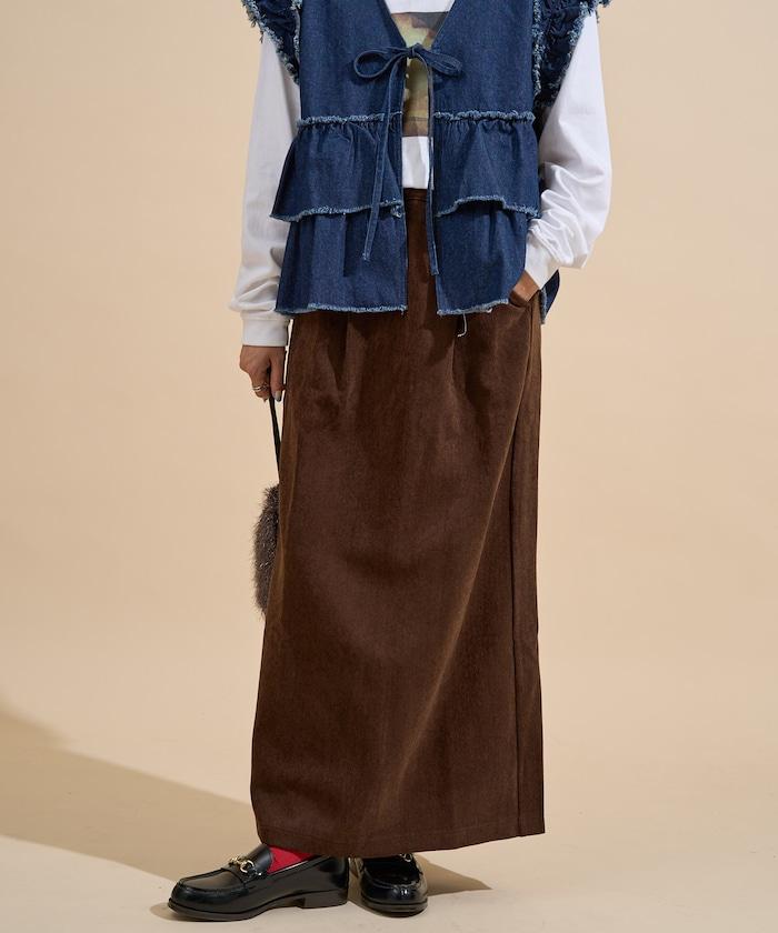 平紋燈芯絨半身裙/燈芯絨長款半身裙