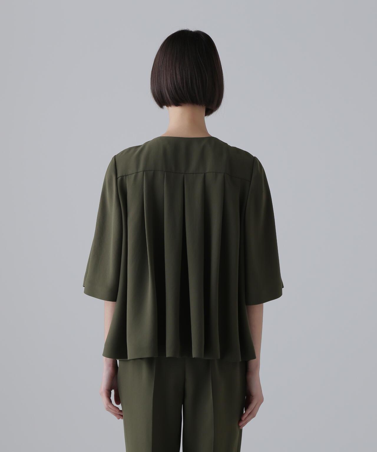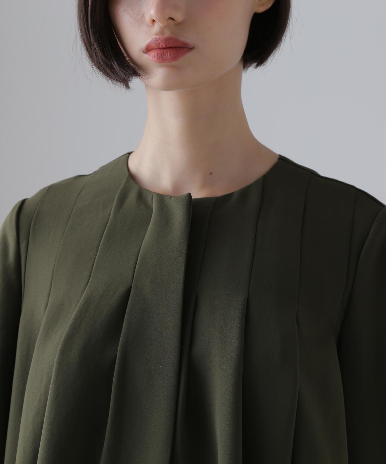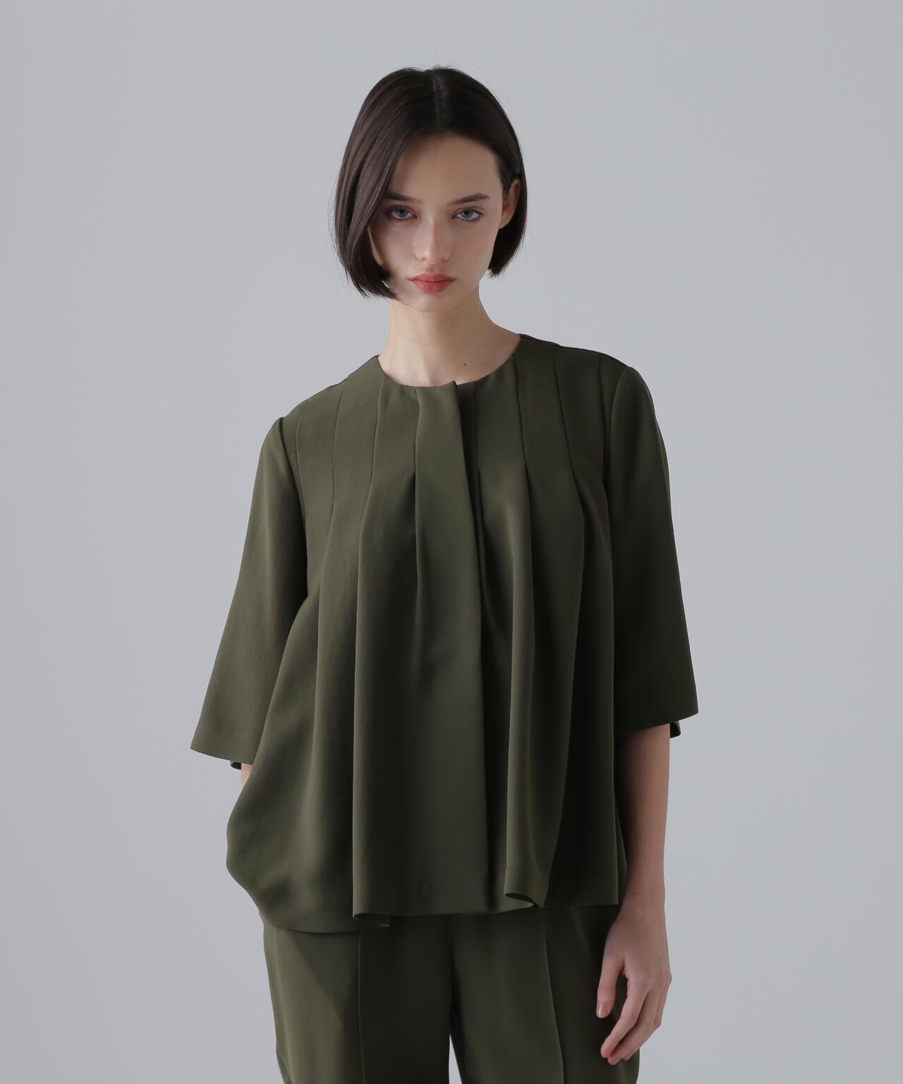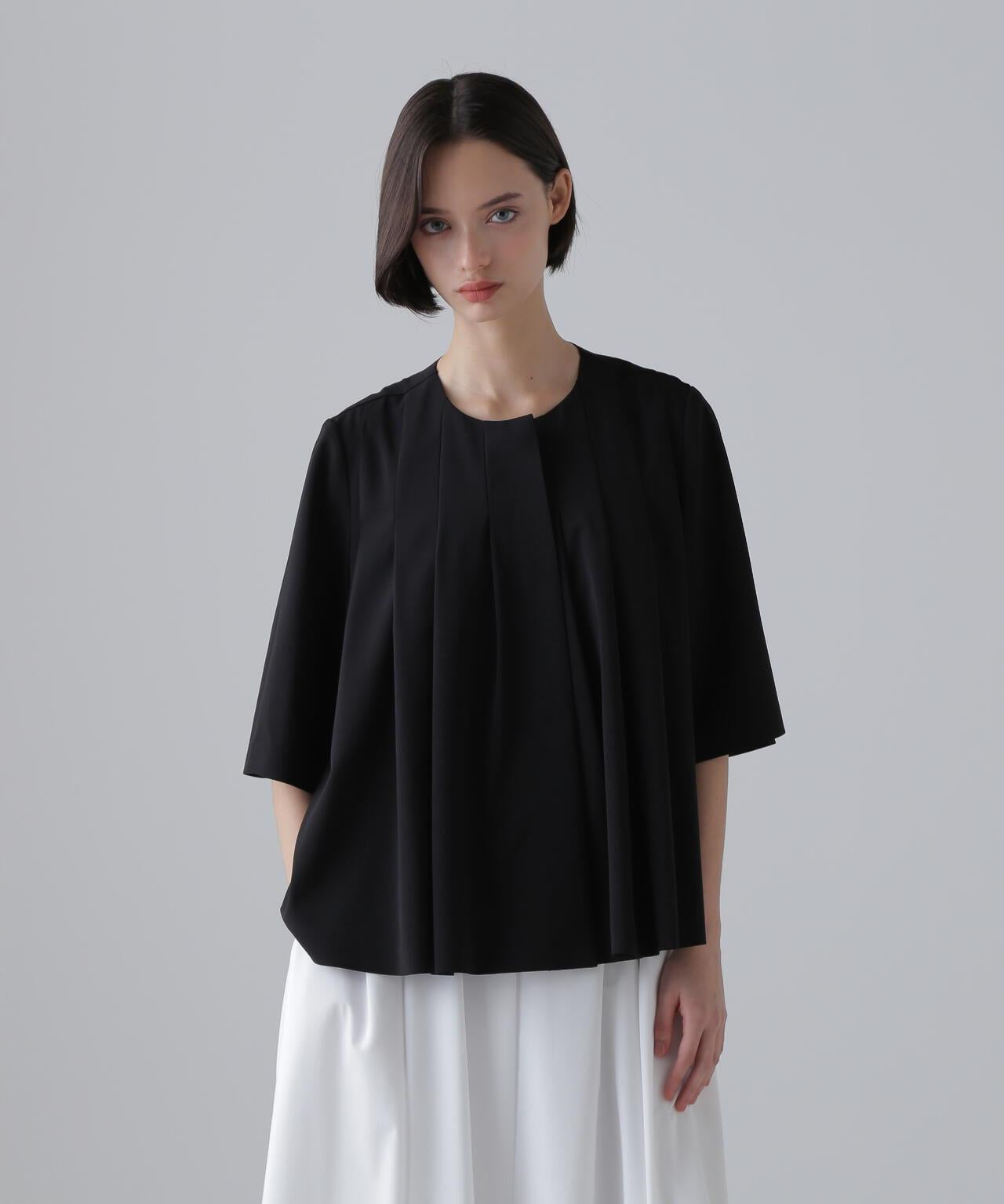 乾爽喬其紗夾克這件無領夾克由合成織物製成,觸感輕盈乾爽。大膽的褶襉設計令人印象深刻。可搭配同材質長褲(貨號:531-5230605)。從通勤到小型正式場合,這款單品都能輕鬆應對。採用聚酯纖維製成的輕柔彈力面料剪裁,觸感輕盈。