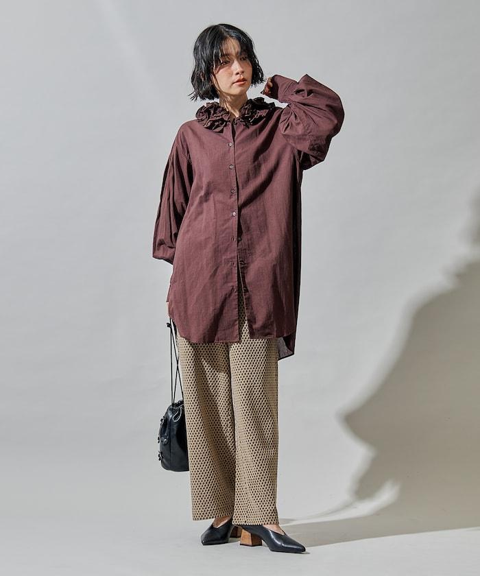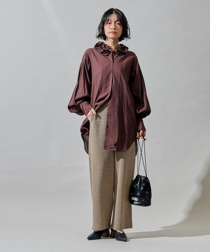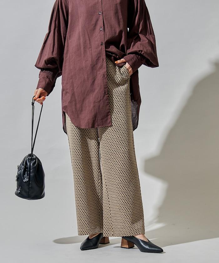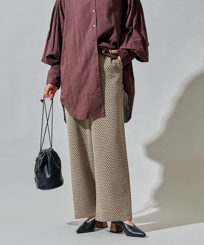 寬鬆提花長褲,圖案精緻優雅。