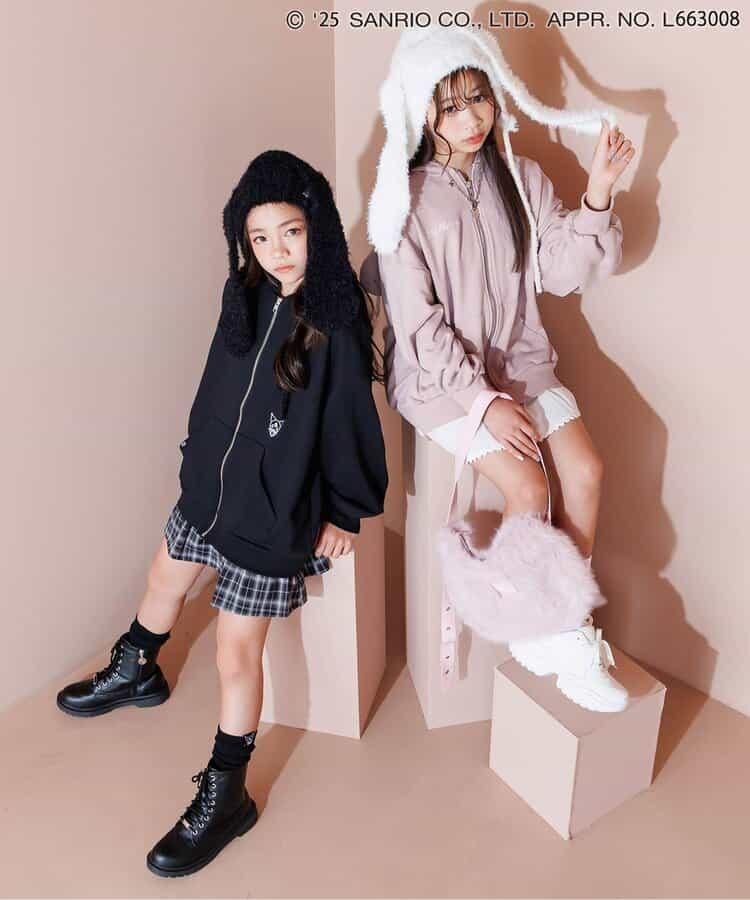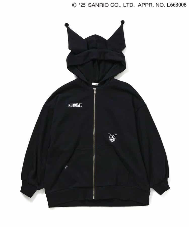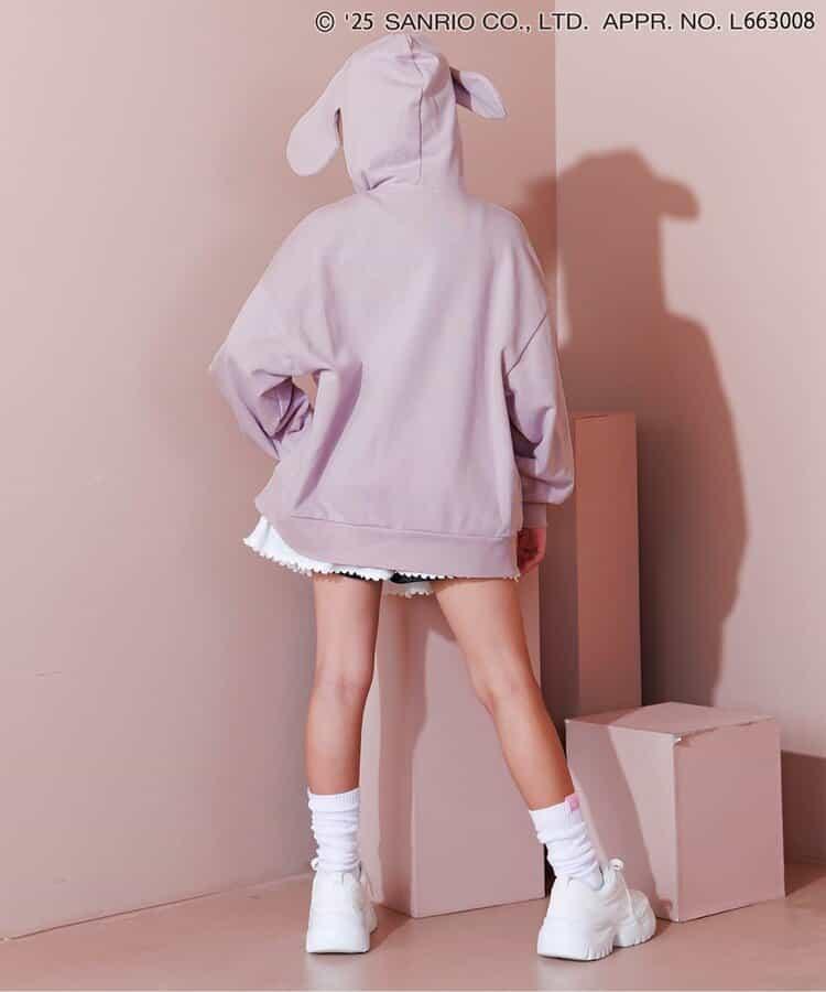 兜帽上可愛的耳朵印有 My Melody 和 Kuromi 的圖案。