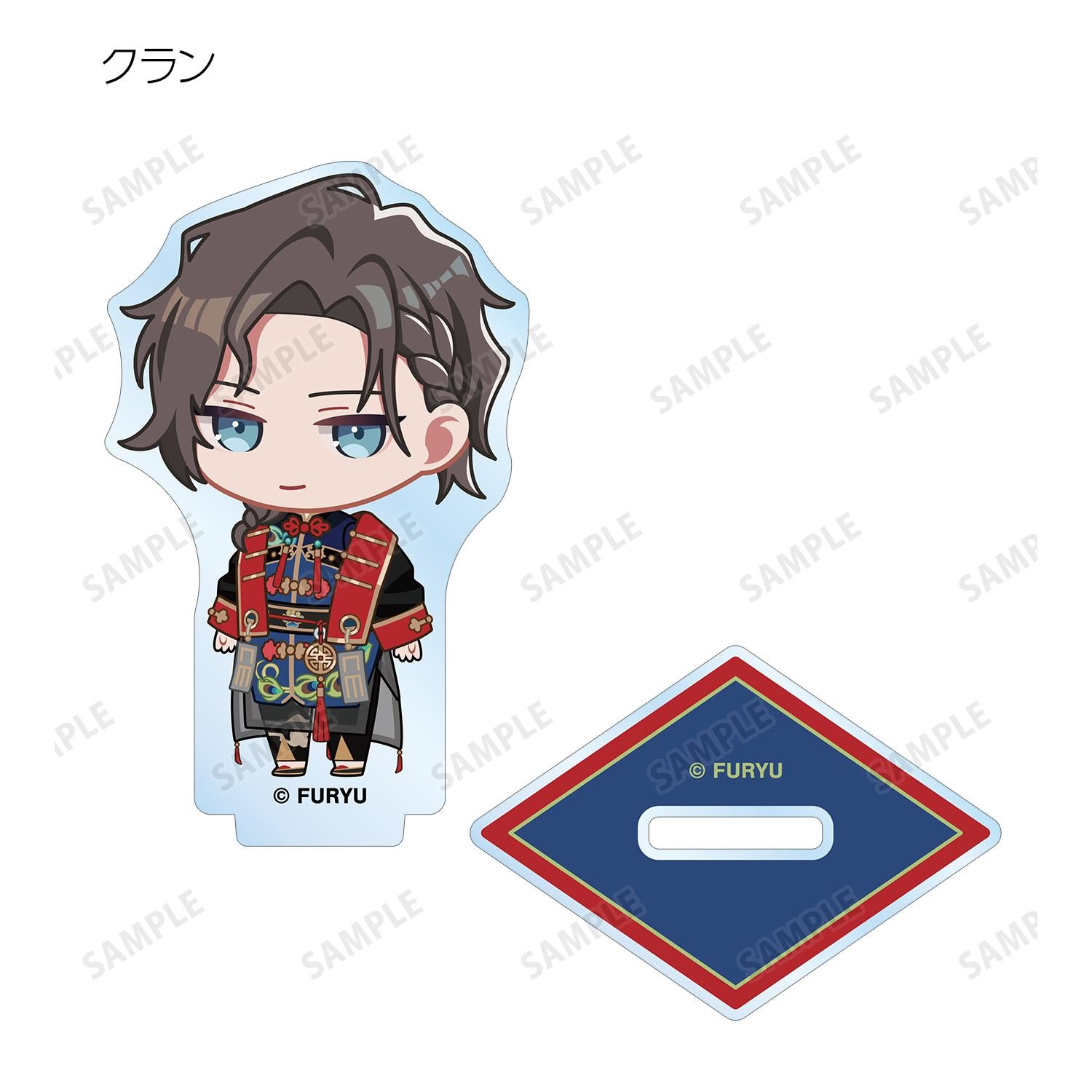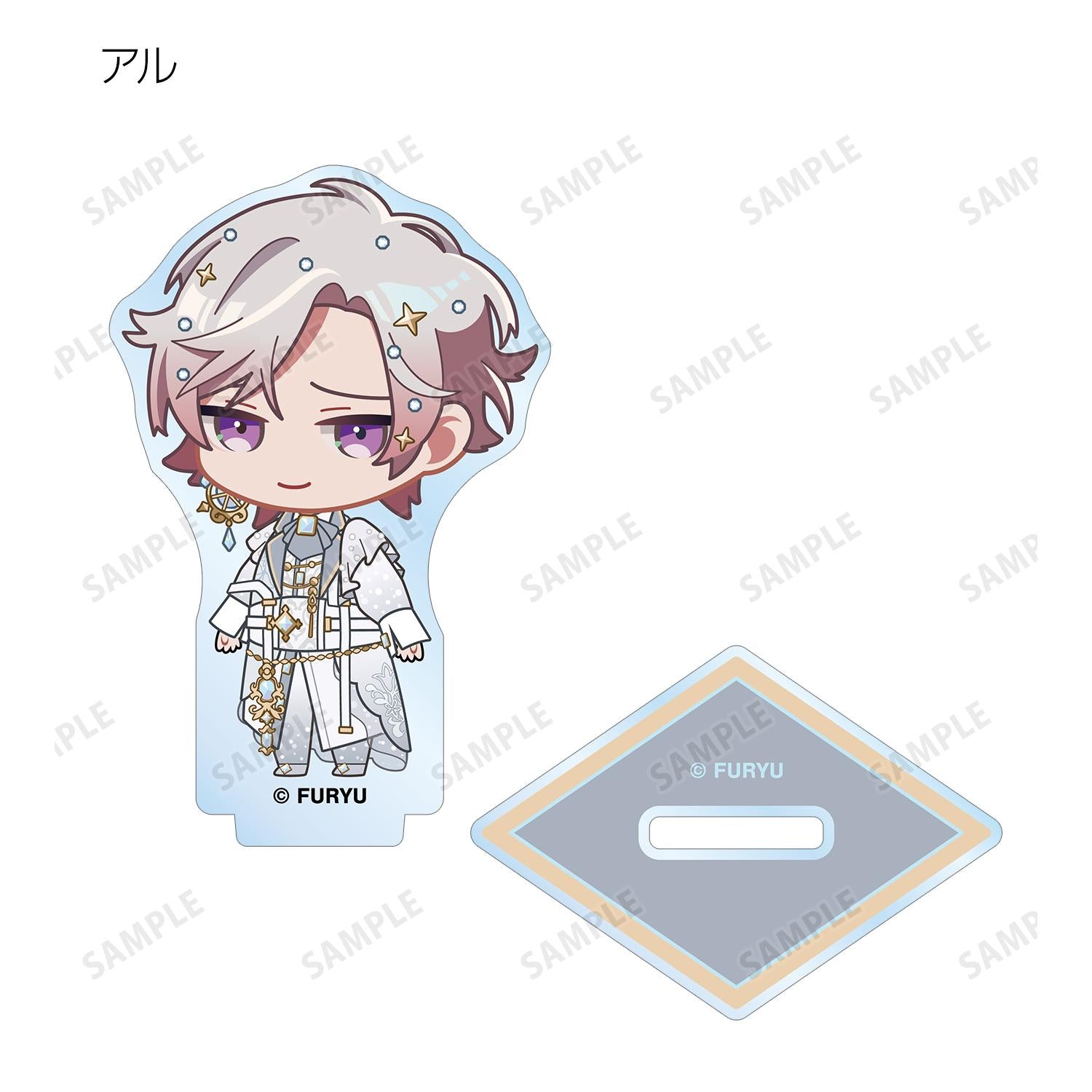 亞克力支架上的插圖分別是《湖邊的民俗》中的尤金、米格爾和薩盧斯,《讓夢在明亮的夜宴上綻放》中的阿姆魯、克蘭和瑪尼,以及《鍊金娃娃夢的永恆》中的澤塔、卡西姆和阿爾。