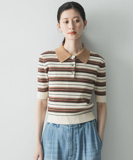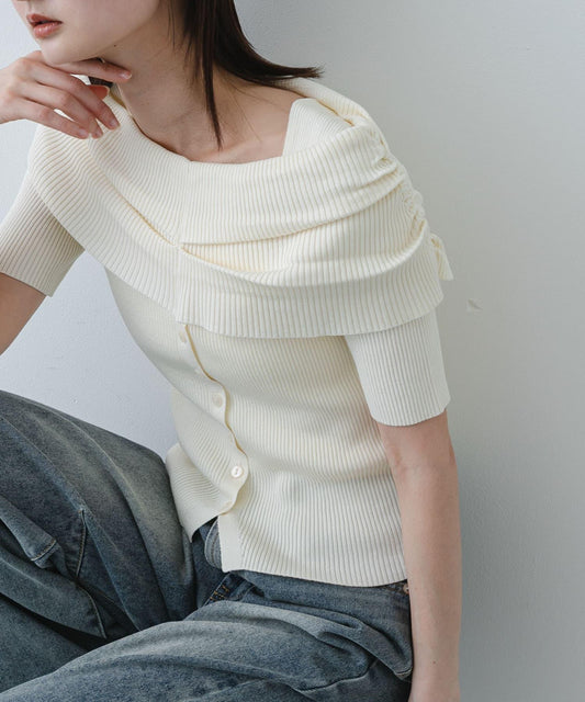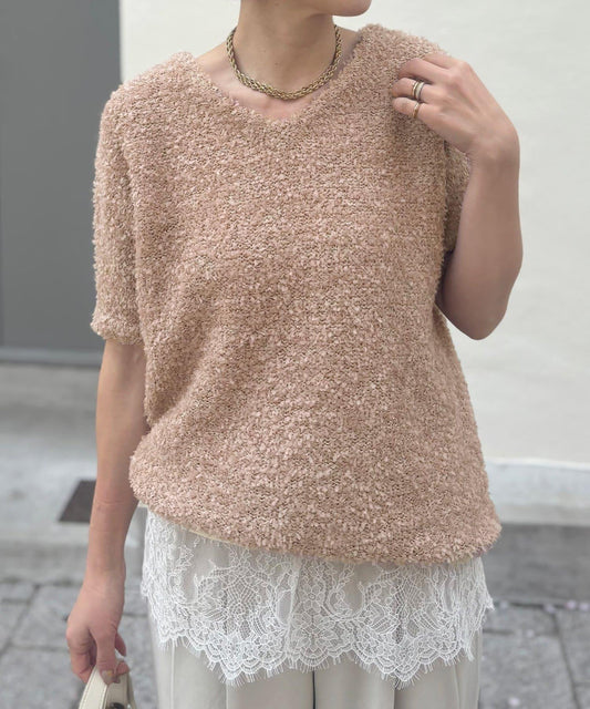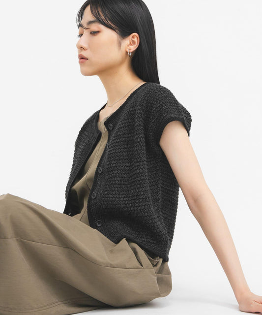 與同材質的短袖針織衫搭配成套穿著,會給人更精緻的印象。