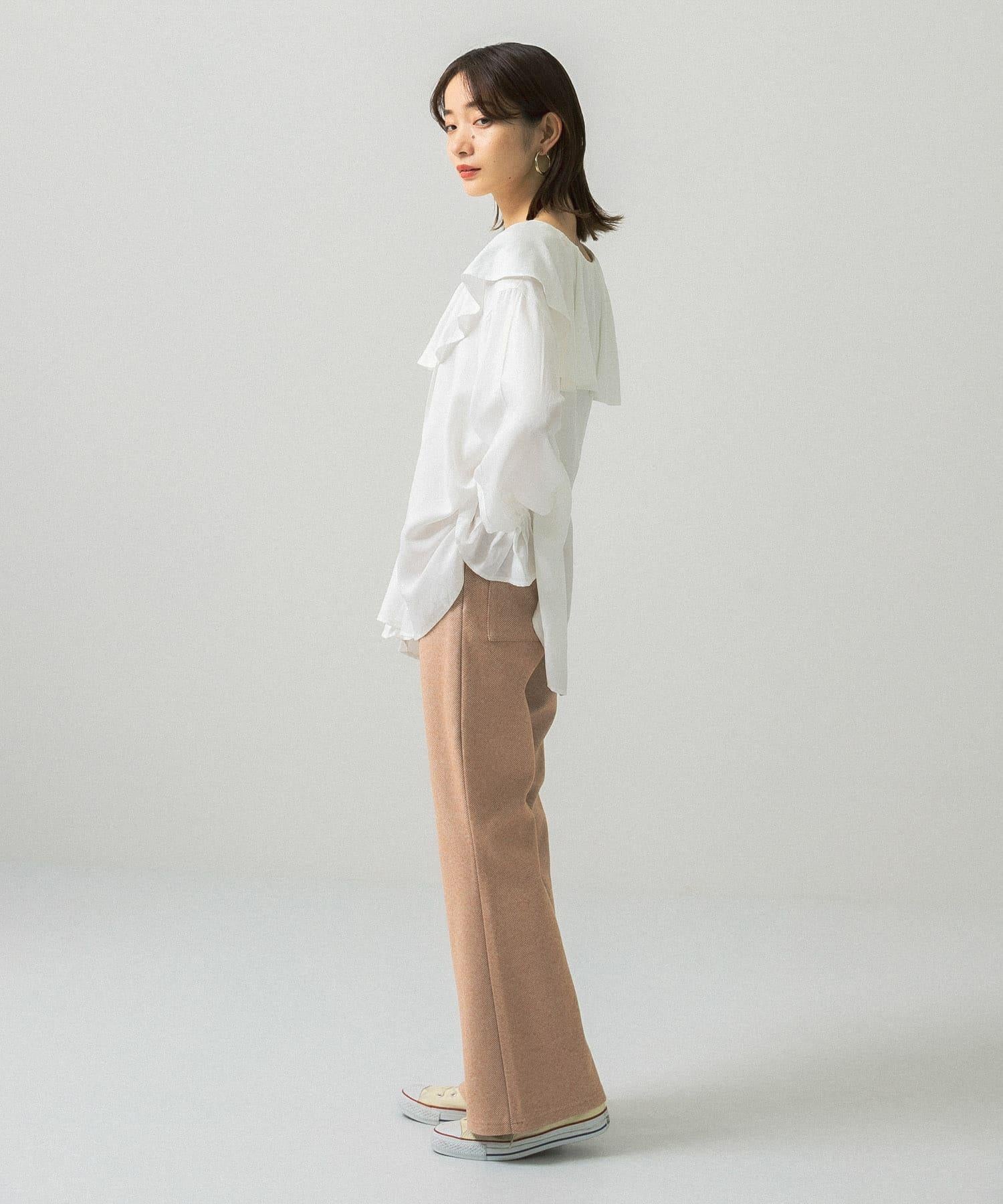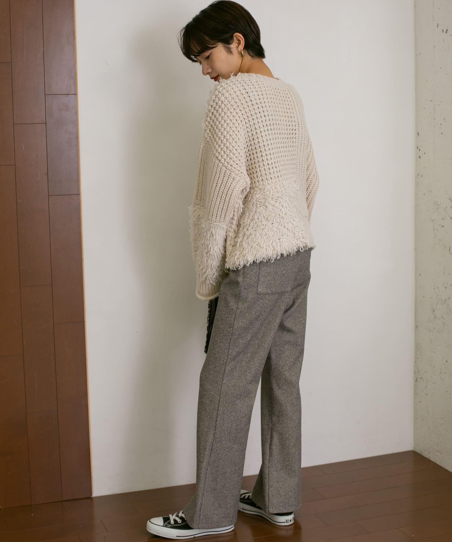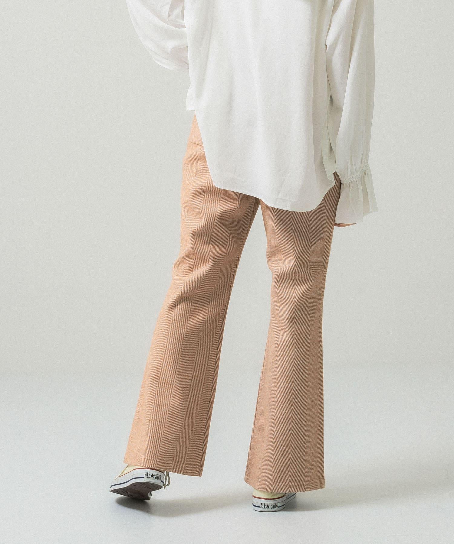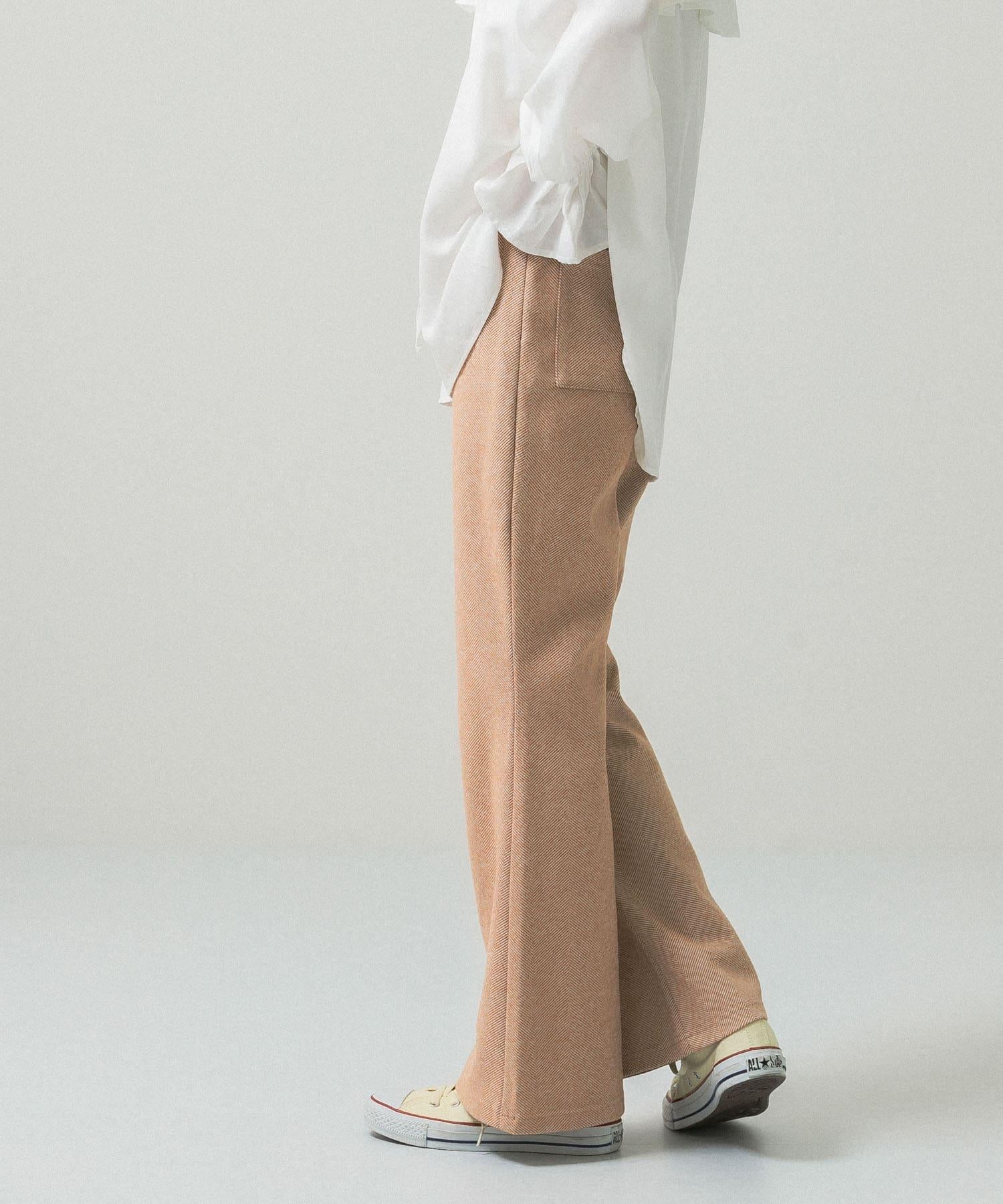 人字形花紋喇叭褲,採用加厚羊毛剪接面料製成。厚度適中,保暖性極佳。時尚的喇叭廓形也很吸引人,穿起來很整齊。搭配連衣裙或夾克也很時尚,但 KBF 建議搭配寬鬆的針織衫或運動衫。