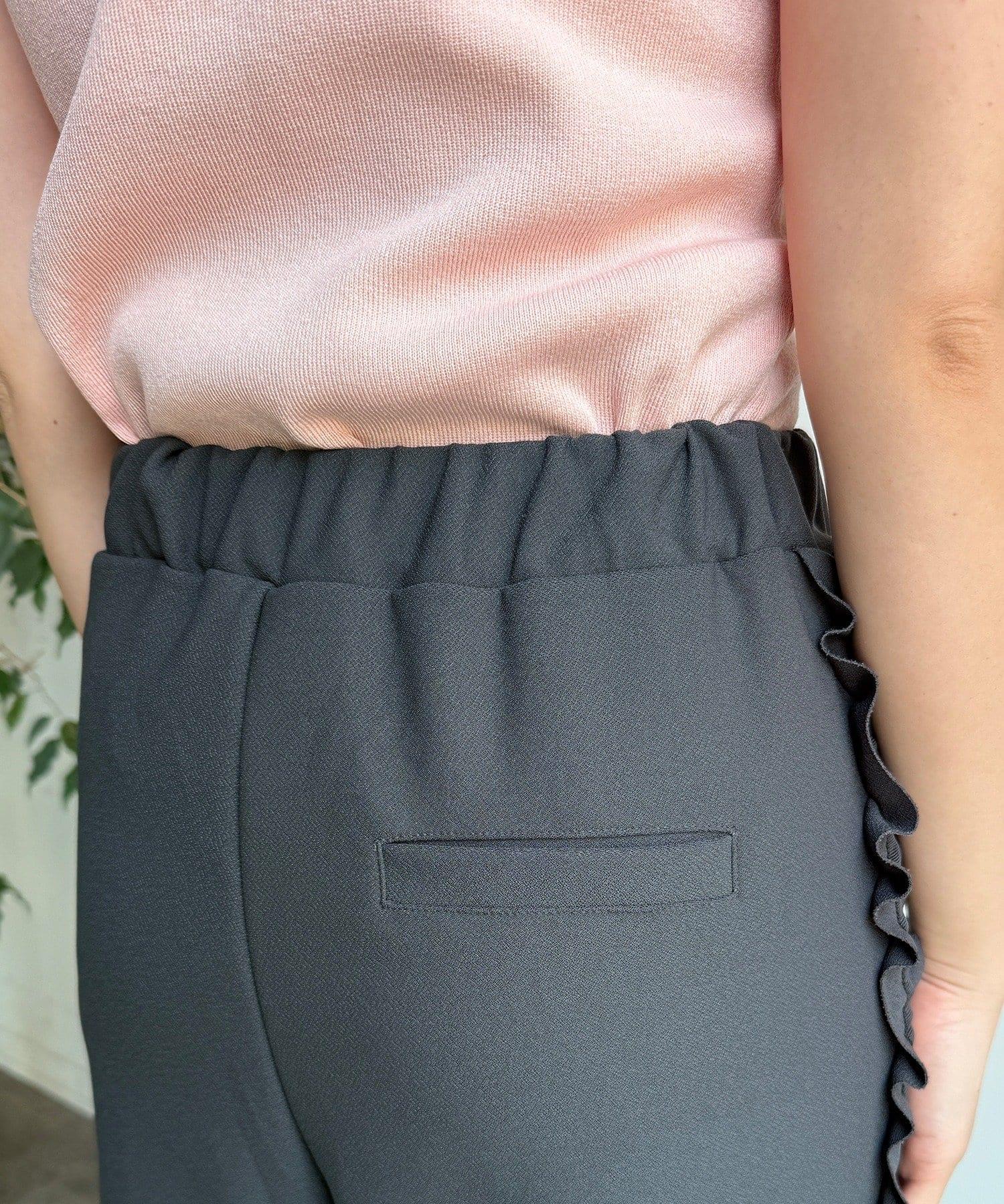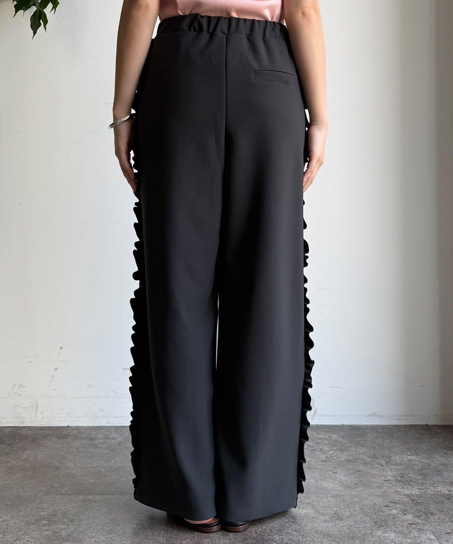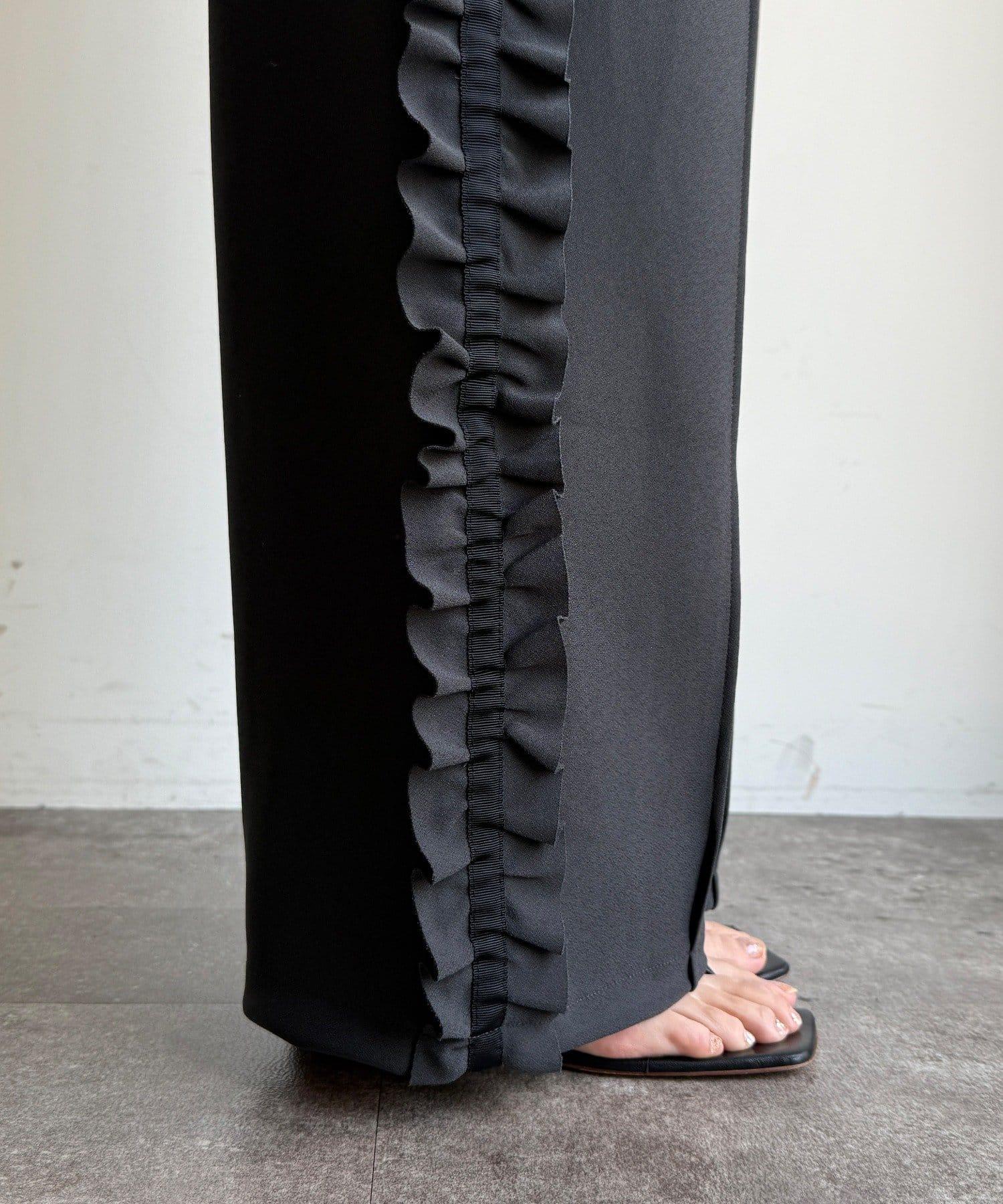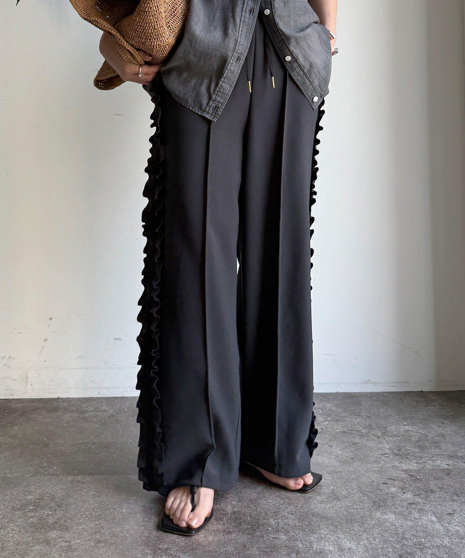 彈力喬其紗側邊荷葉邊褲子(網絡限定)