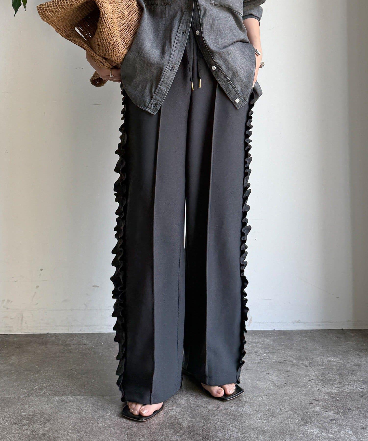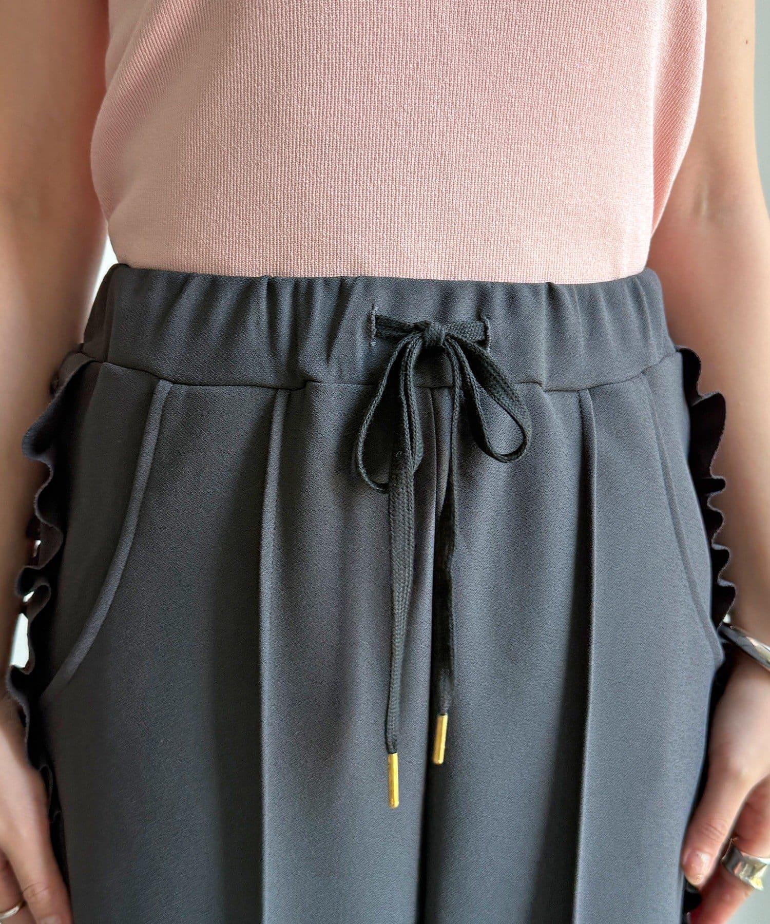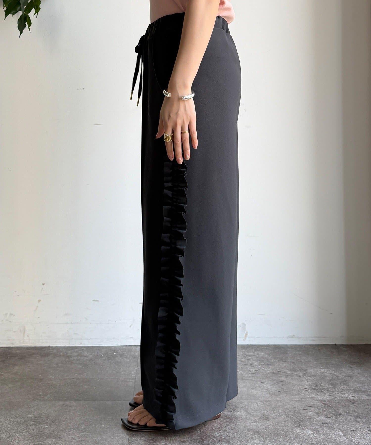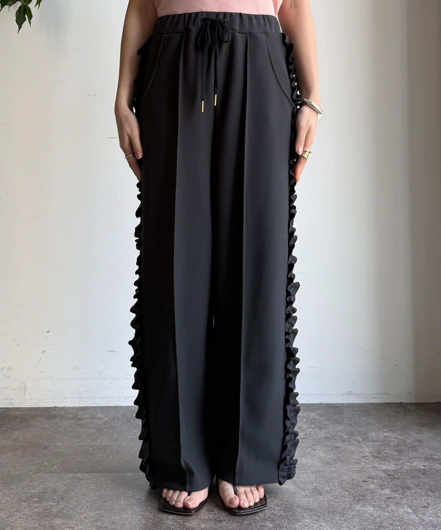 彈力喬其紗側邊荷葉邊褲子(網絡限定)