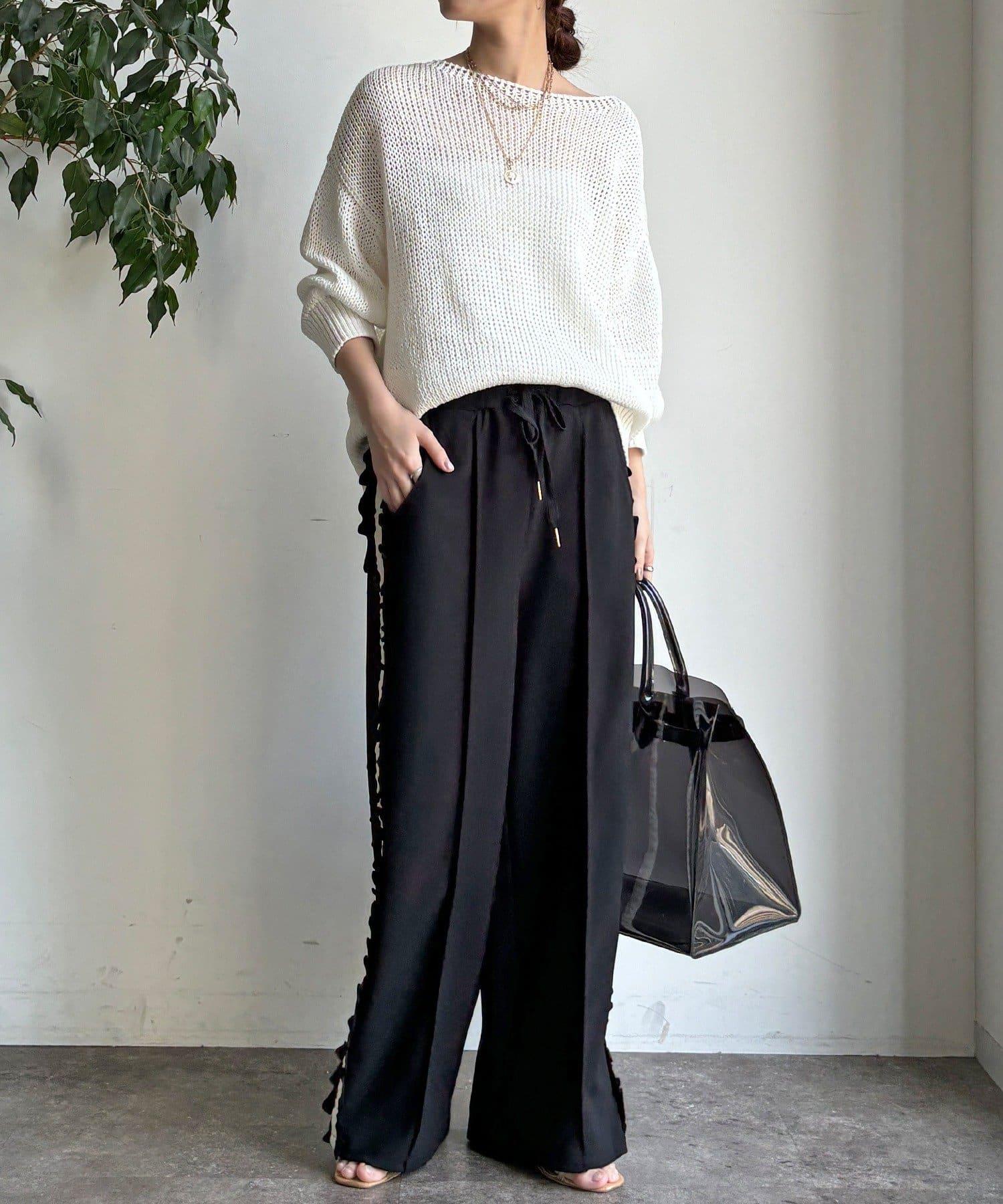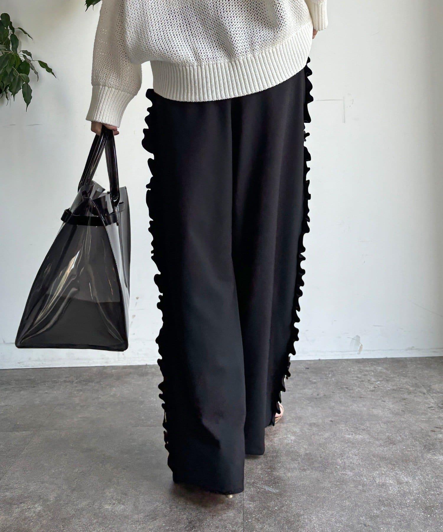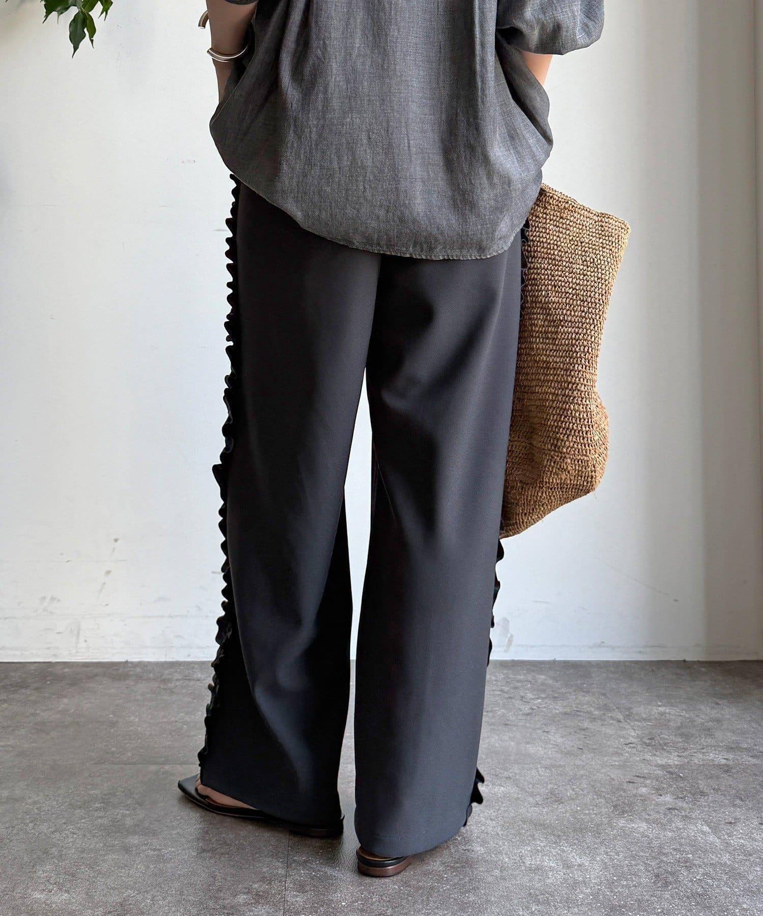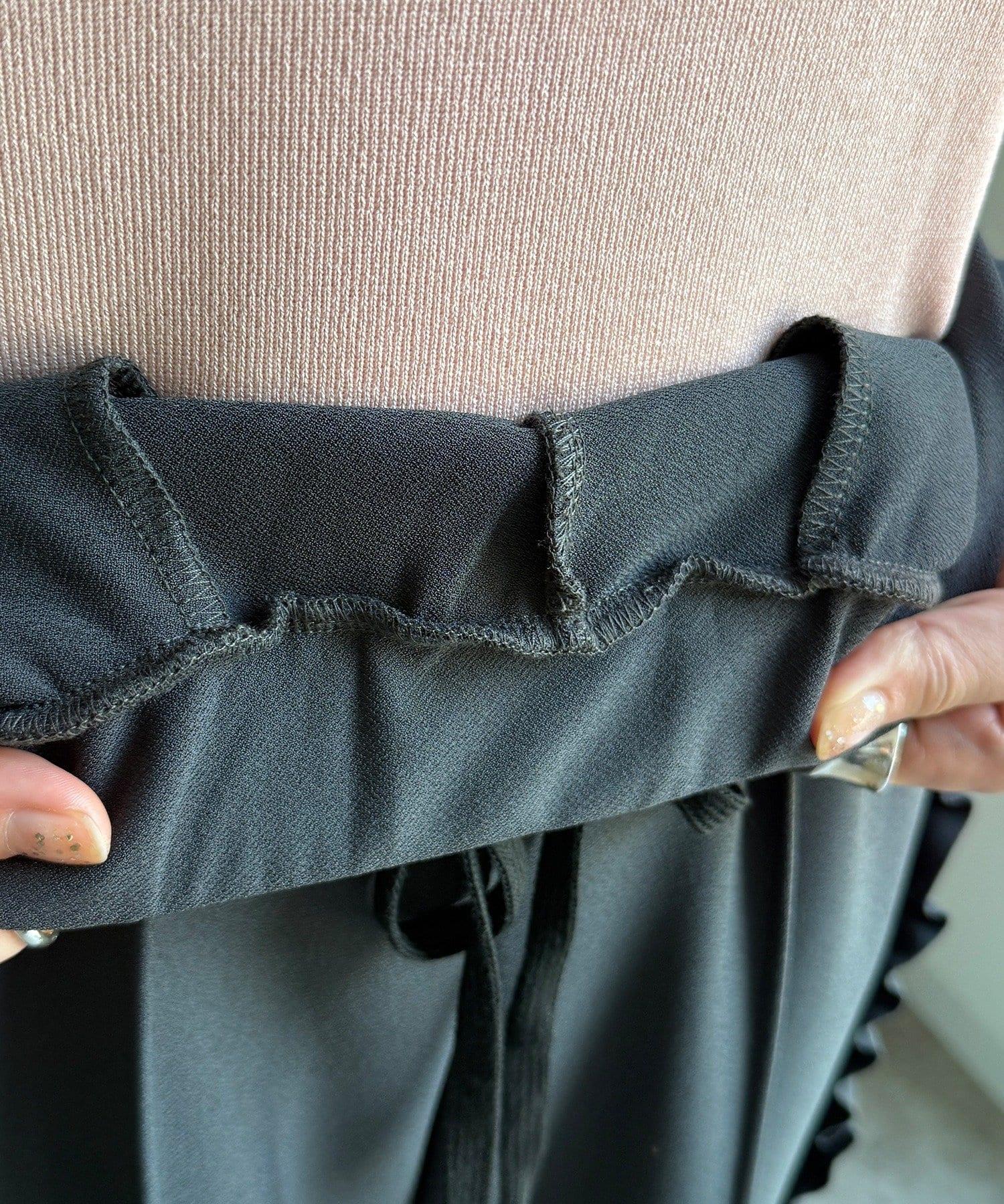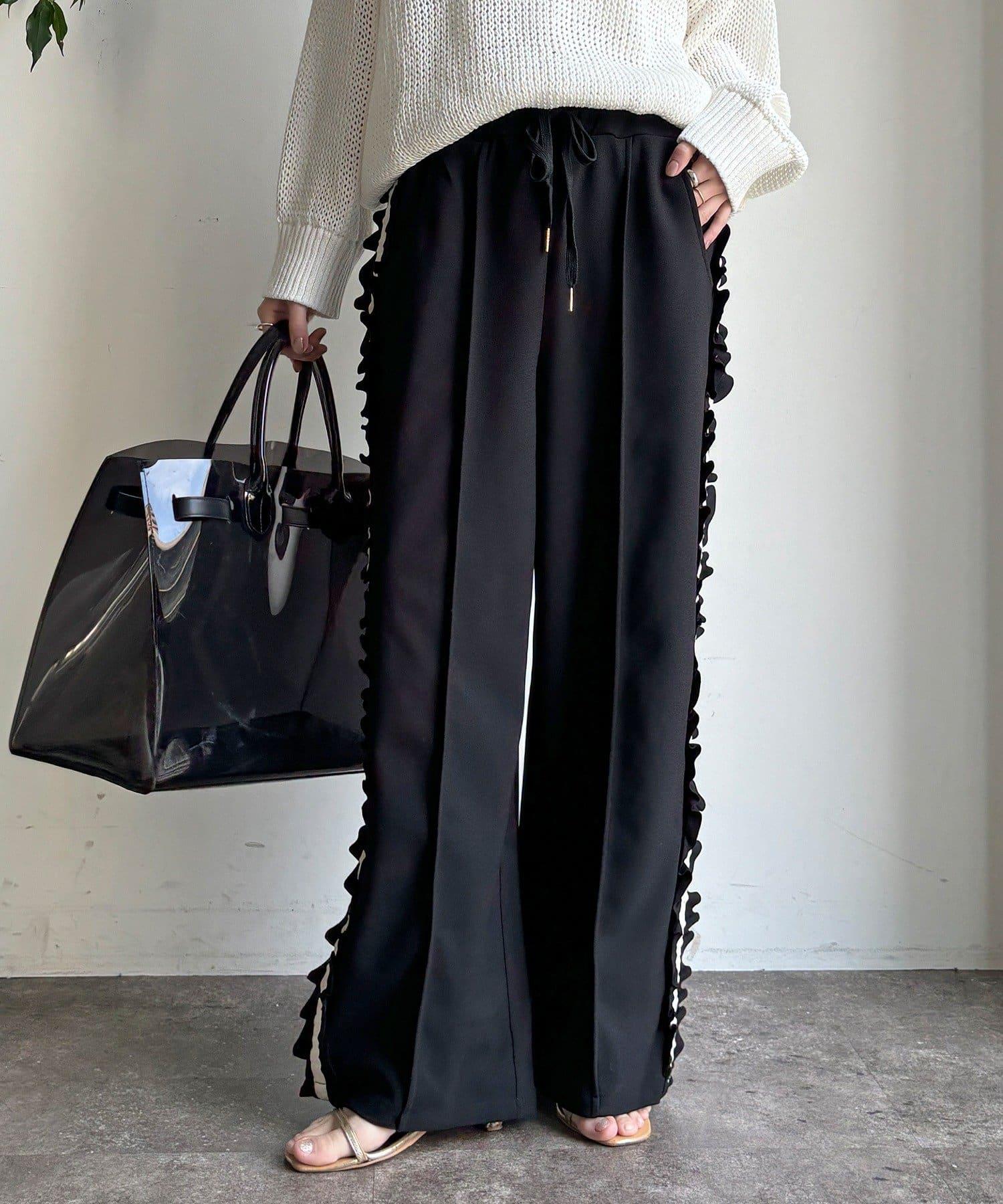 彈力喬其紗側邊荷葉邊褲子(網絡限定)