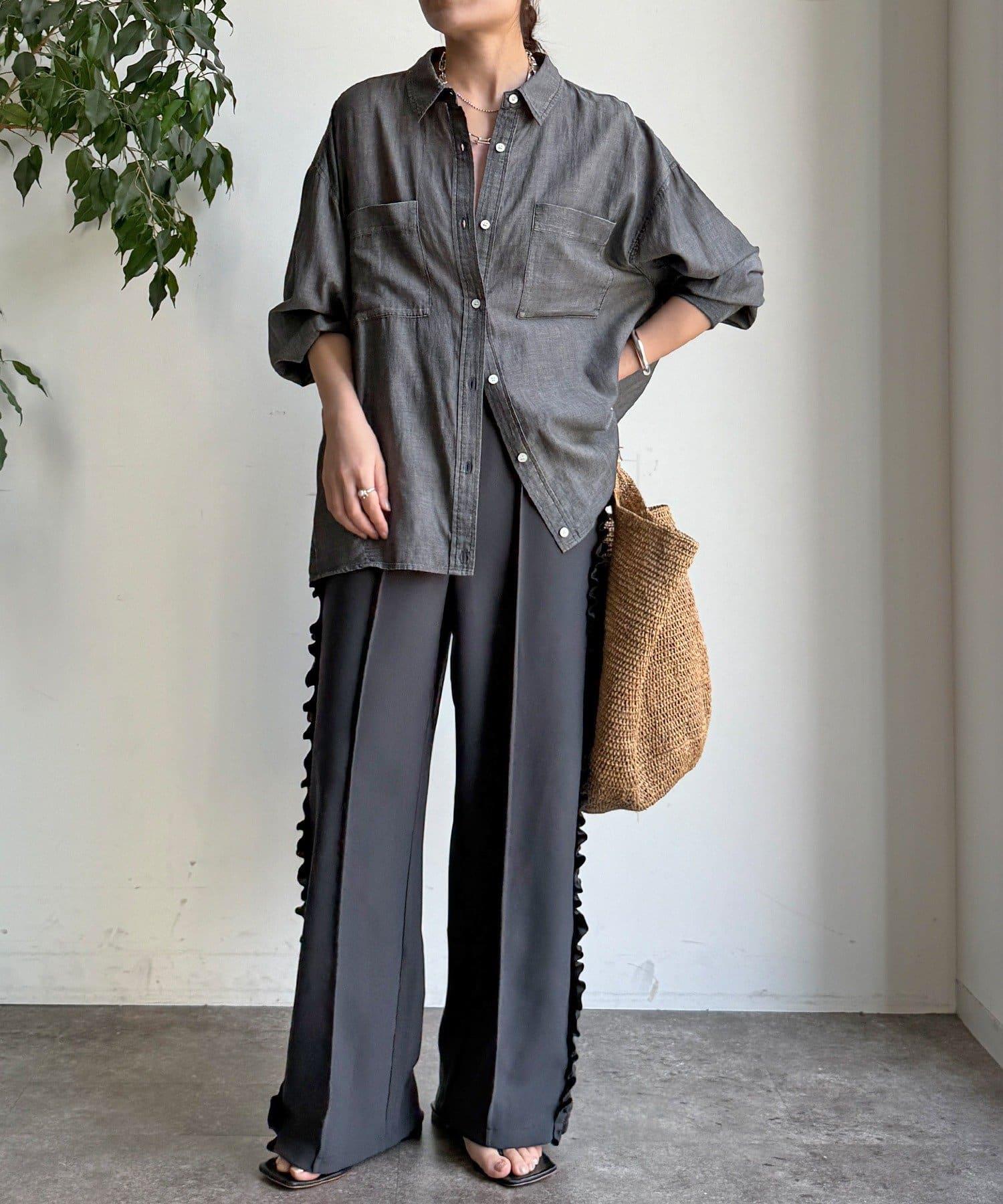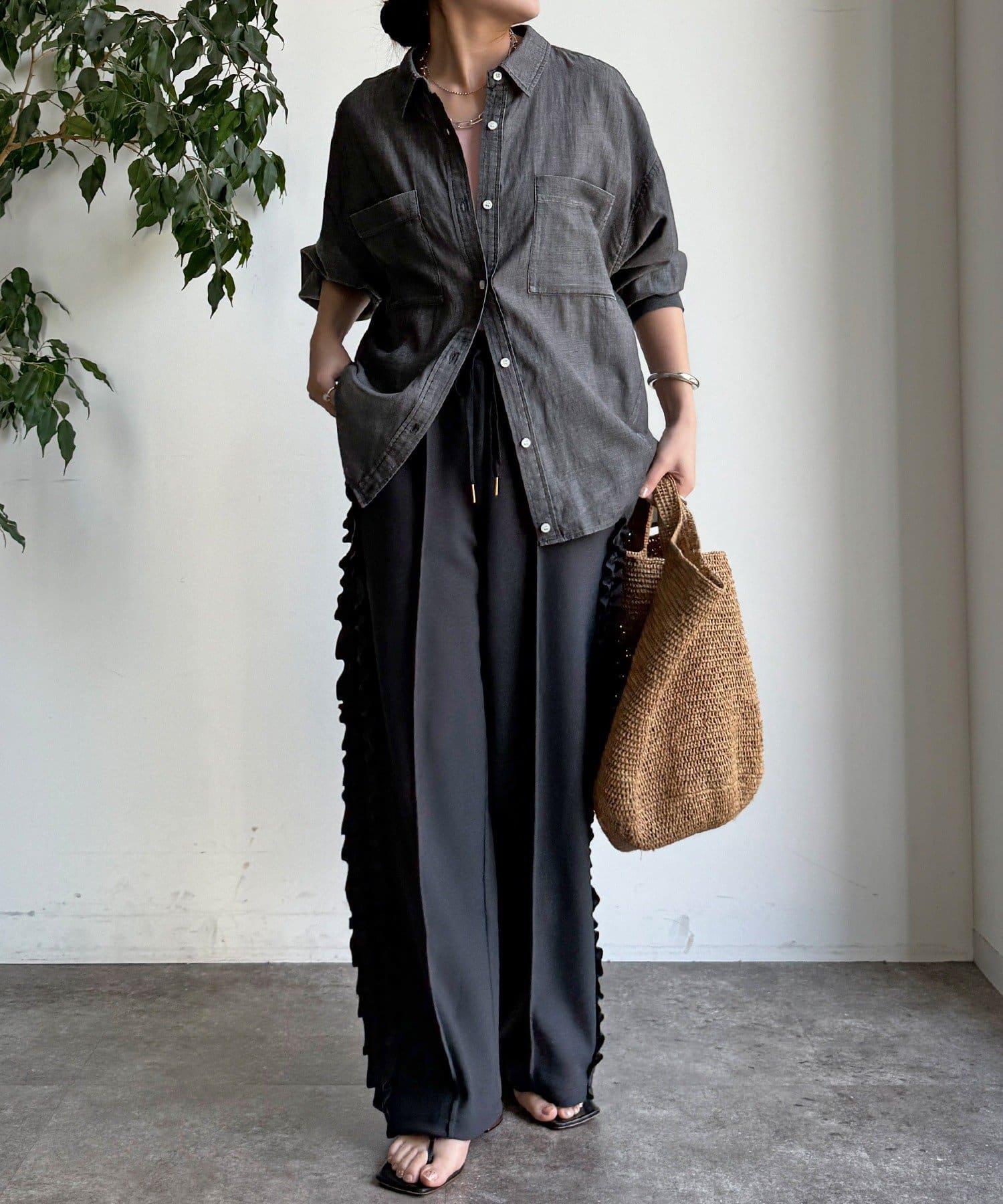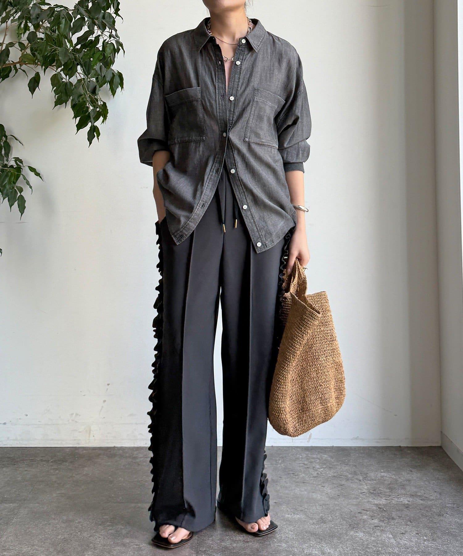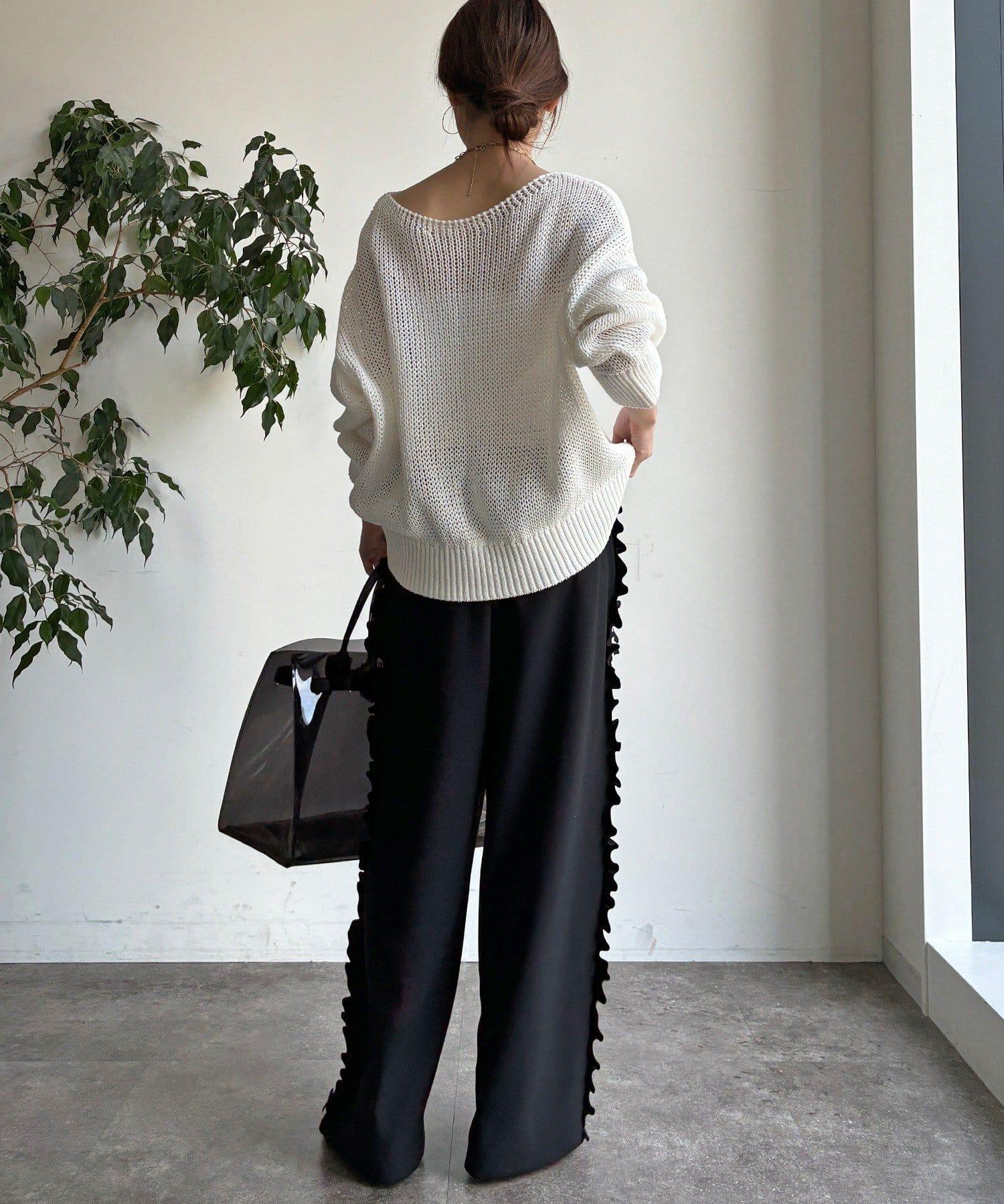 彈力喬其紗側邊荷葉邊褲子(網絡限定)