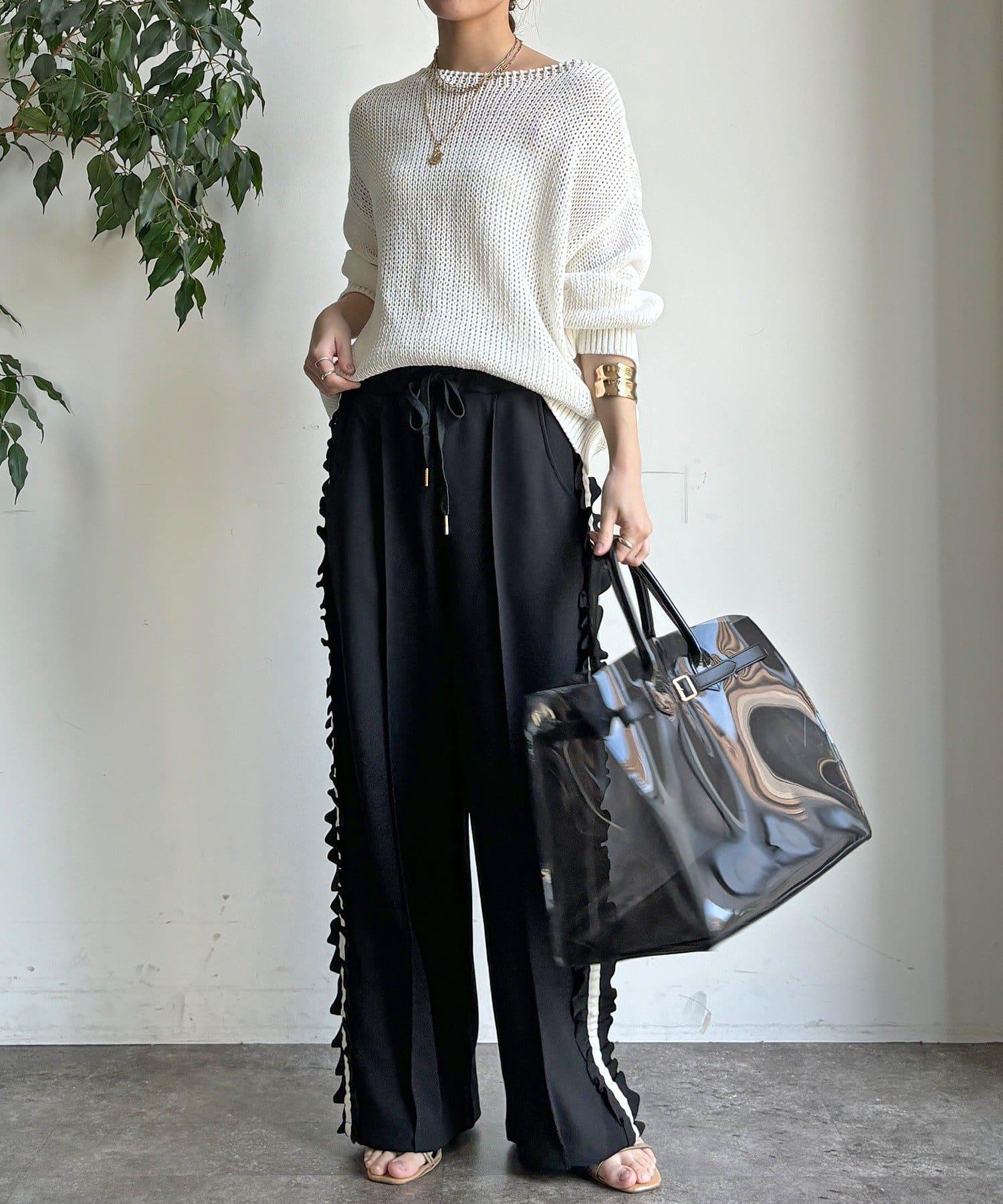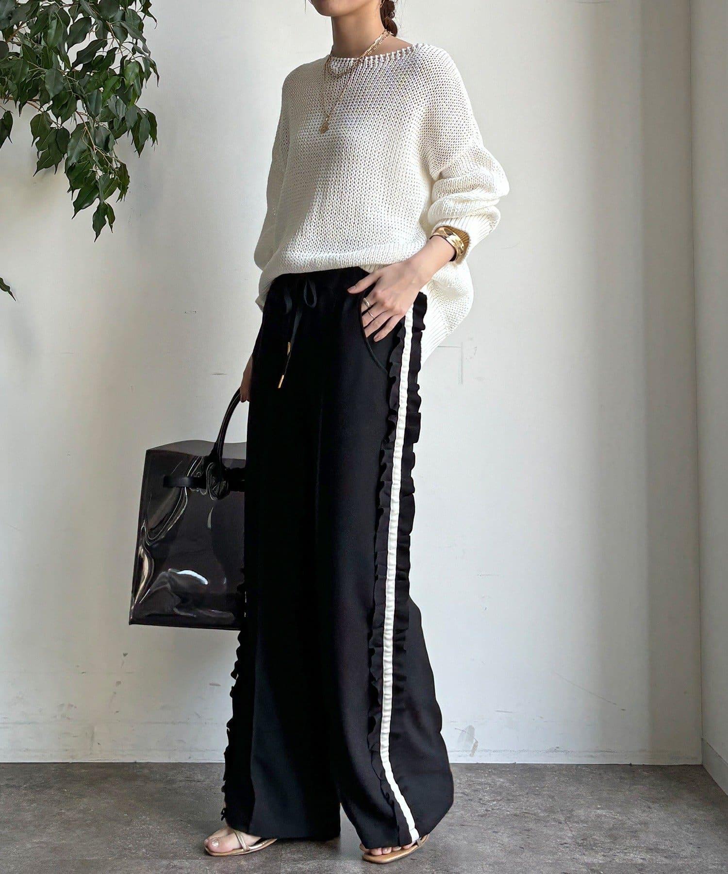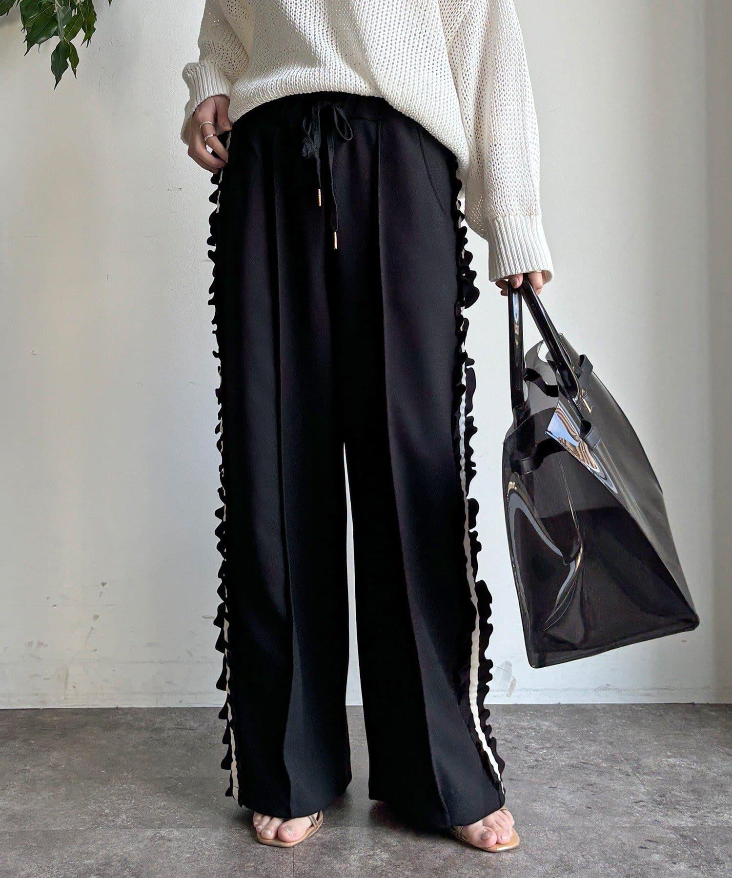 時尚的長褲,側邊的荷葉邊表現出運動感。
