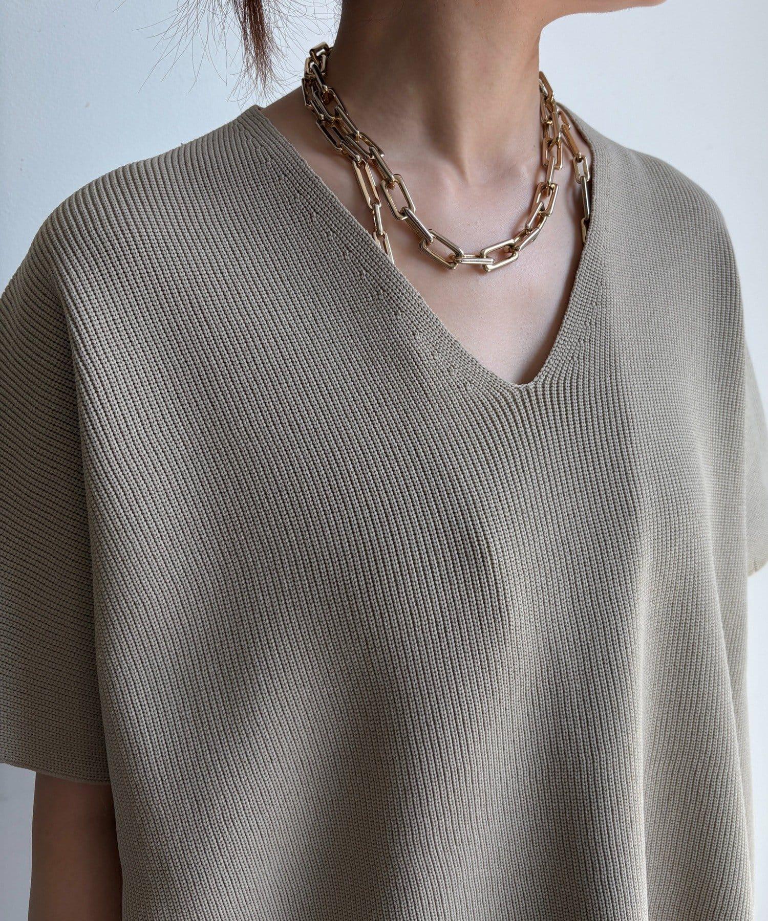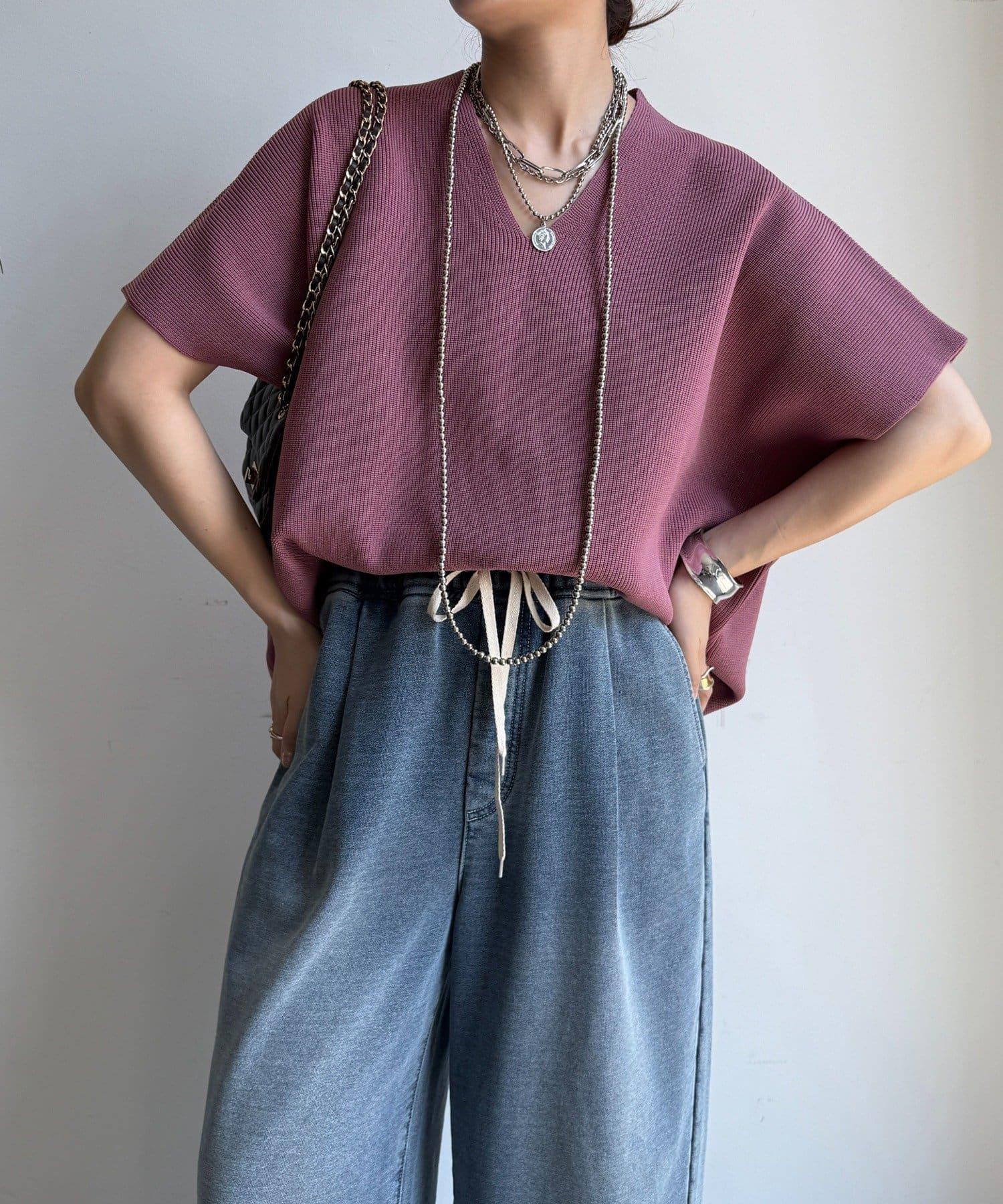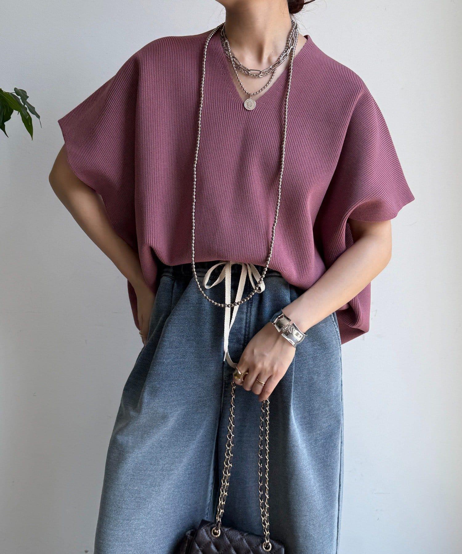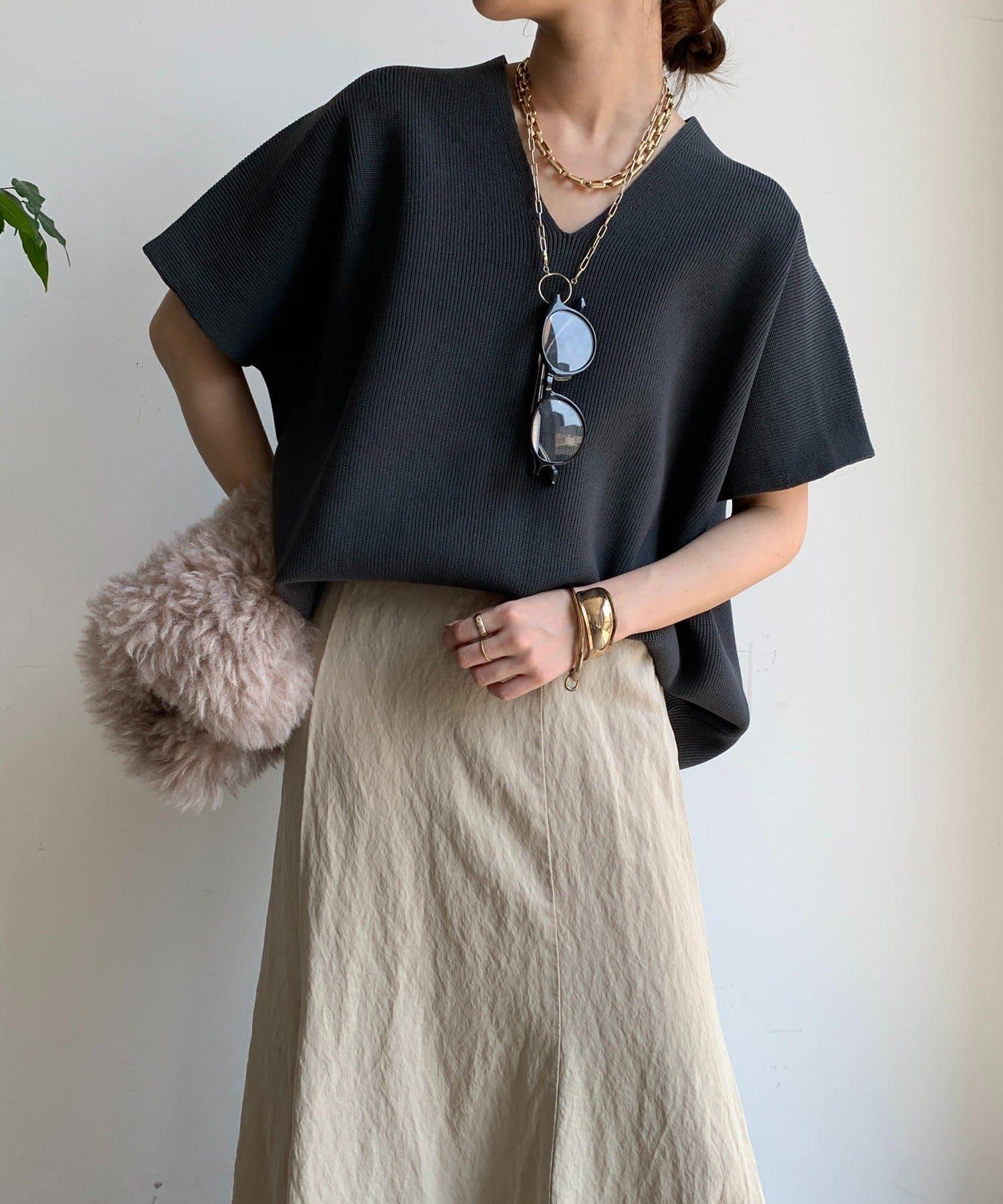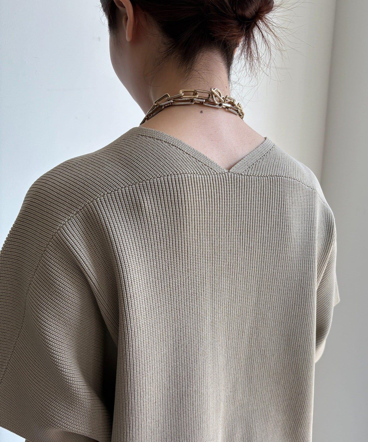 深 V 領設計讓臉部輪廓更加清晰,營造出輕鬆愉悅的感覺。