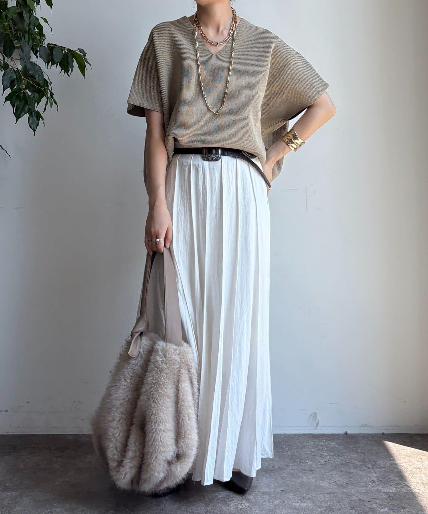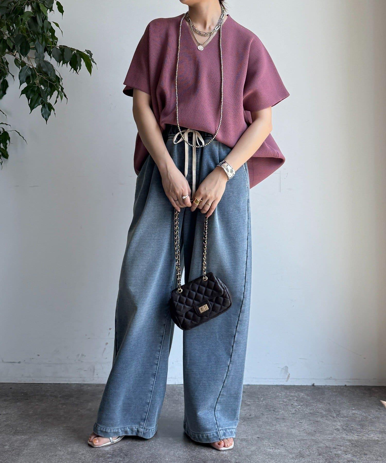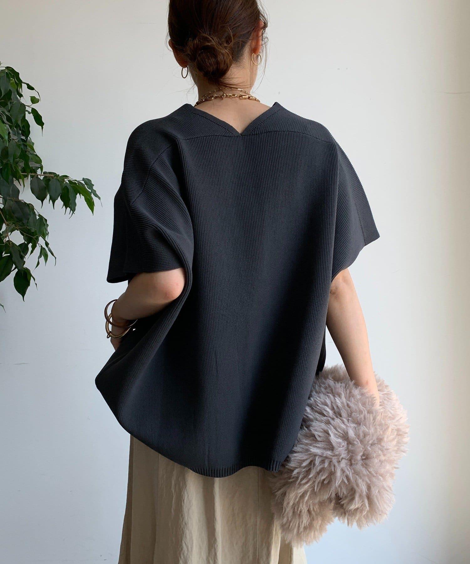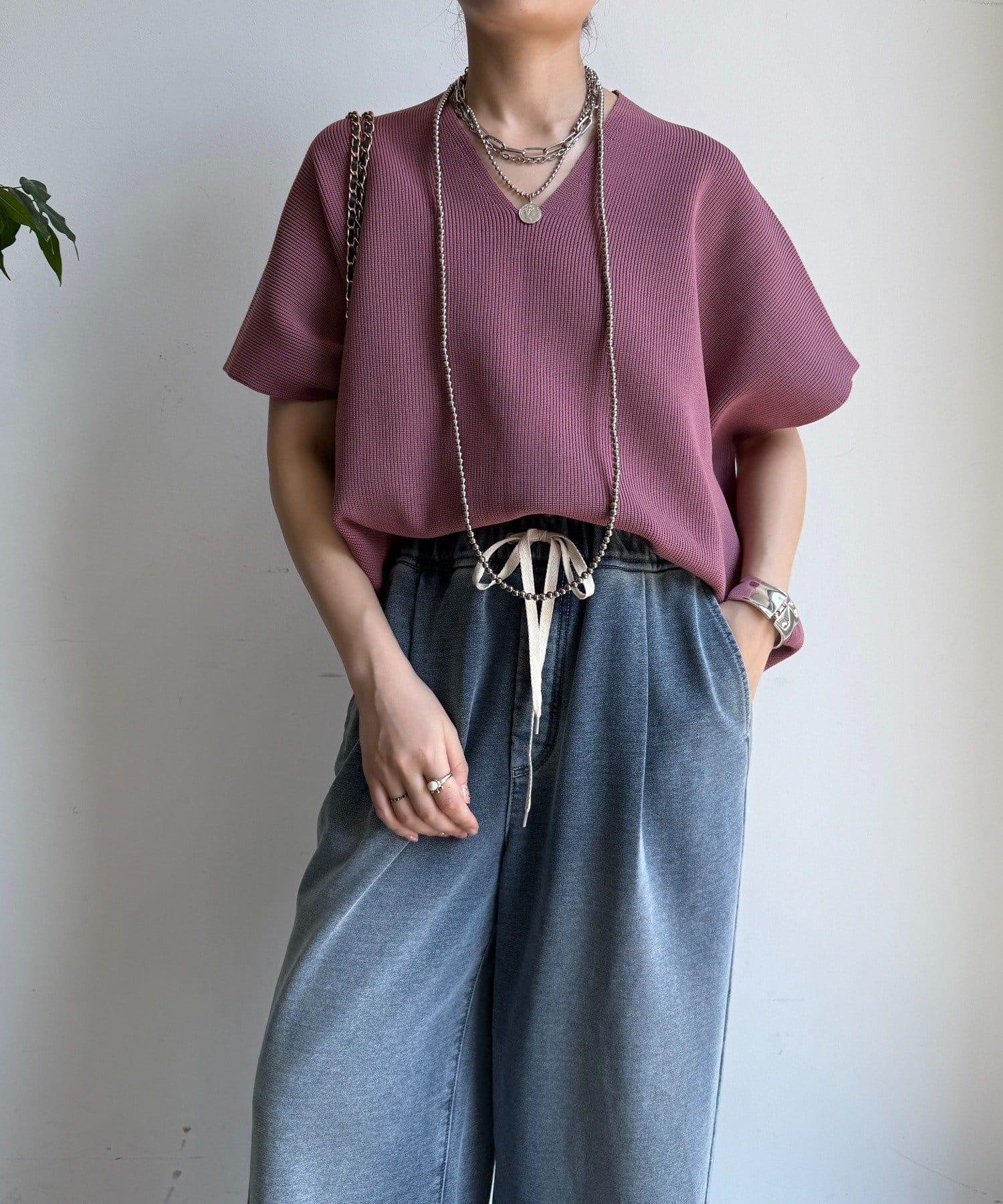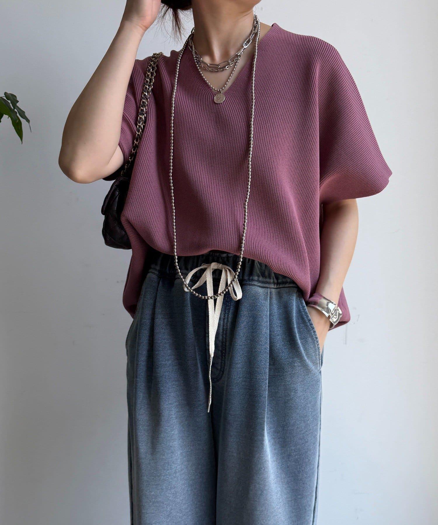 深 V 領設計讓臉部輪廓更加清晰,營造出輕鬆愉悅的感覺。