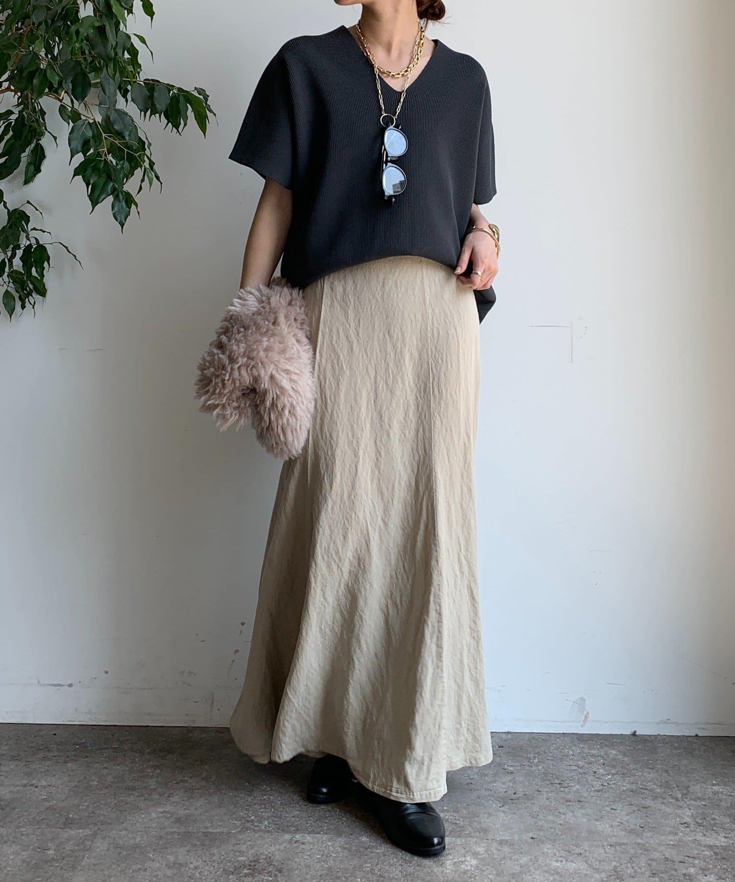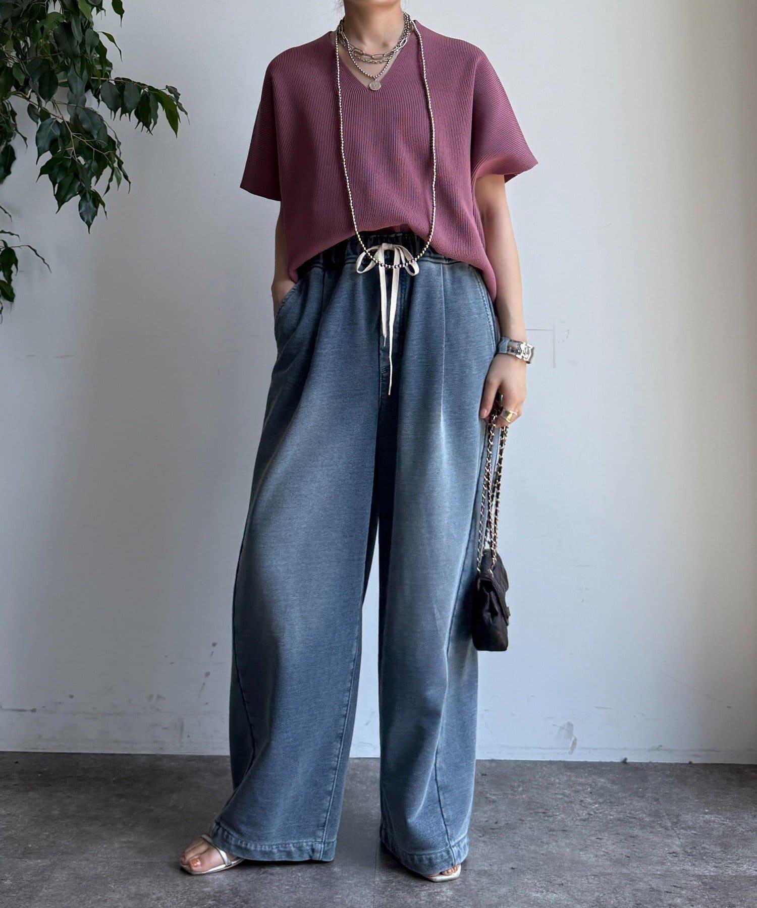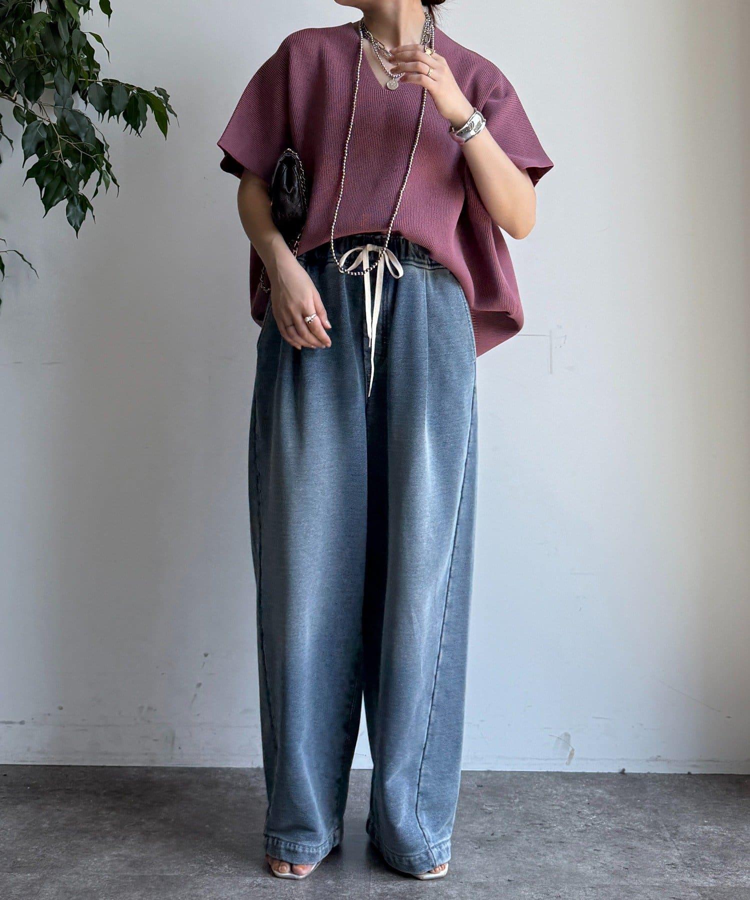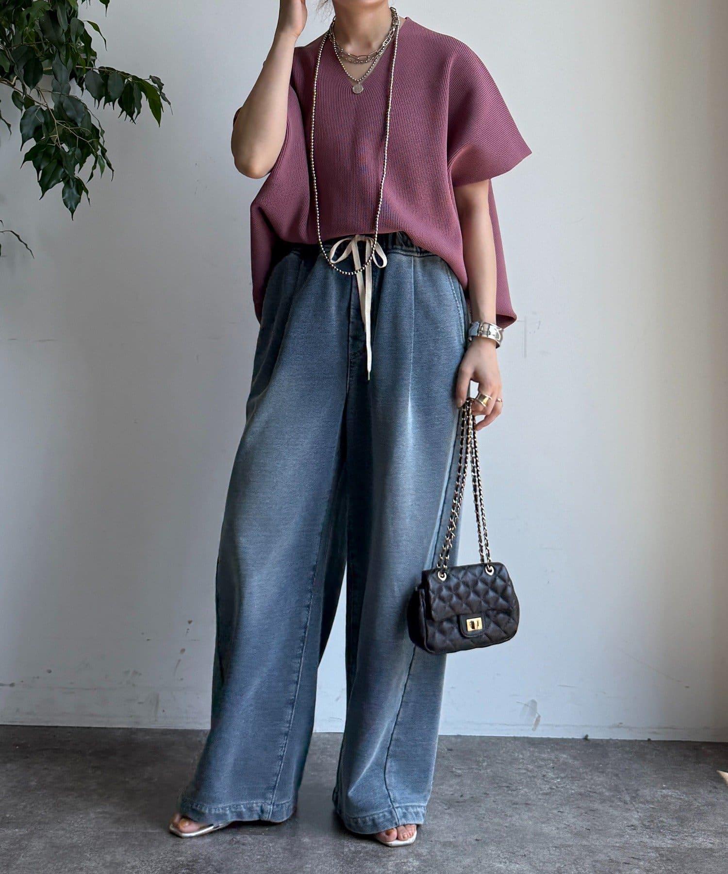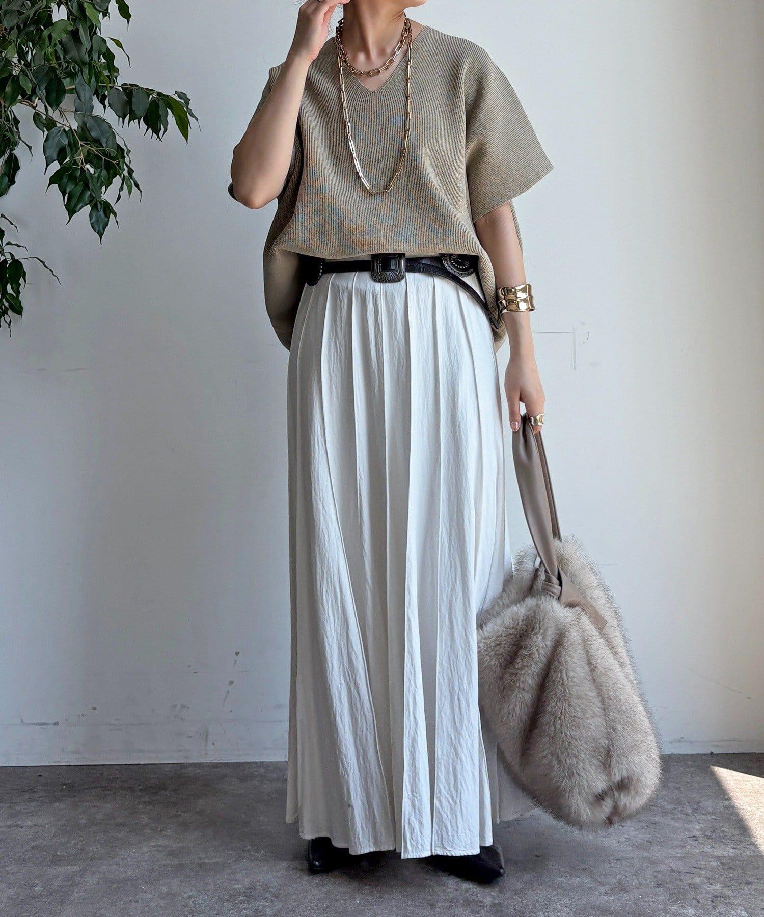 深 V 領設計讓臉部輪廓更加清晰,營造出輕鬆愉悅的感覺。