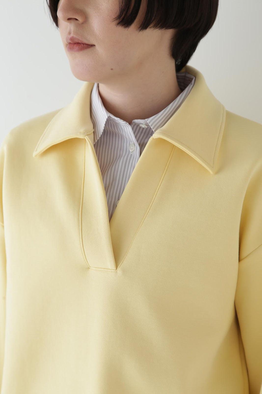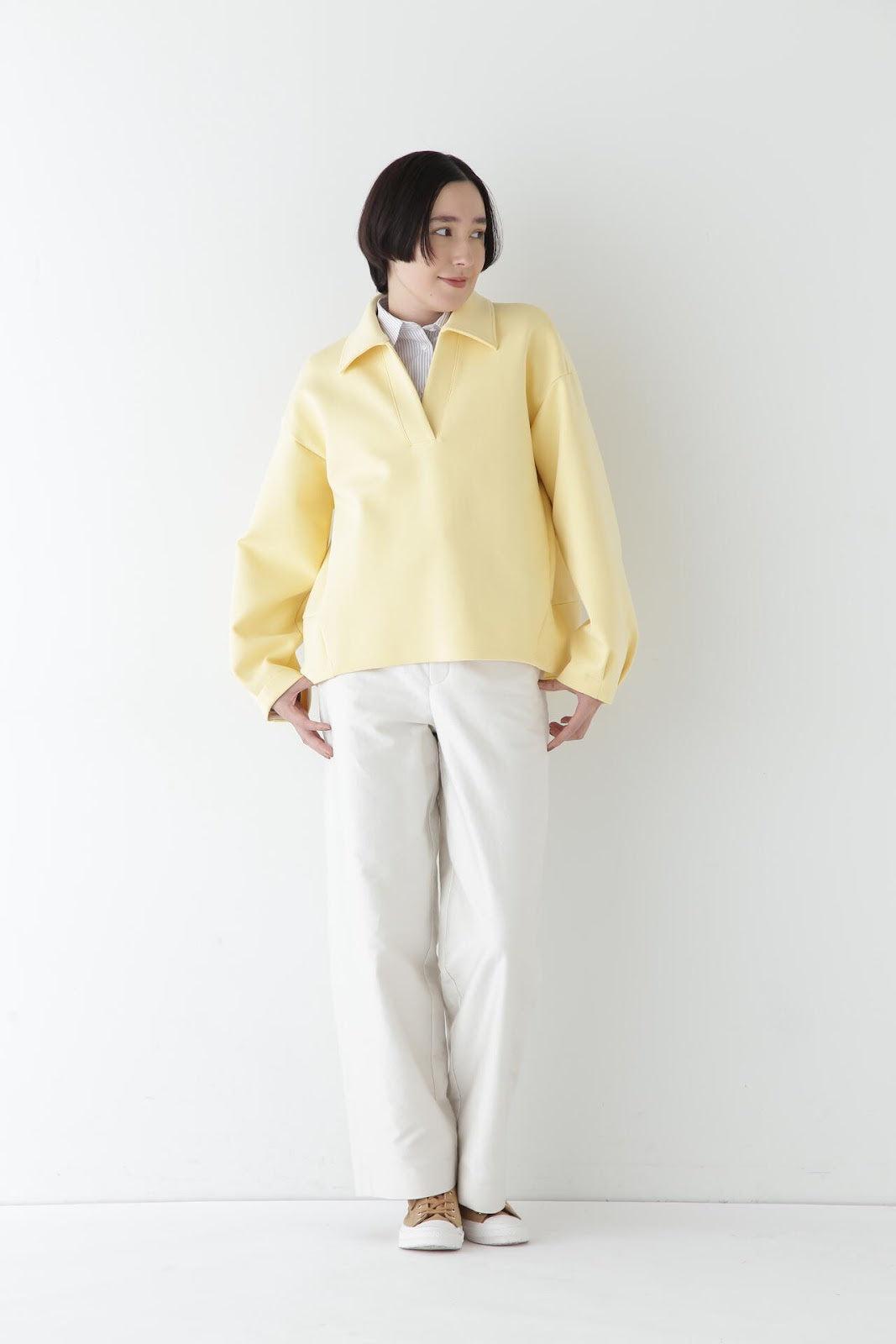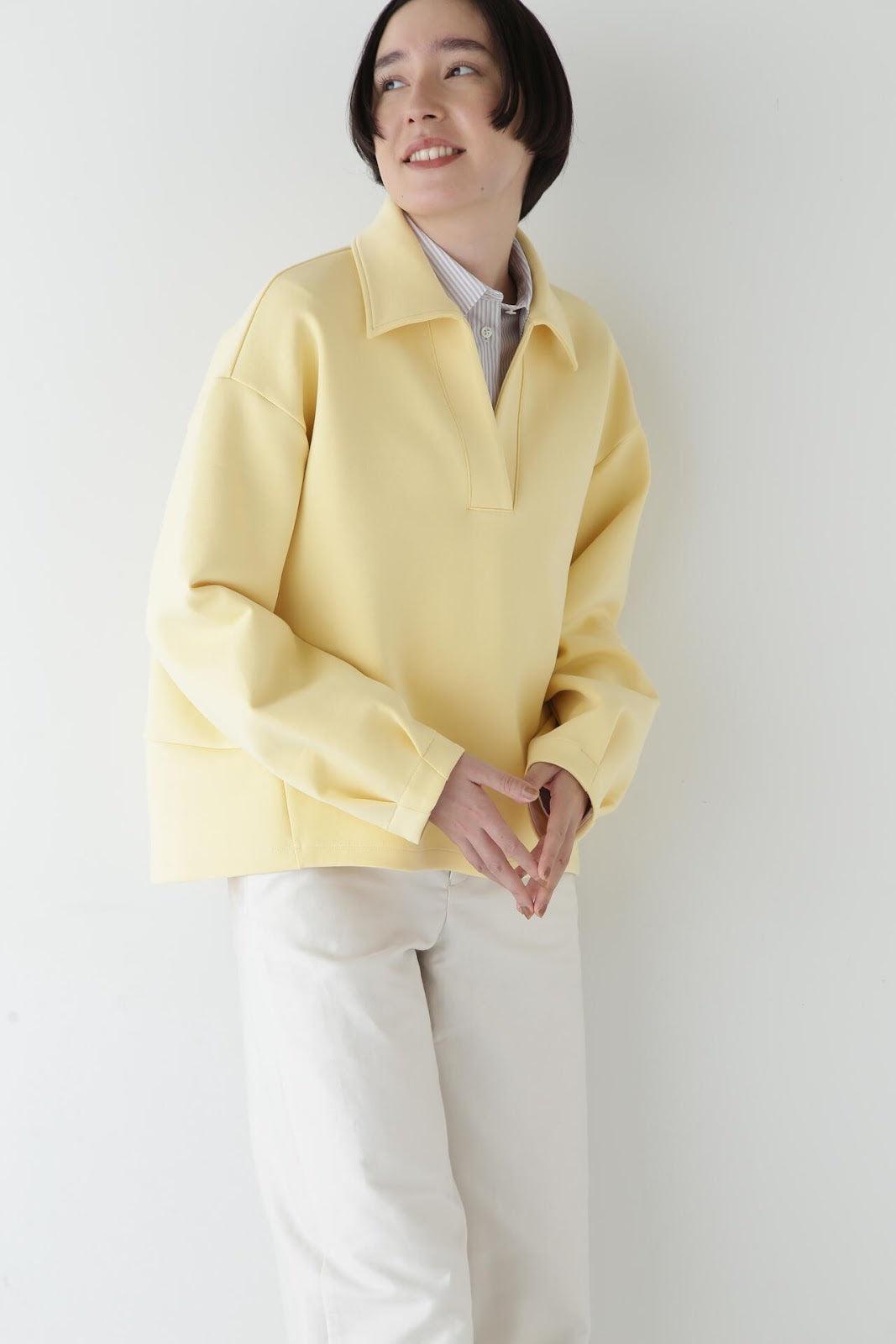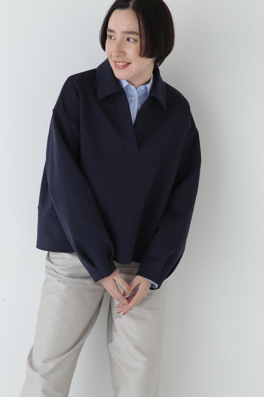 這款針織船長套衫具有迷人的立體造型 [設計要點] 衣身和衣袖的圓繭造型是其主要特點。這款面料為棉卡紙面料,採用彈力混紡工藝,具有膨鬆彈力感。面料手感自然,表面處理精美。推薦搭配:喜歡將這款單品與龜紋或條紋襯衫作為內層疊穿。此外,還建議搭配醒目的顏色。