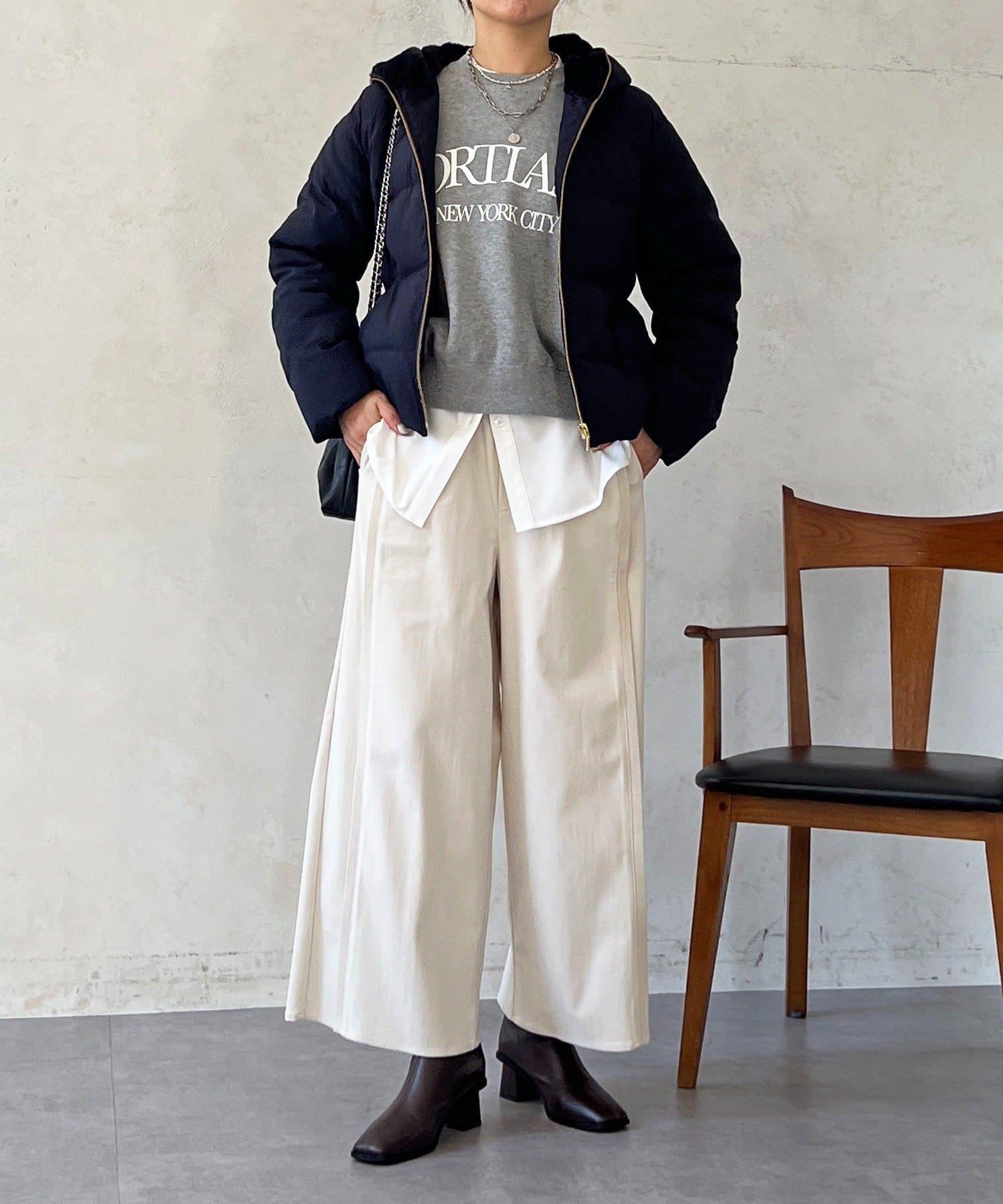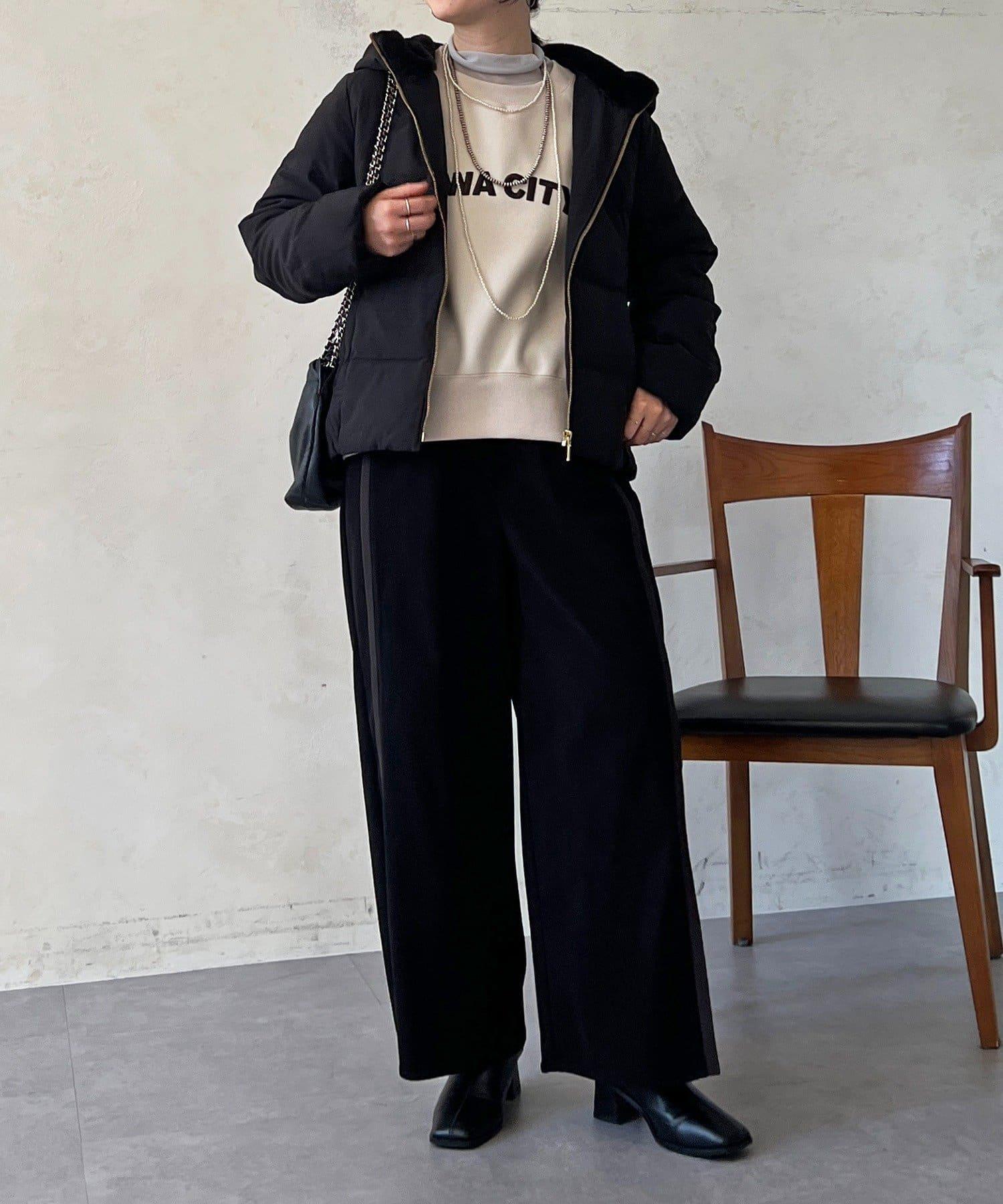 直筒長褲,採用凸起面料,非常適合本季穿著。