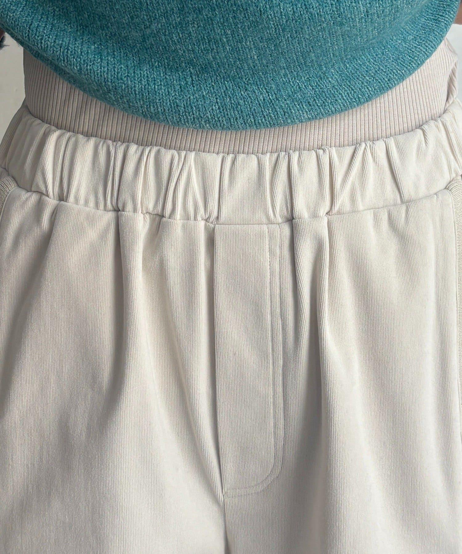 彈力磨毛羅紋拼接褲