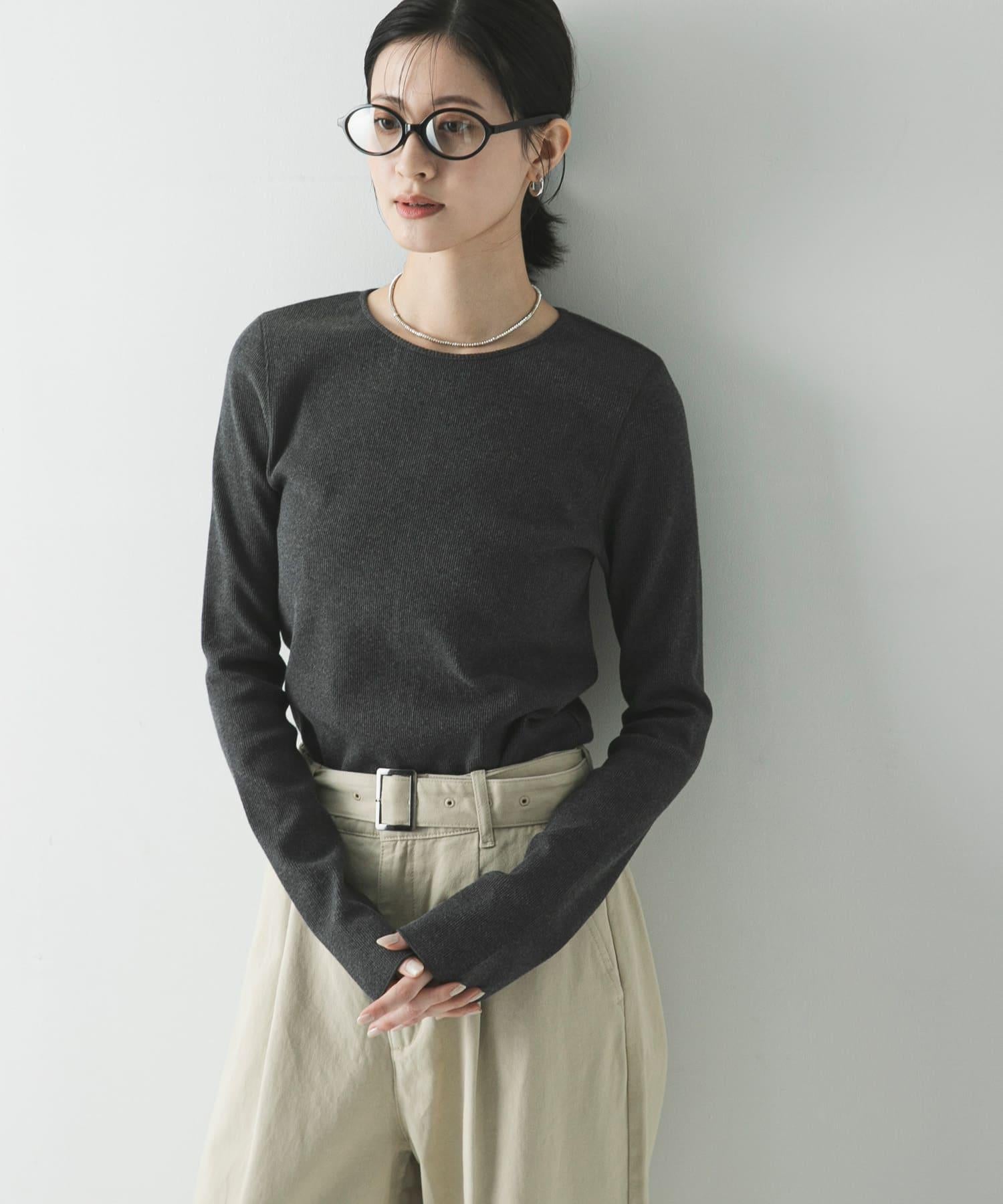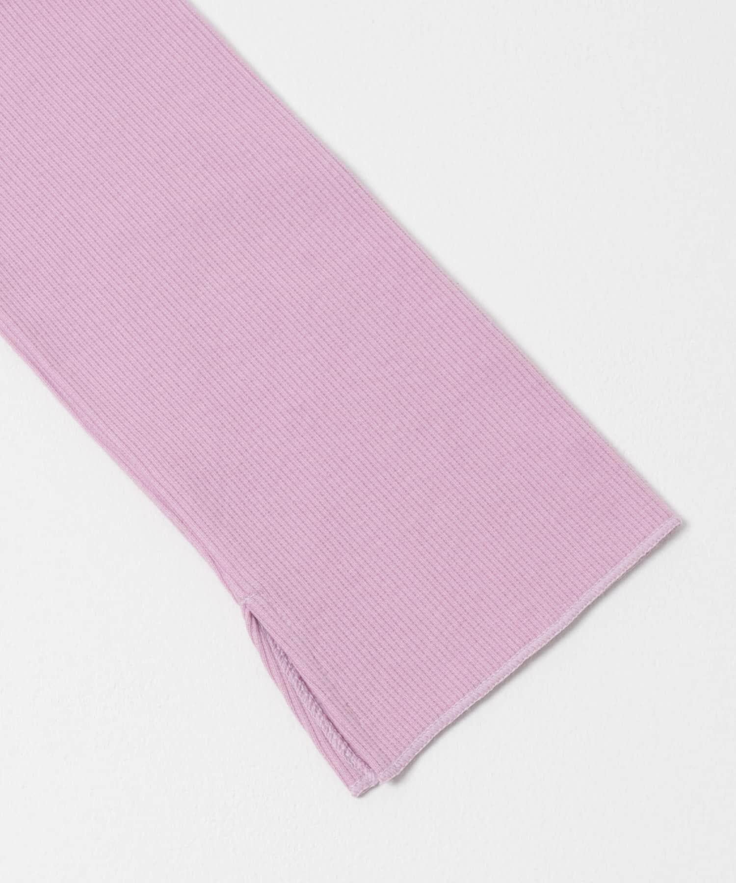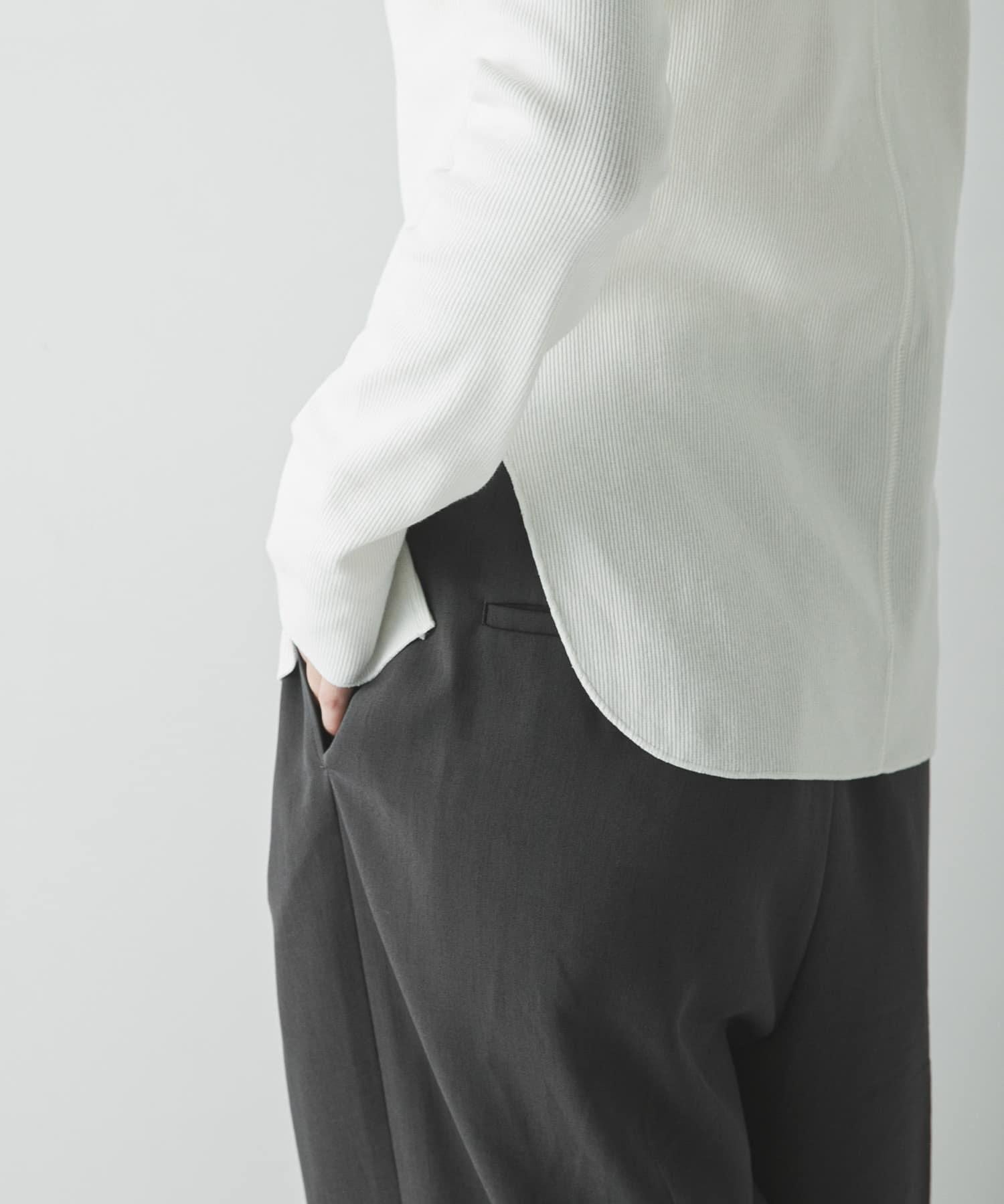 羅紋面料手感順滑,彈性良好,穿著舒適,輕柔地貼合身體線條。略顯厚實的質地使其既可作為換季時的單衣,又不會過於像內衣。