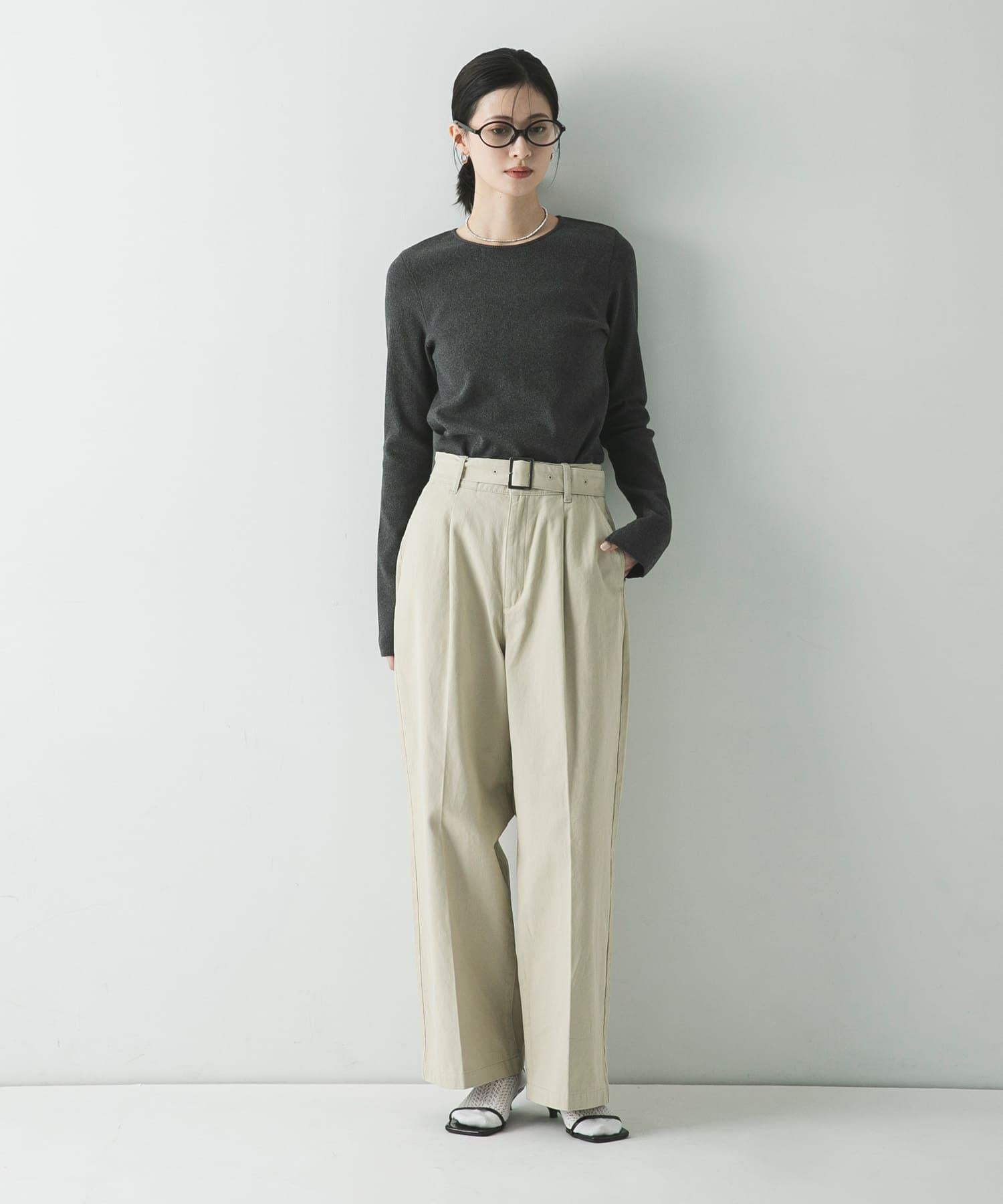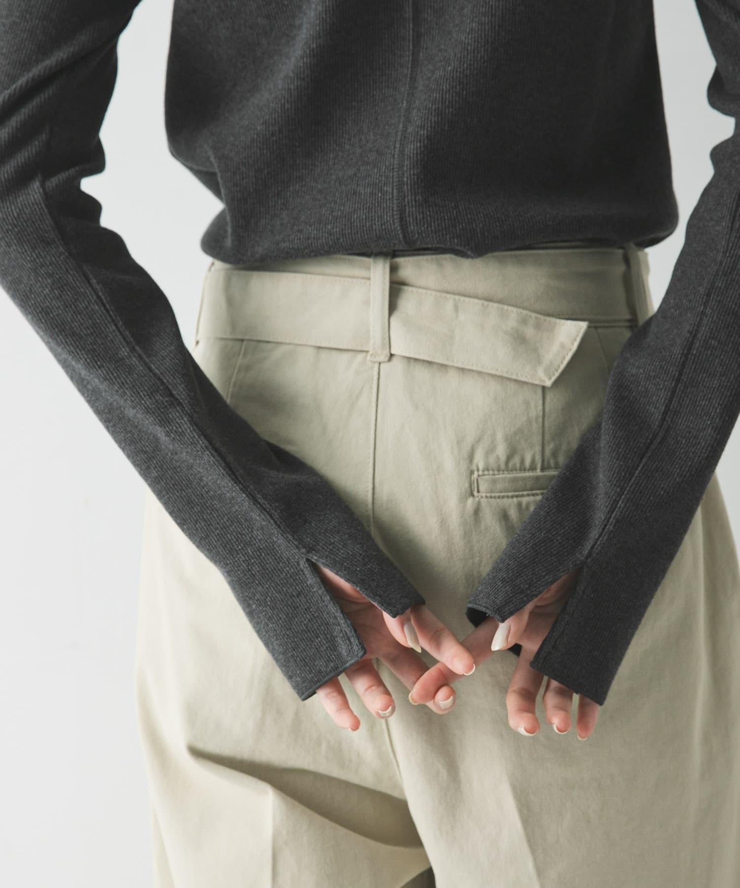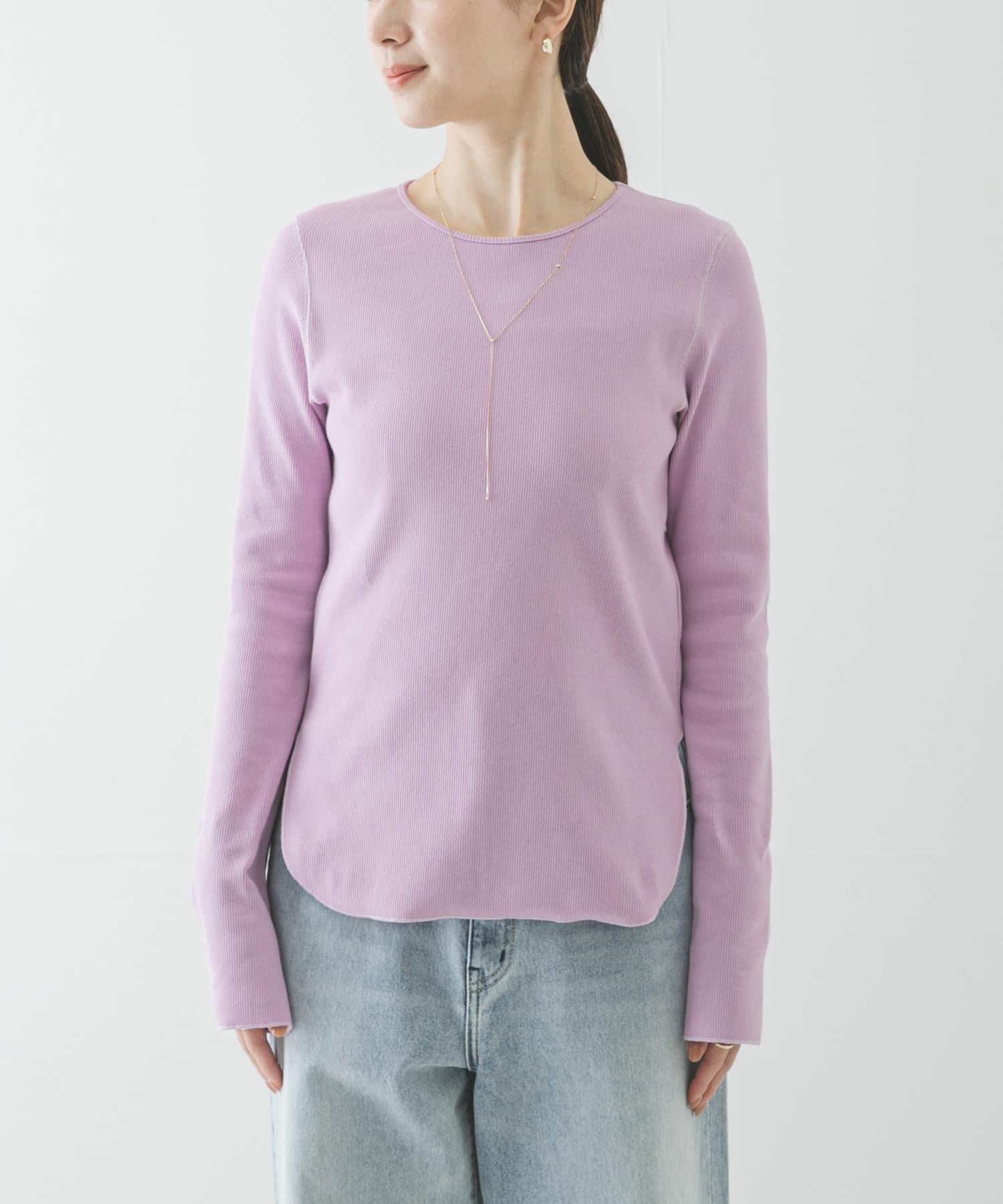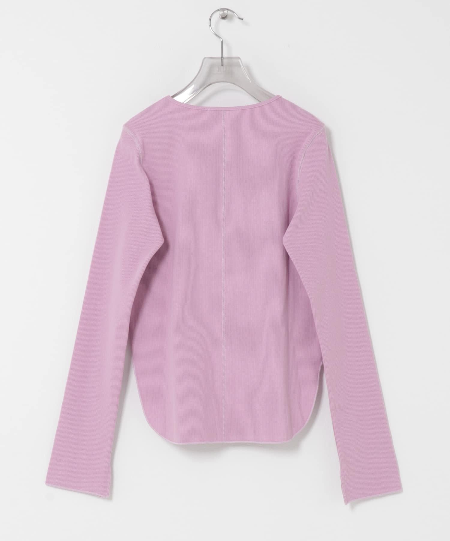 羅紋面料手感順滑,彈性良好,穿著舒適,輕柔地貼合身體線條。略顯厚實的質地使其既可作為換季時的單衣,又不會過於像內衣。