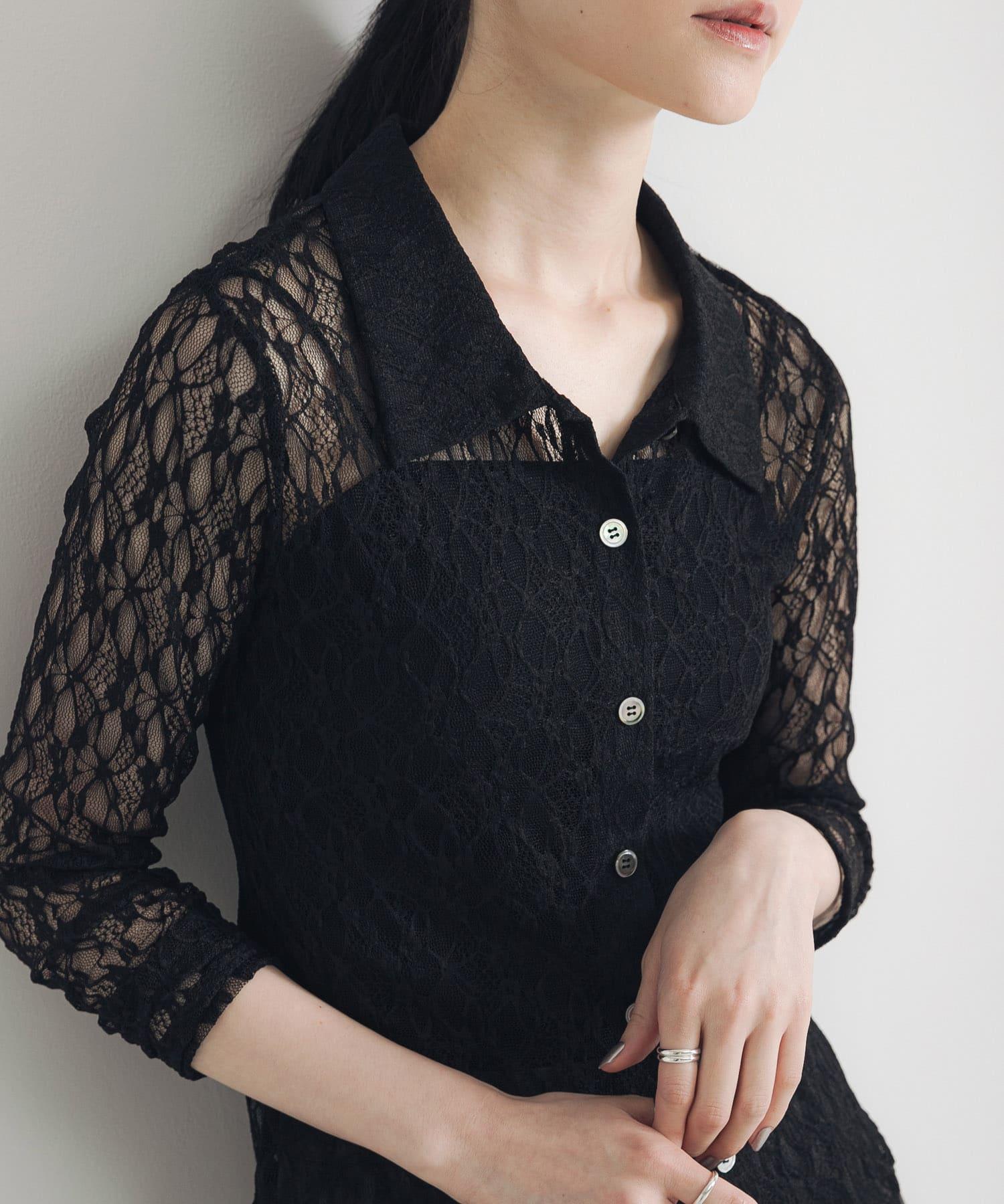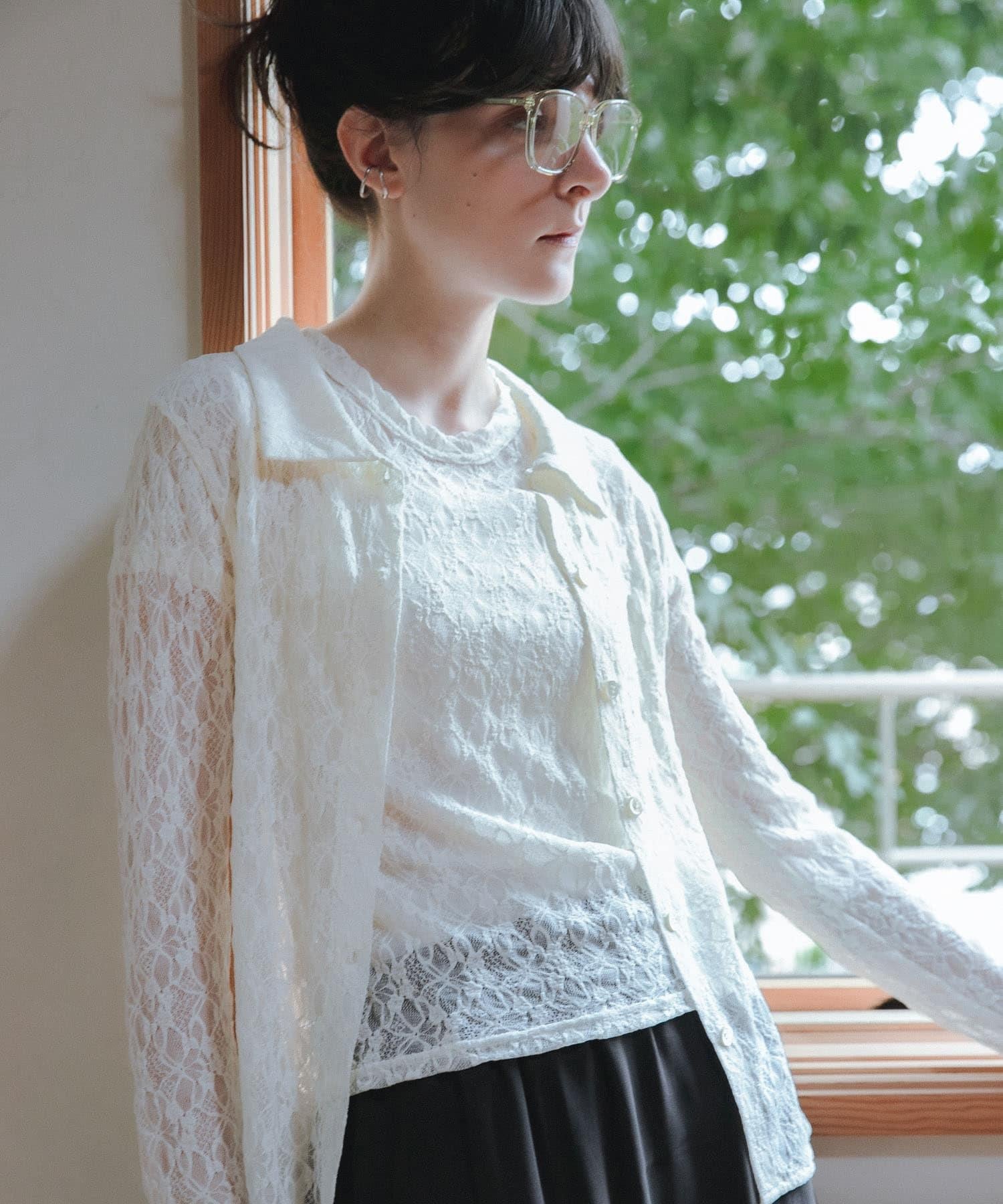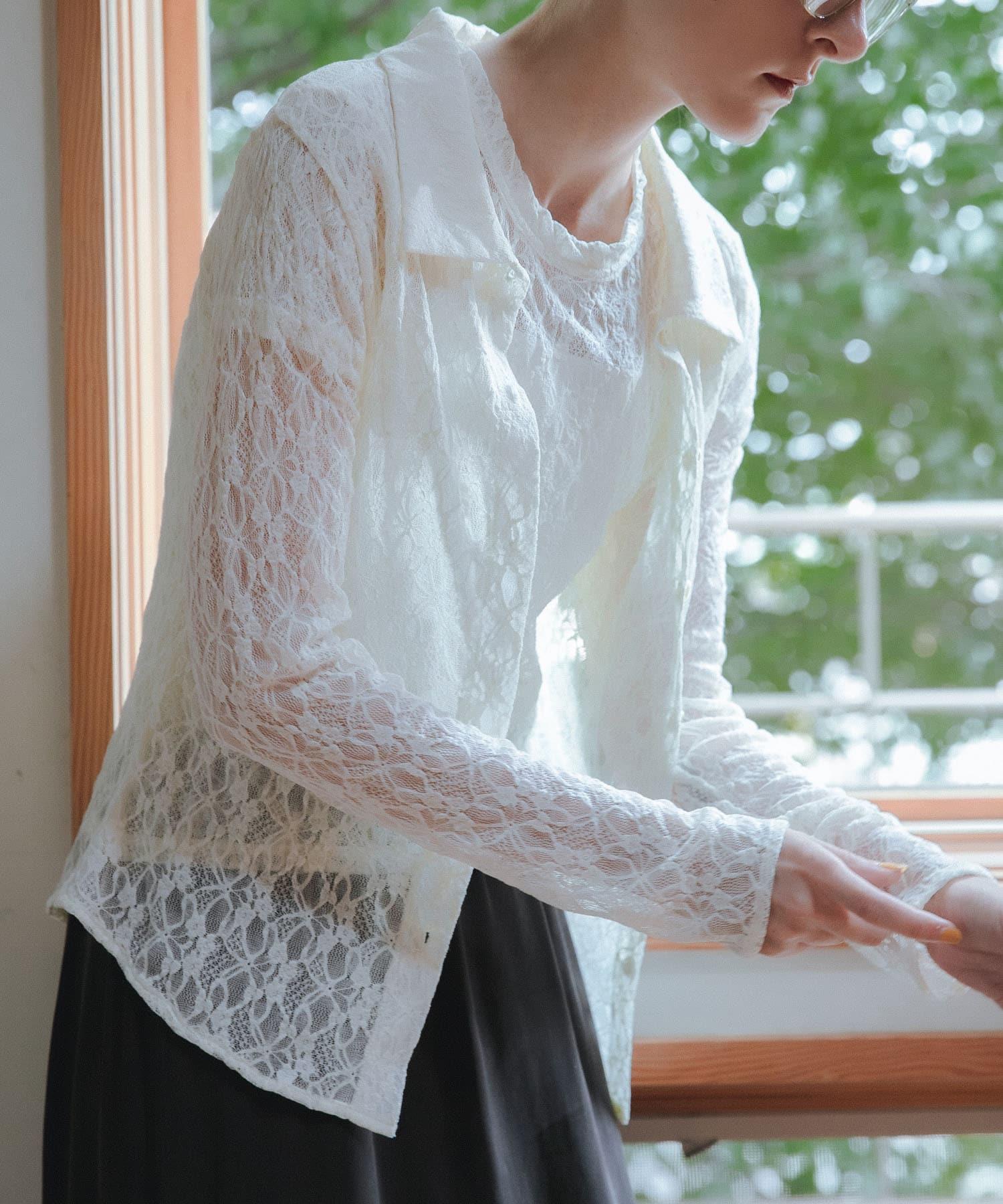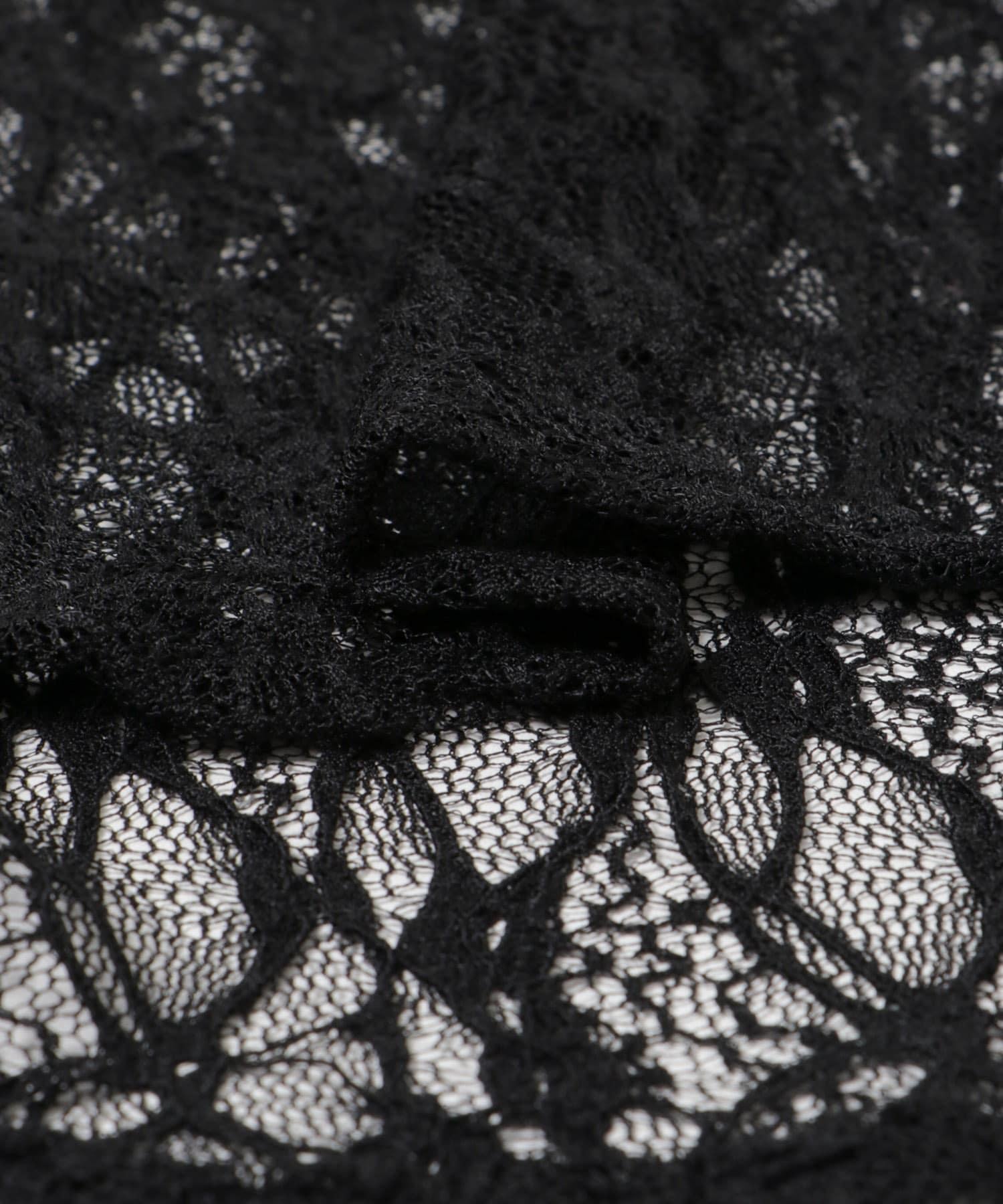 輕薄的彈力蕾絲富有彈性。上衣與皮膚很好地融合在一起,有墜感,穿起來給人乾淨利落的印象。