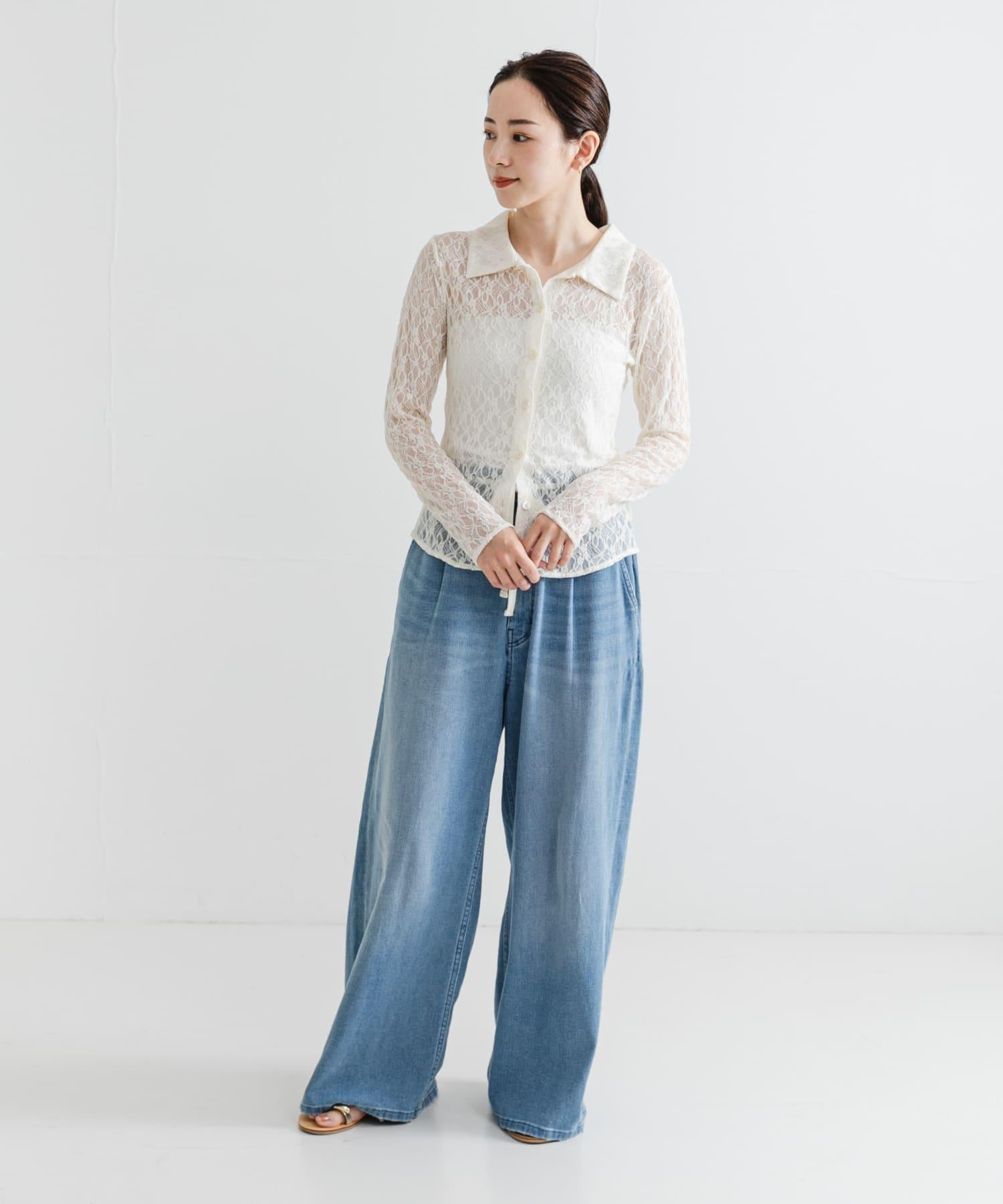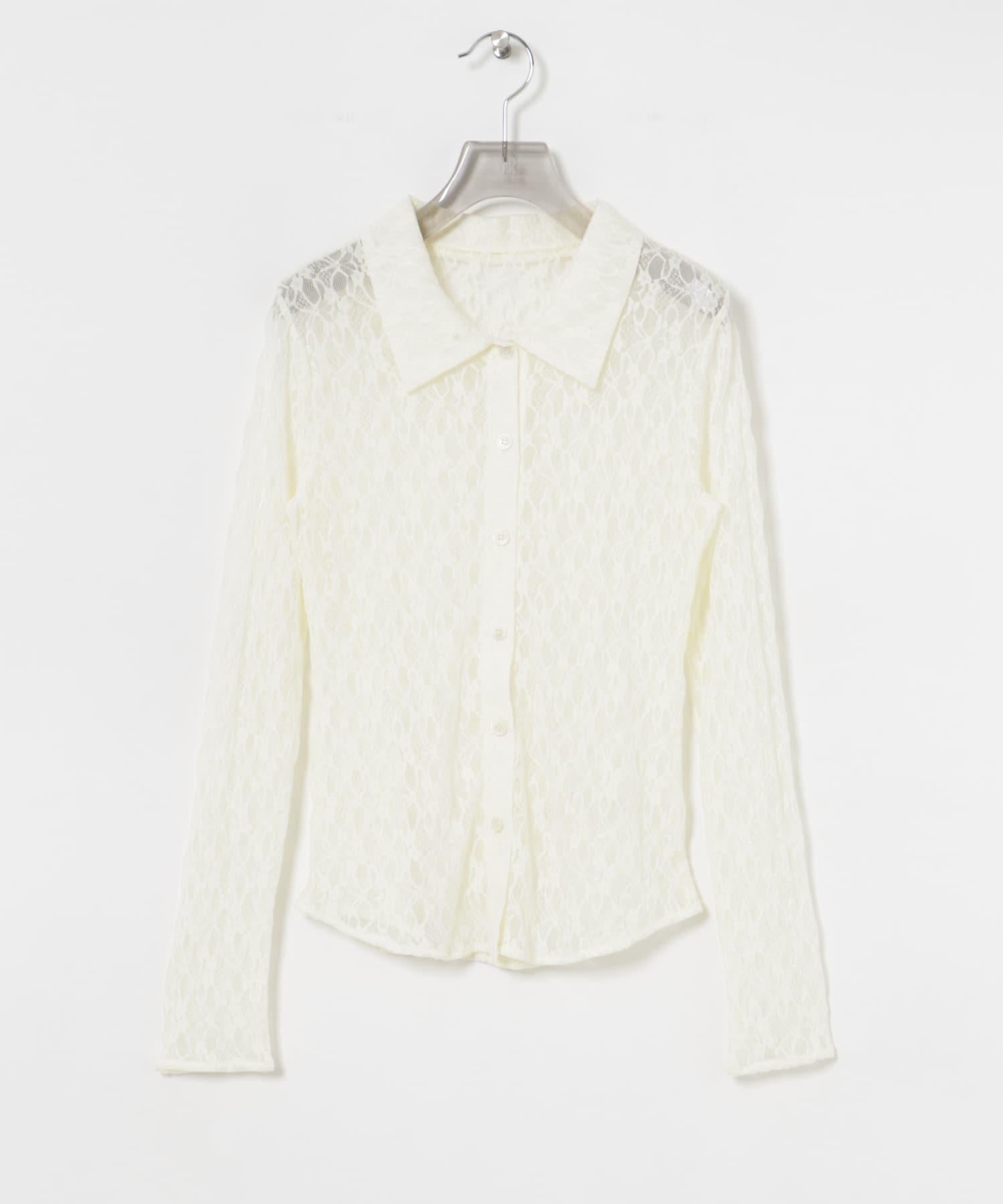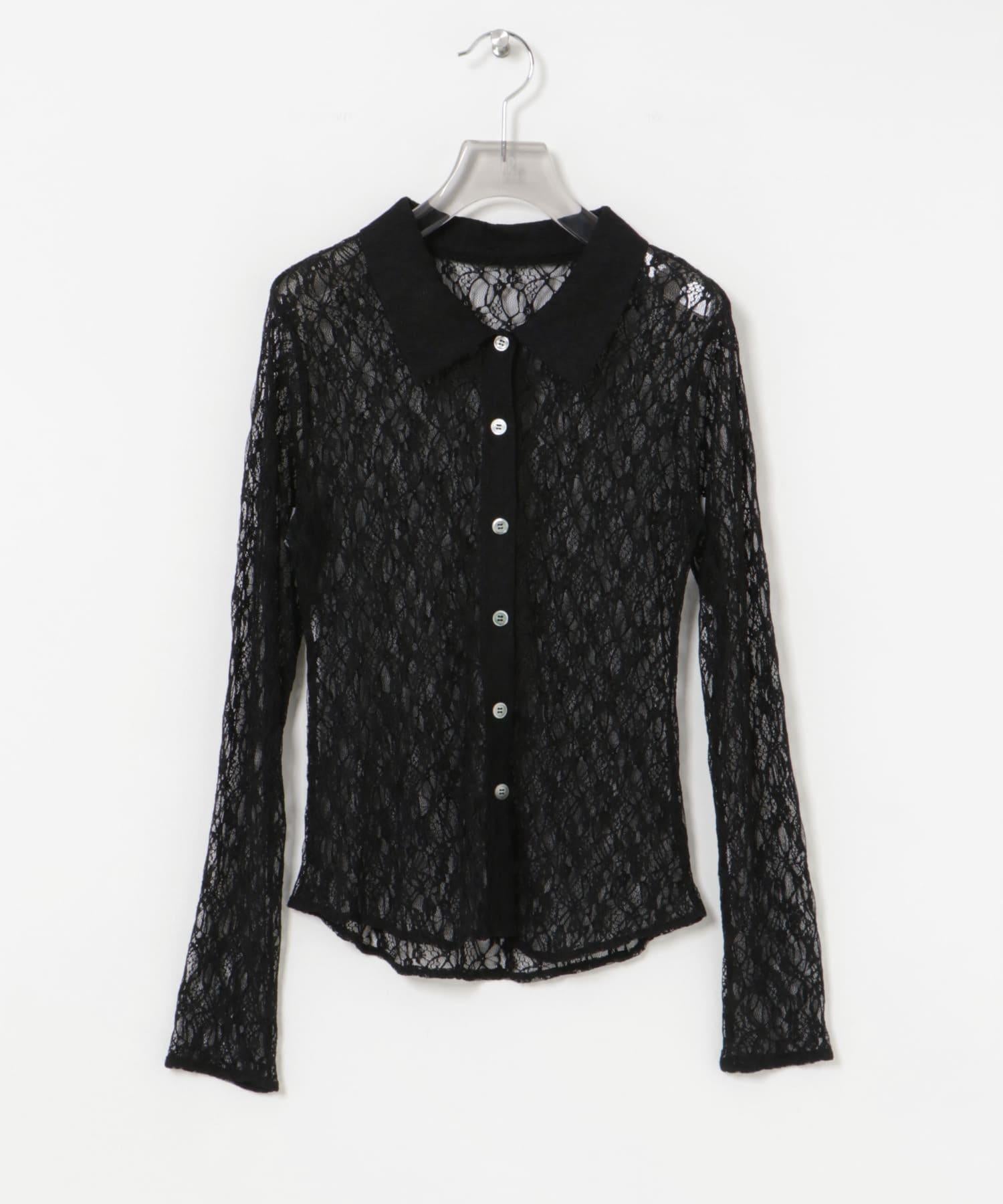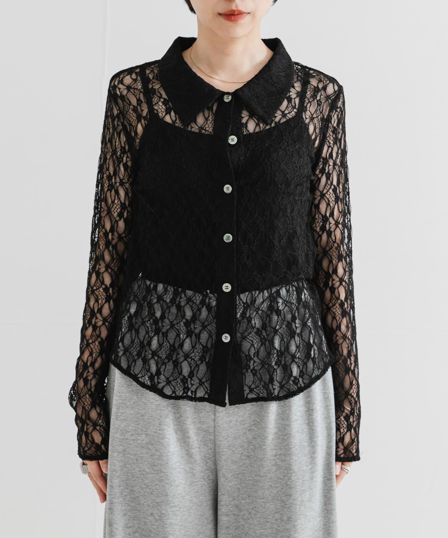 輕薄的彈力蕾絲富有彈性。上衣與皮膚很好地融合在一起,有墜感,穿起來給人乾淨利落的印象。